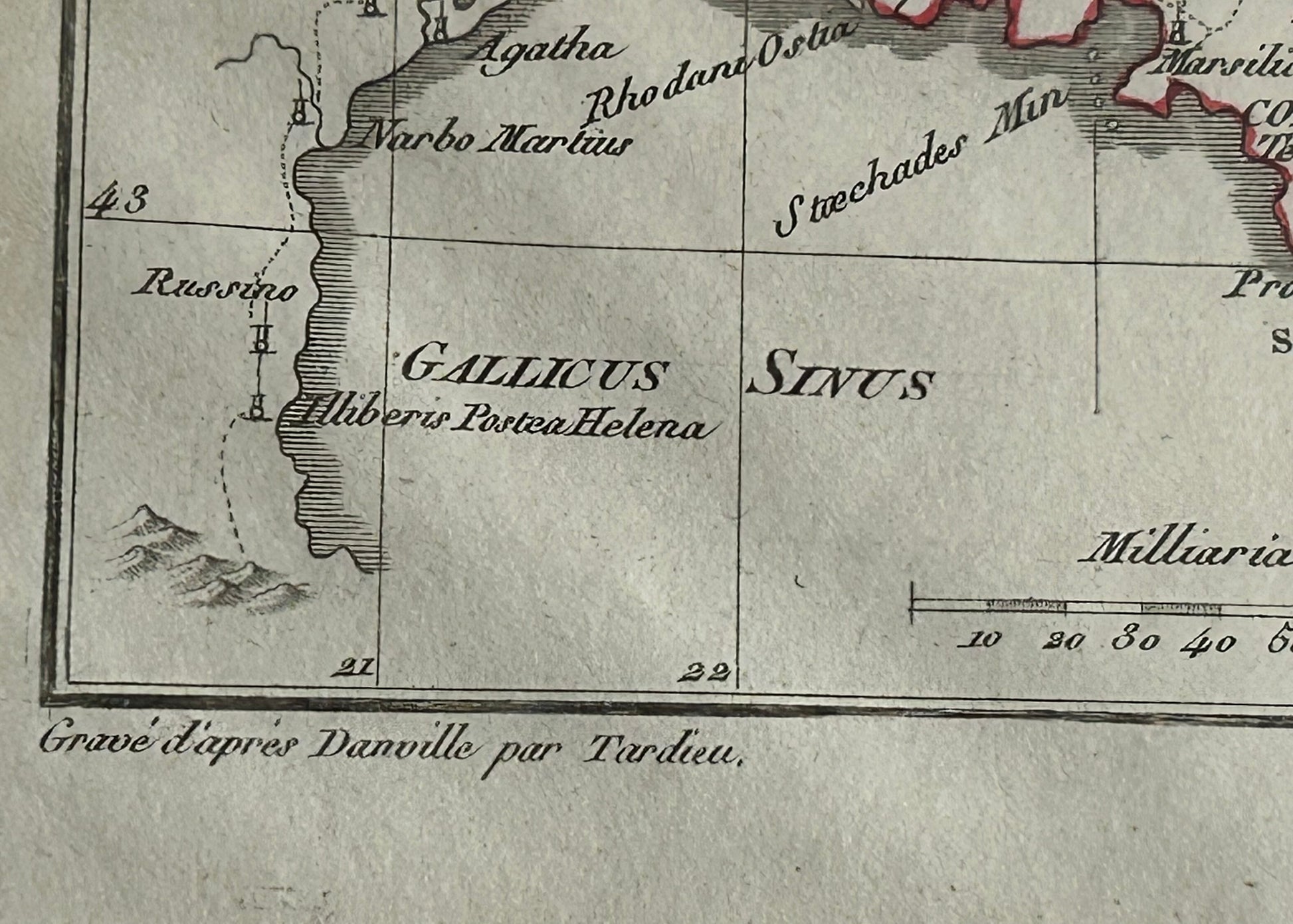 1700'S MAP OF FRANCE IN ANCIENT ROMAN TIMES