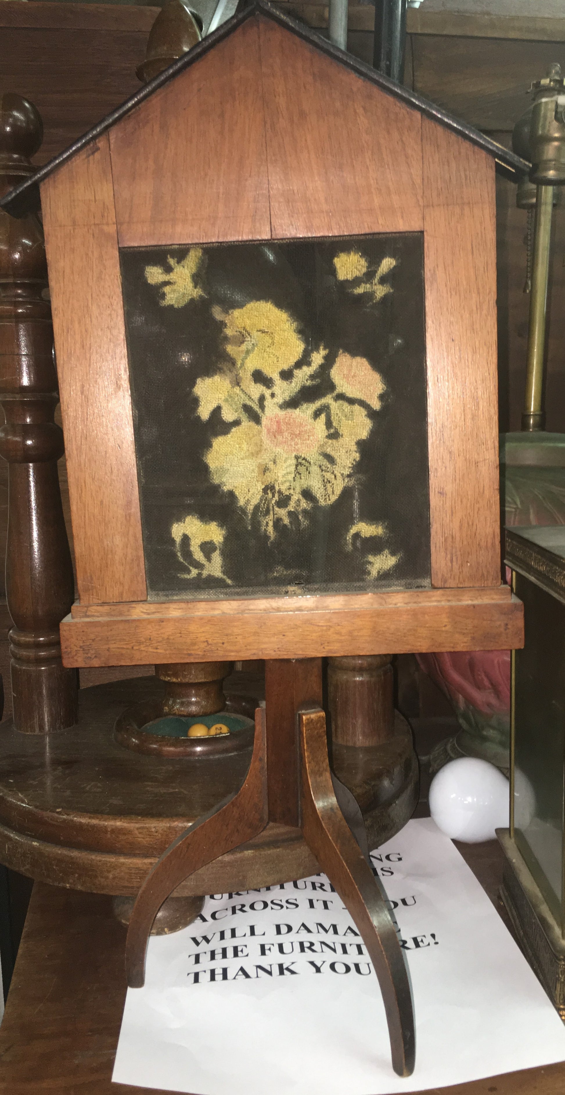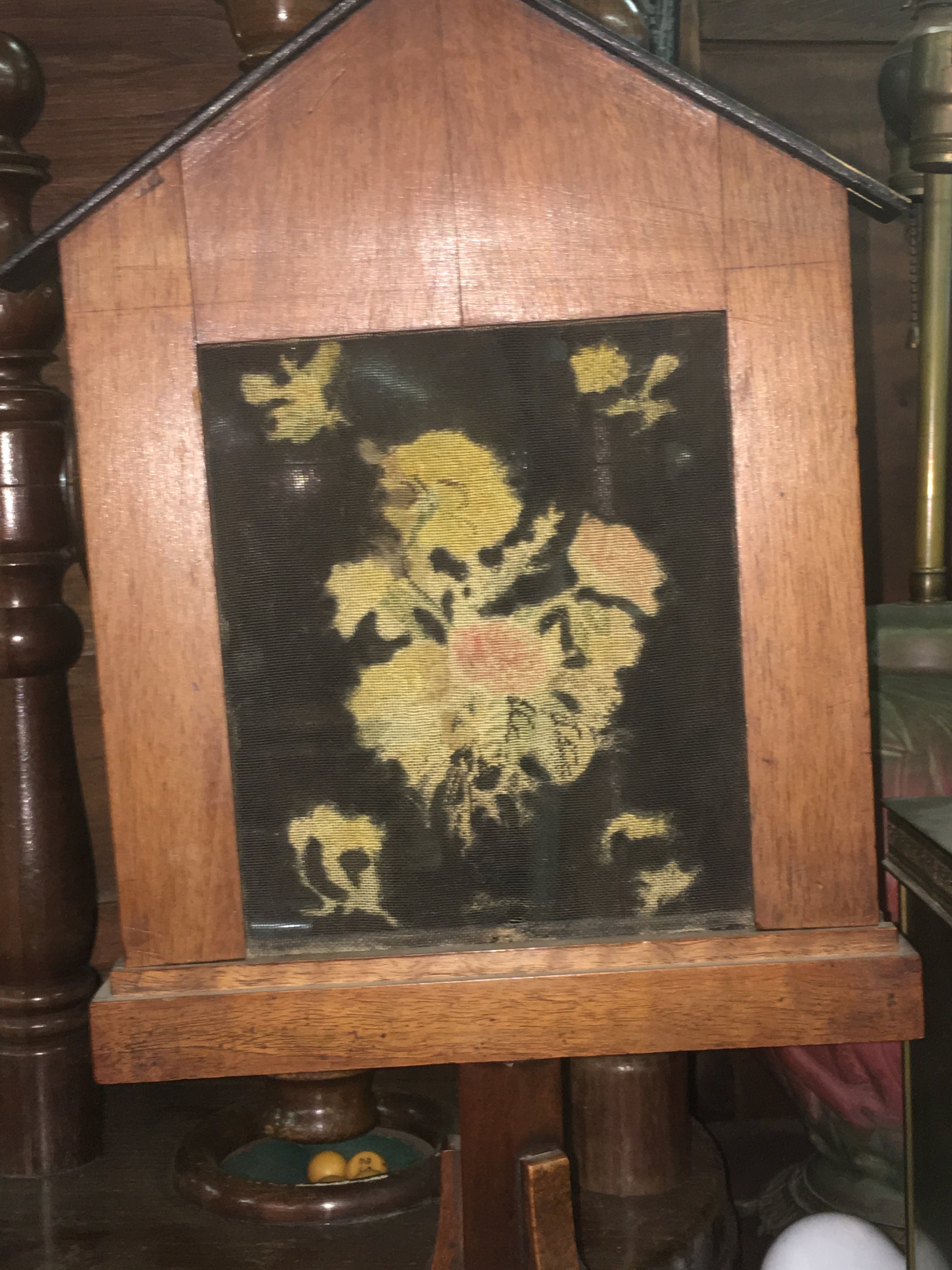 EARLY 1800's TABLE TOP CANDLE SCREEN WITH NEEDLEPOINT PANEL. CALL OR TEXT FOR MORE INFORMATION
