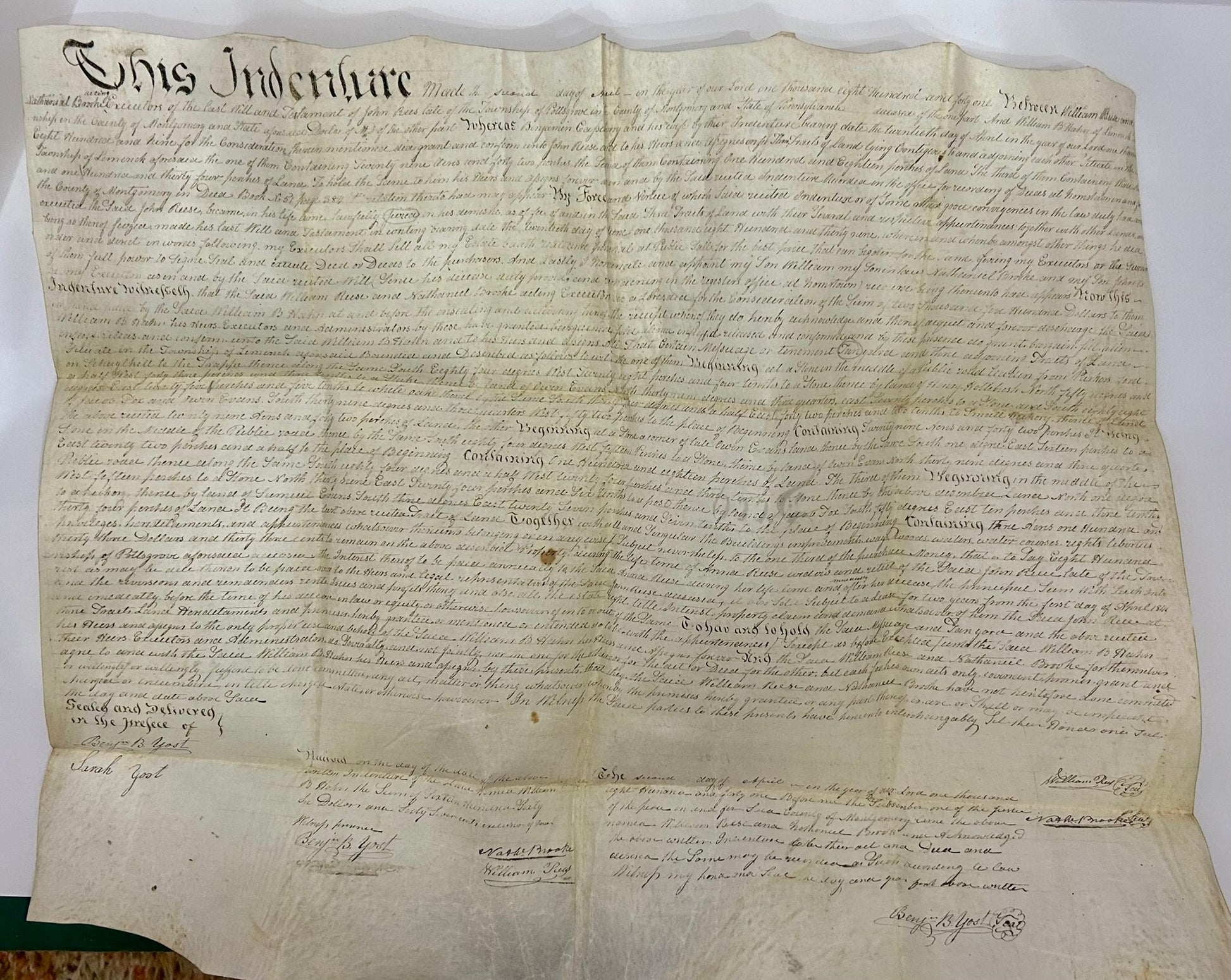 1809 VELLUM INDENTURE FROM MONTGOMERY COUNTY, PENNSYLVANIA 23" WIDE X 19" TALL. CALL OR TEXT FOR MORE INFORMATION