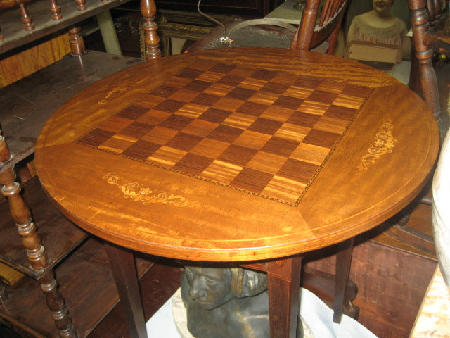 1830's INLAID TOP AND LEGS ROUND TOP GAME TABLE