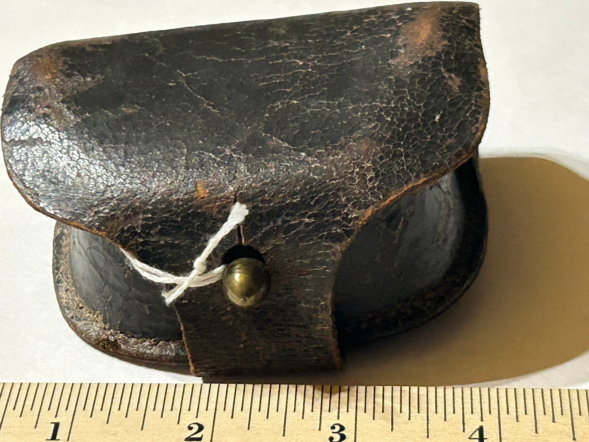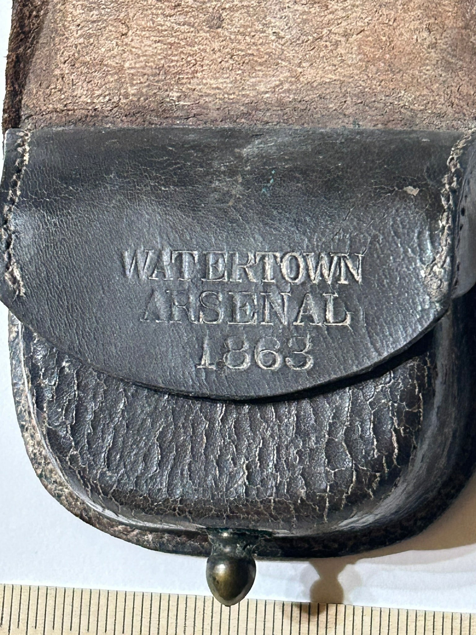 WATERTOWN ARSENAL 1863 LEATHER CIVIL WAR CAP BOX 4" x 4". CALL OR TEXT FOR MORE INFORMATION