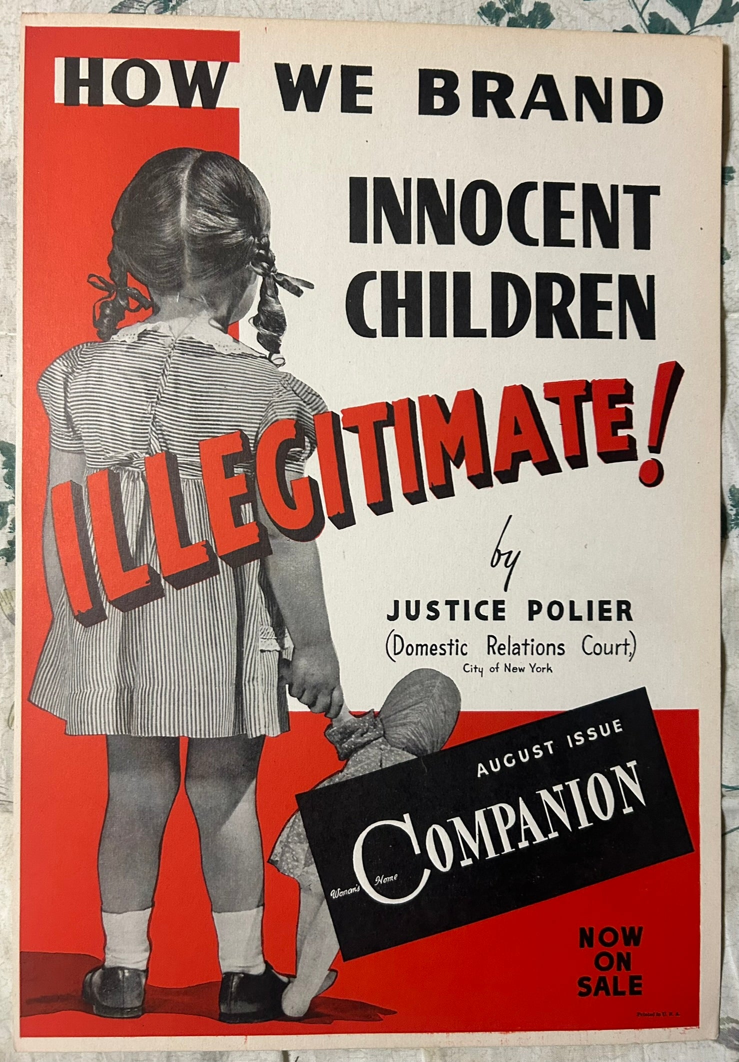 1940's POSTER "HOW WE BRAND INNOCENT CHILDREN ILLEGITIMATE''
