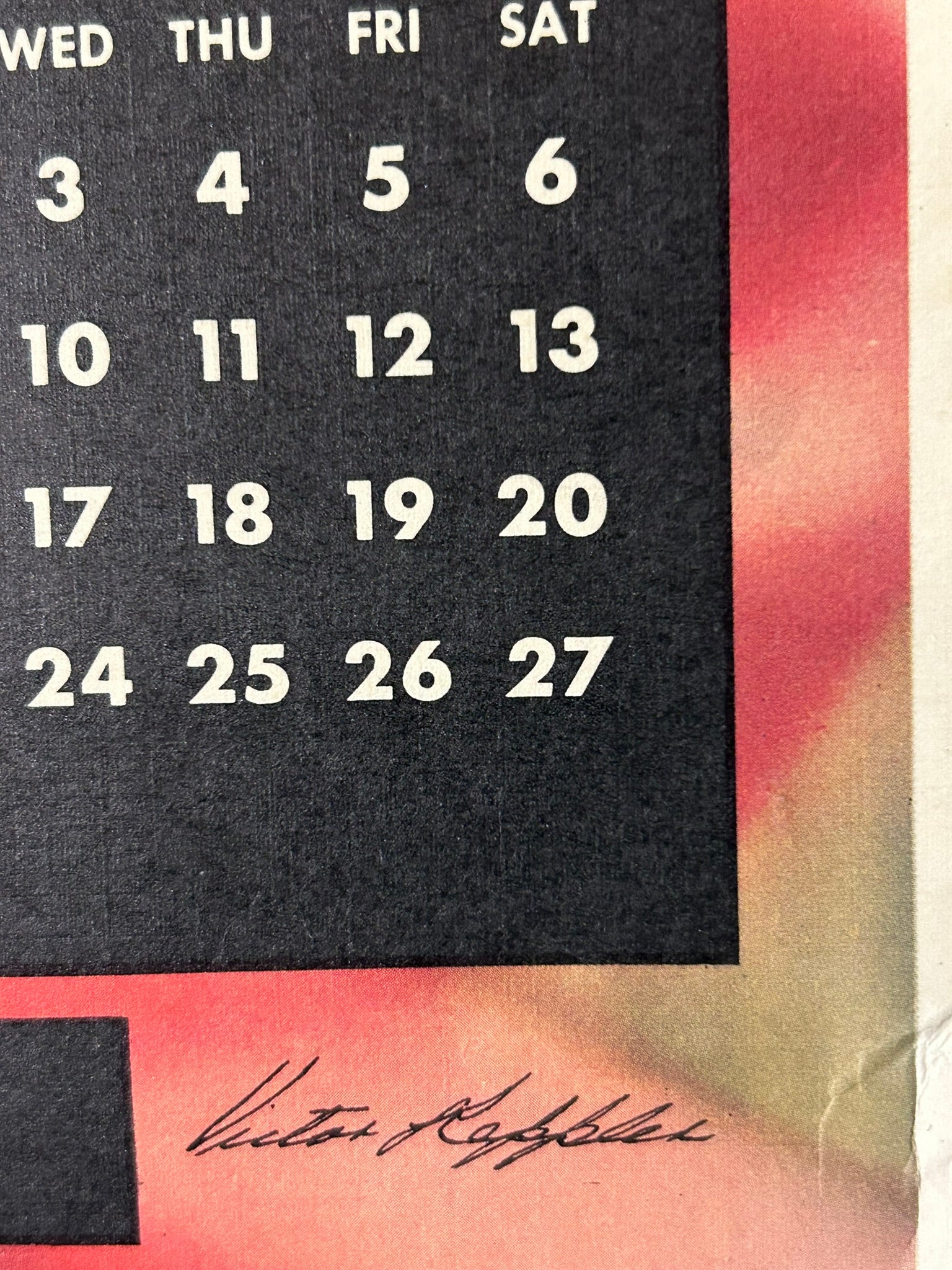 1957 VICTOR KEPPLER PHOTOGRAPHER PIN UP ADVERTISING CALENDAR PROTOTYPE 20" X 16". CALL OR TEXT FOR MORE INFORMATION