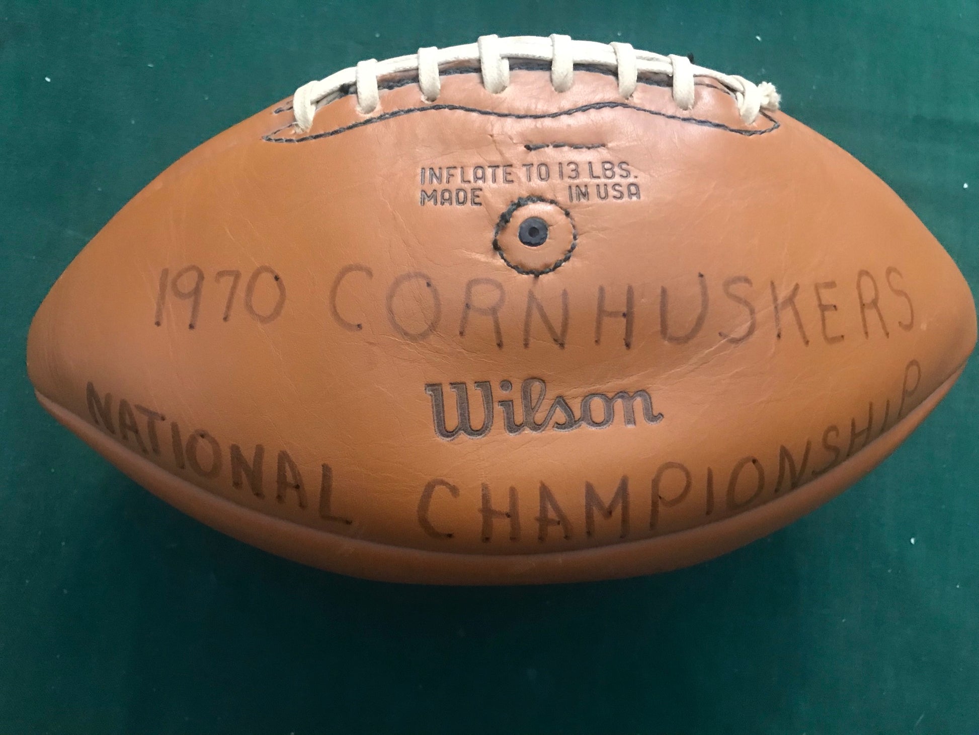 1970 NEBRASKA CORNHUSKERS CHAMPIONSHIP FOOTBALL TEAM SIGNED FOOTBALL. CALL OR TEXT FOR MORE INFORMATION