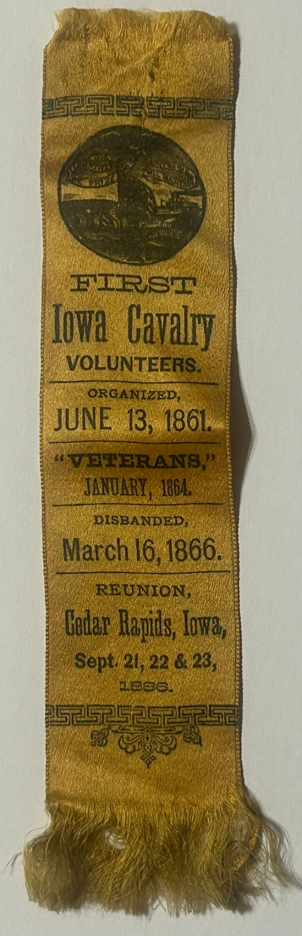 1ST IOWA CAVALRY VOLUNTEERS 1886 REUNION RIBBON
