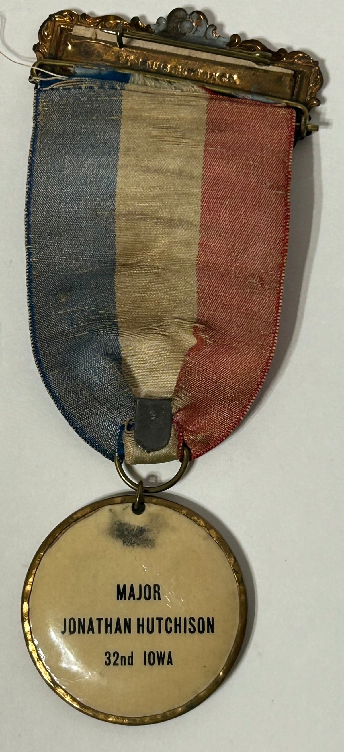 32ND IOWA MAJOR JONATHAN HUTCHISON ENCAMPMENT BADGE AND NUMBERED G.A.R. BADGE