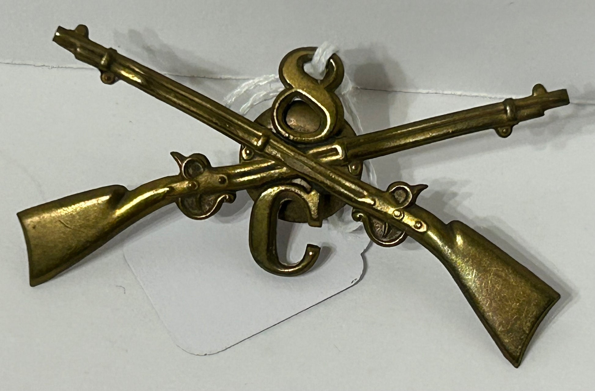 SPANISH AMERICAN WAR 8TH INFANTRY COMPANY C HAT INSIGNIA 3" LONG. CALL OR TEXT FOR MORE INFORMATION