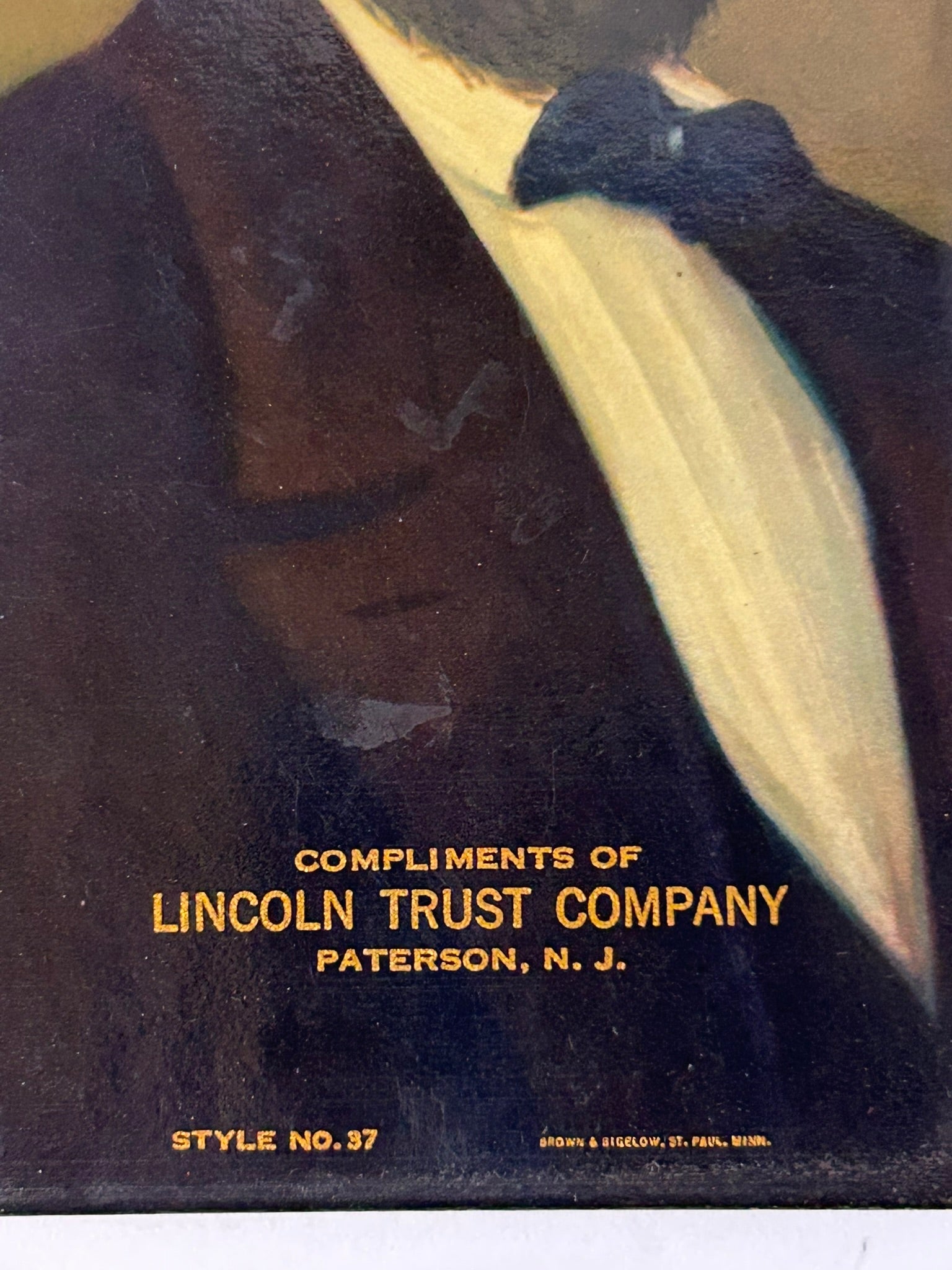 ABE LINCOLN ON BLOTTER BOOKLET COVER FOR LINCOLN TRUST COMPANY PATTERSON NEW JERSEY 7 1/2" TALL. CALL OR TEXT FOR MORE INFORMATION