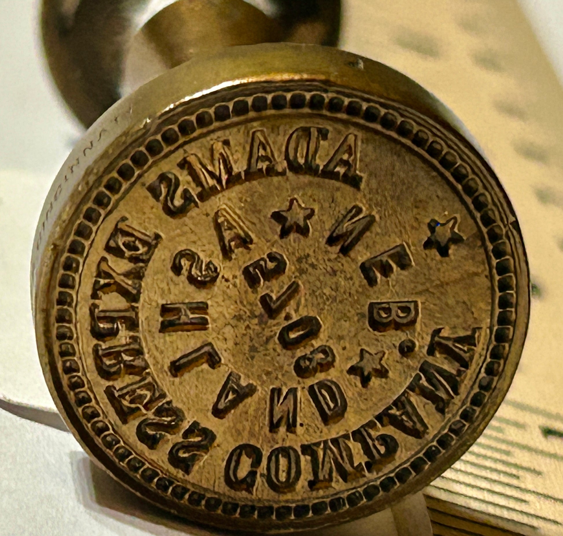 ADAMS EXPRESS COMPANY WAX SEAL FOR ASHLAND NEBRASKA 2 3/8" TALL X 1 1/8" DIAMETER. CALL OR TEXT FOR MORE INFORMATION