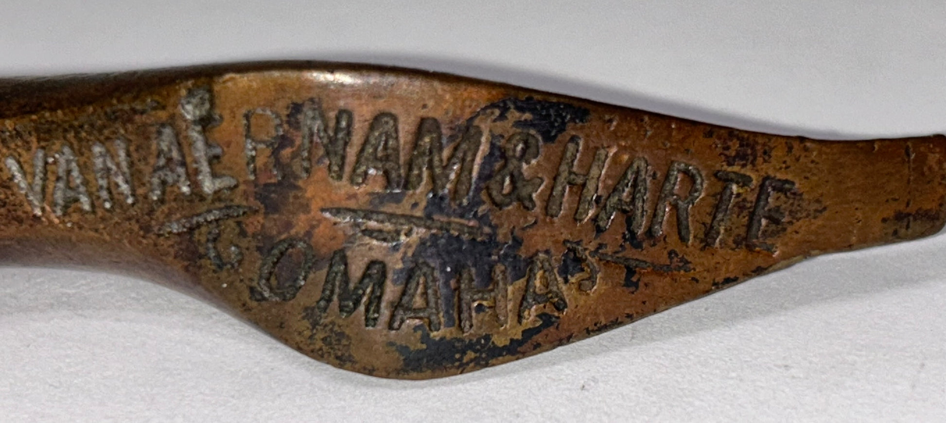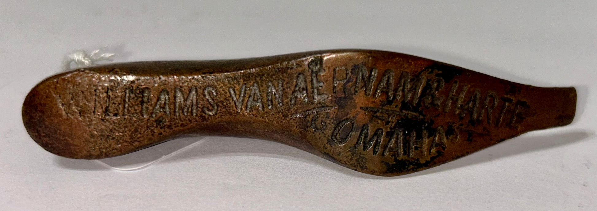 ANTIQUE ADVERTISING BRONZE SHOE PAPERWEIGHT FOR WILLIAMS VAN AERNAM & HARTE OMAHA 4" LONG. CALL OR TEXT FOR MORE INFORMATION