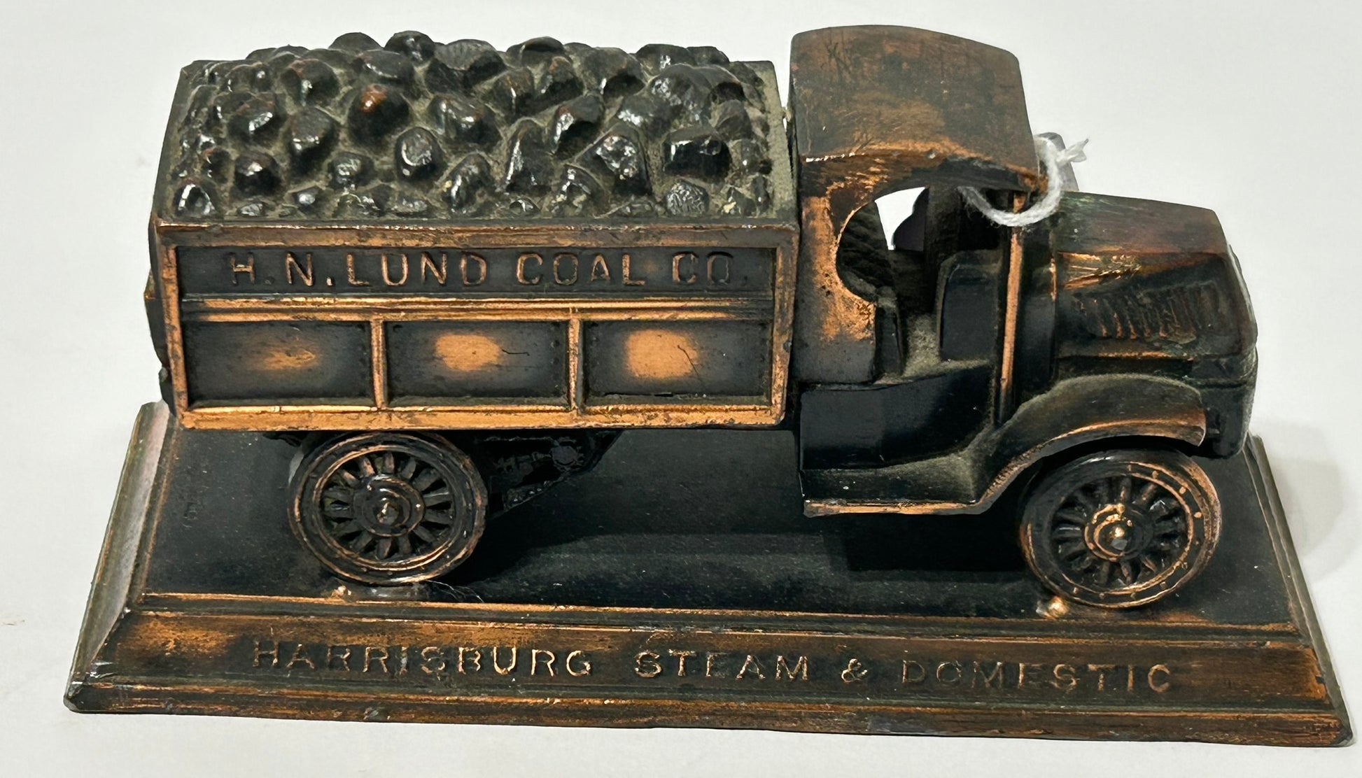 ADVERTISING COAL TRUCK CAST IRON PAPERWEIGHT FOR LUND COAL CO. 5" LONG X 2 1/2" TALL. CALL OR TEXT FOR MORE INFORMATION