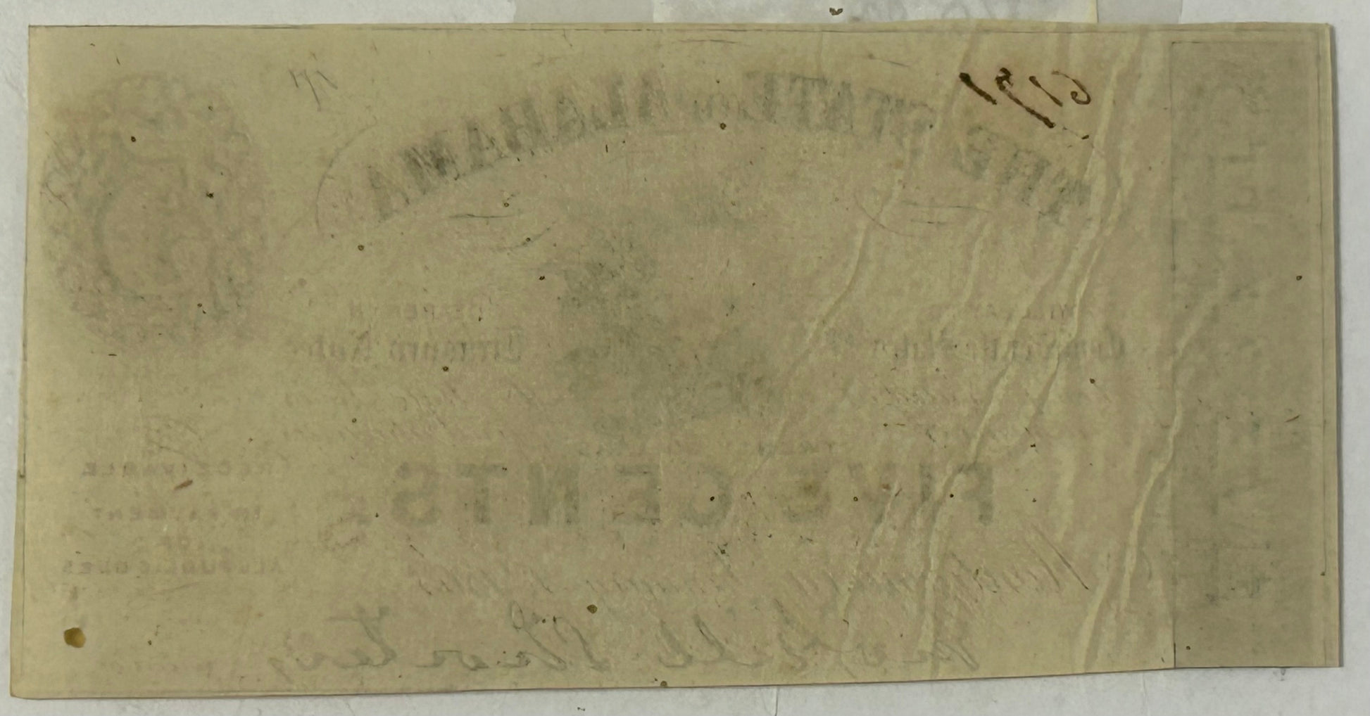 CONFEDERATE ALABAMA FIVE CENT 1863 BILL