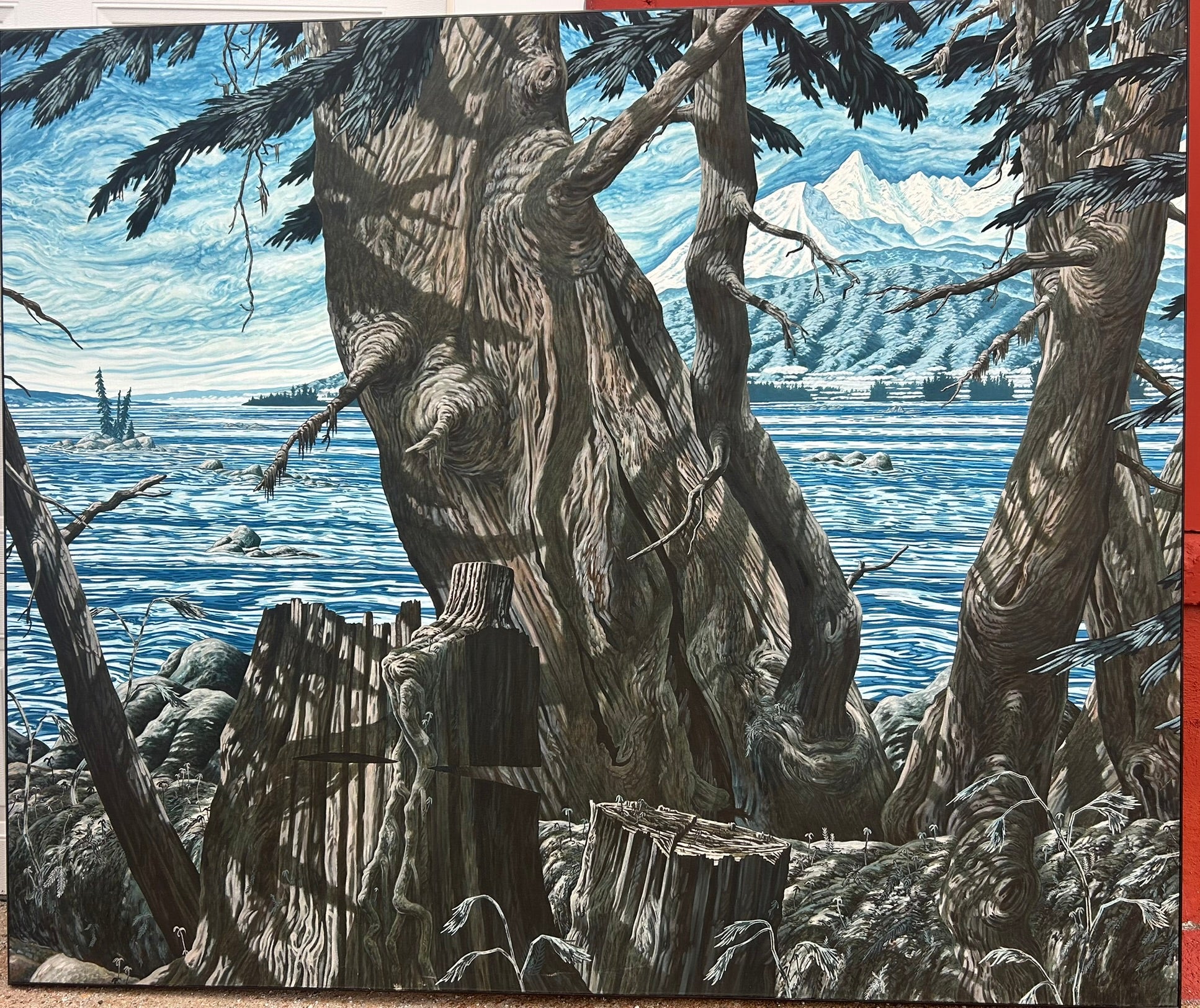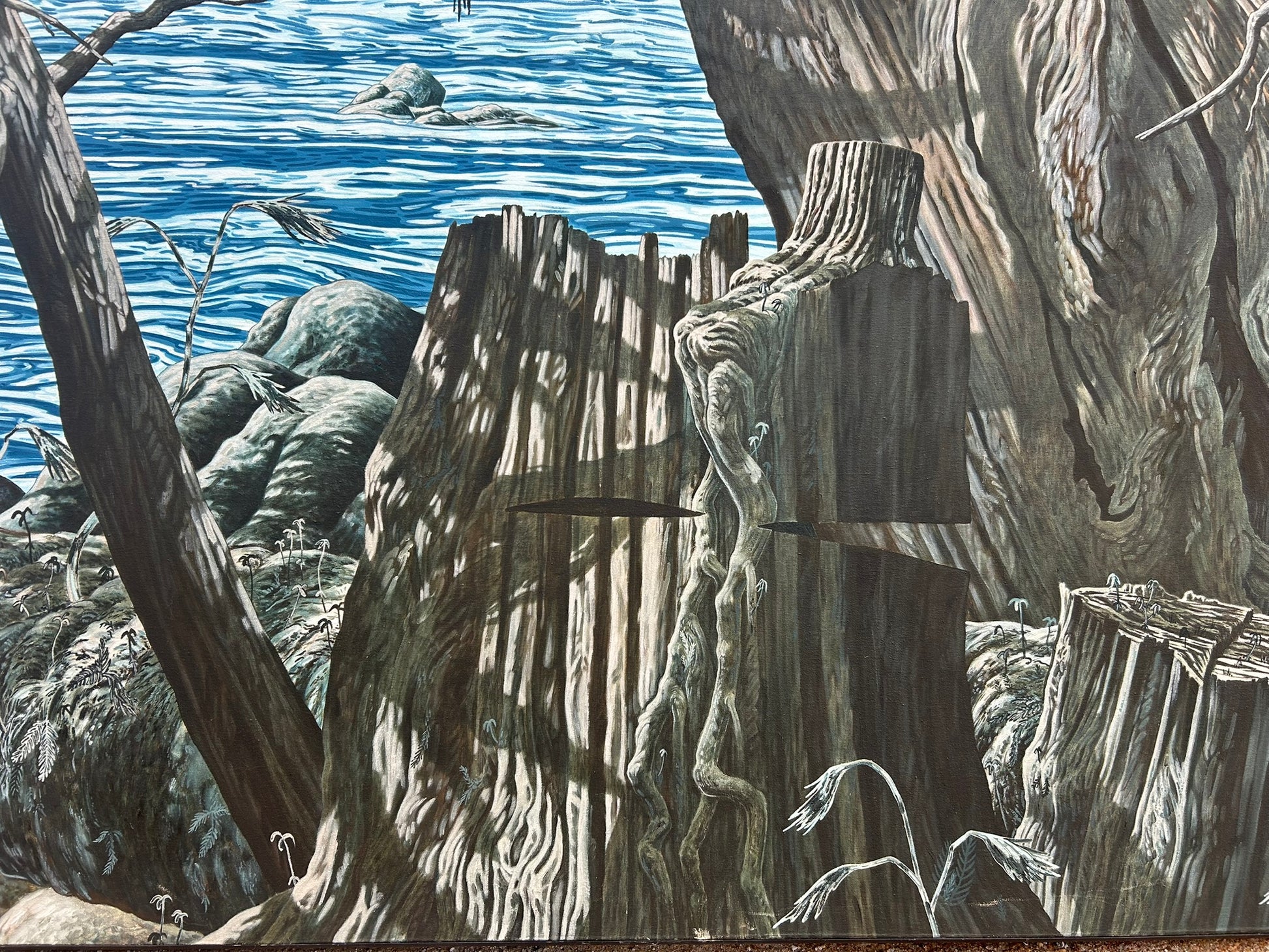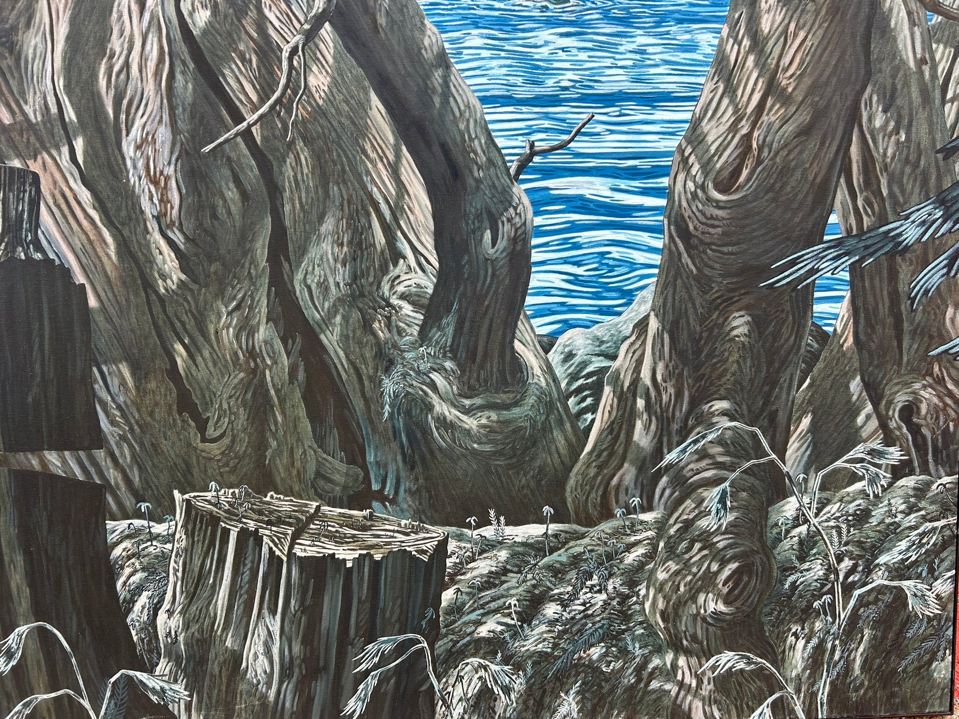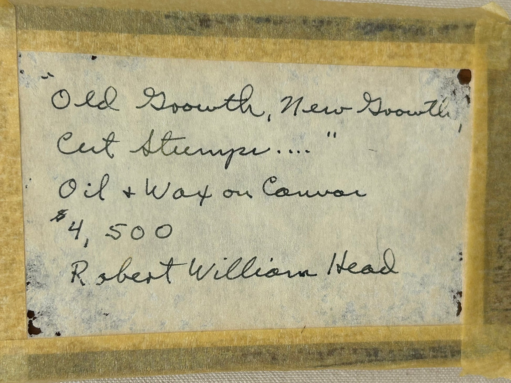ALASKA PAINTING BY ROBERT WILLIAM HEAD " CUT STUMPS, OLD GROWTH, NEW GROWTH" OIL & WAX ON CANVAS 1992 PAINTING 5' X 6'. CALL OR TEXT FOR MORE INFORMATION