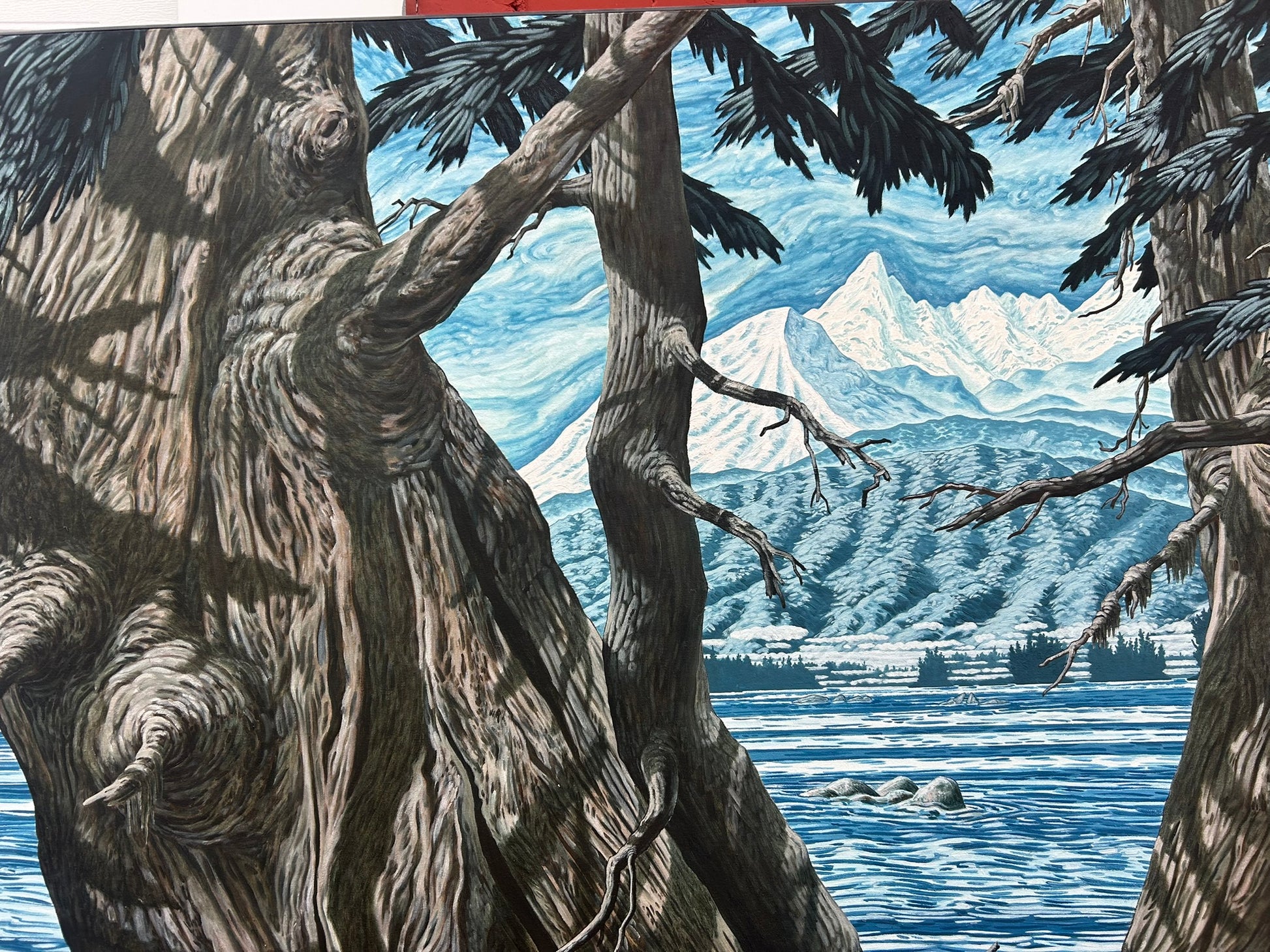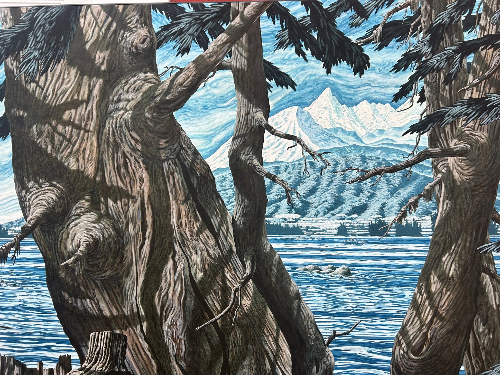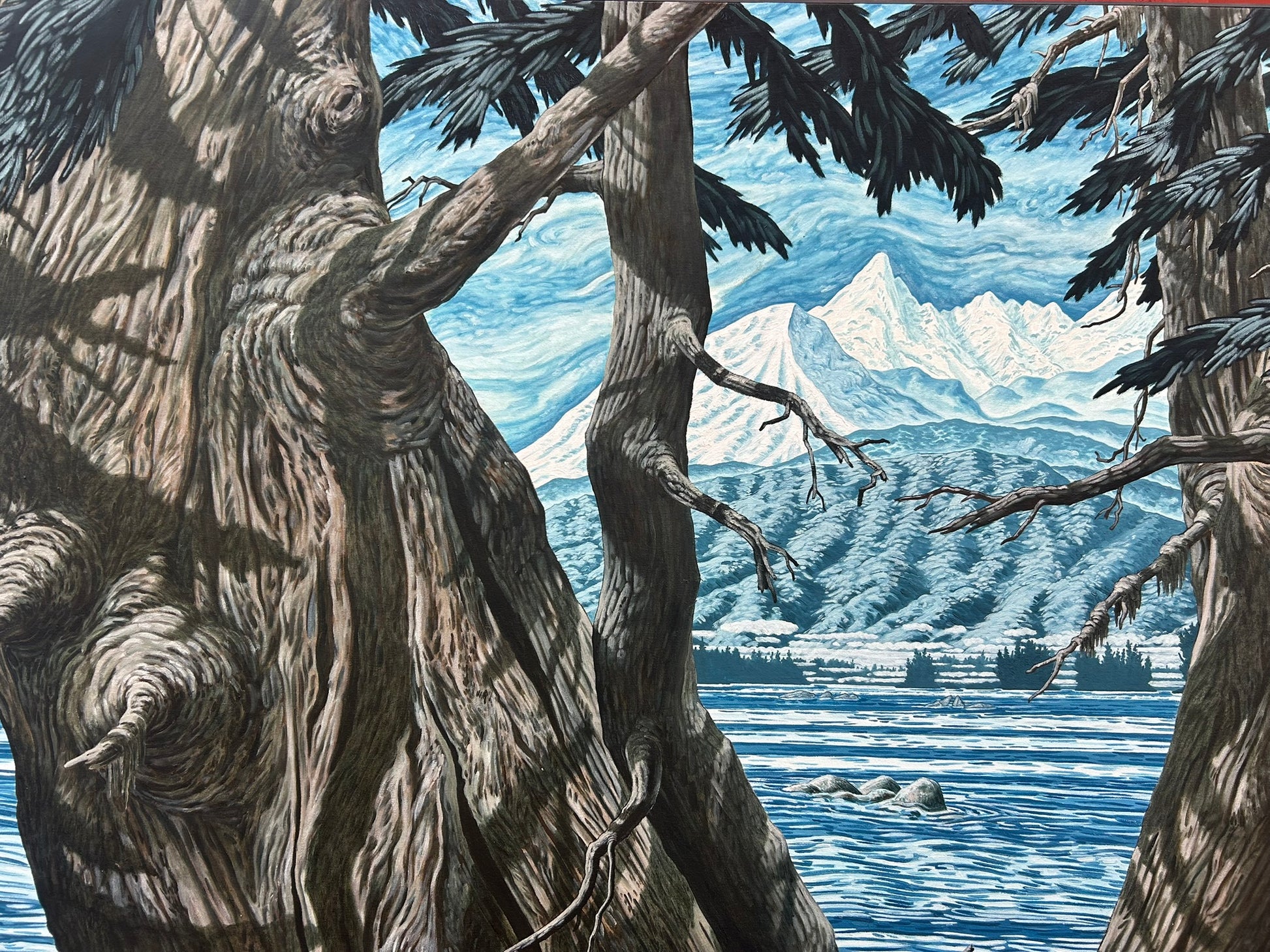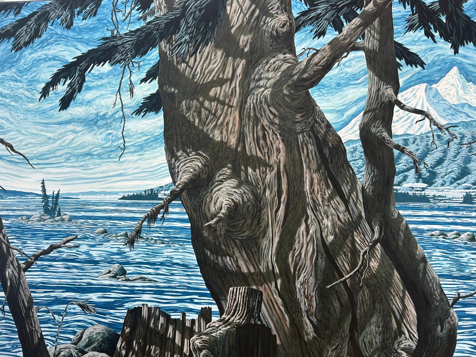 ALASKA PAINTING BY ROBERT WILLIAM HEAD " CUT STUMPS, OLD GROWTH, NEW GROWTH" OIL & WAX ON CANVAS 1992 PAINTING 5' X 6'. CALL OR TEXT FOR MORE INFORMATION