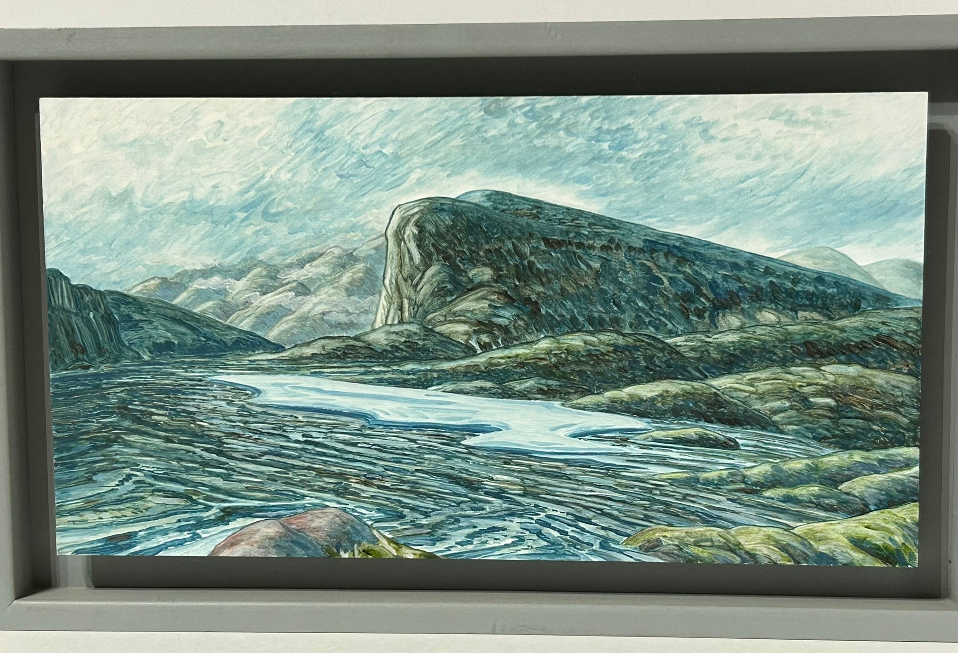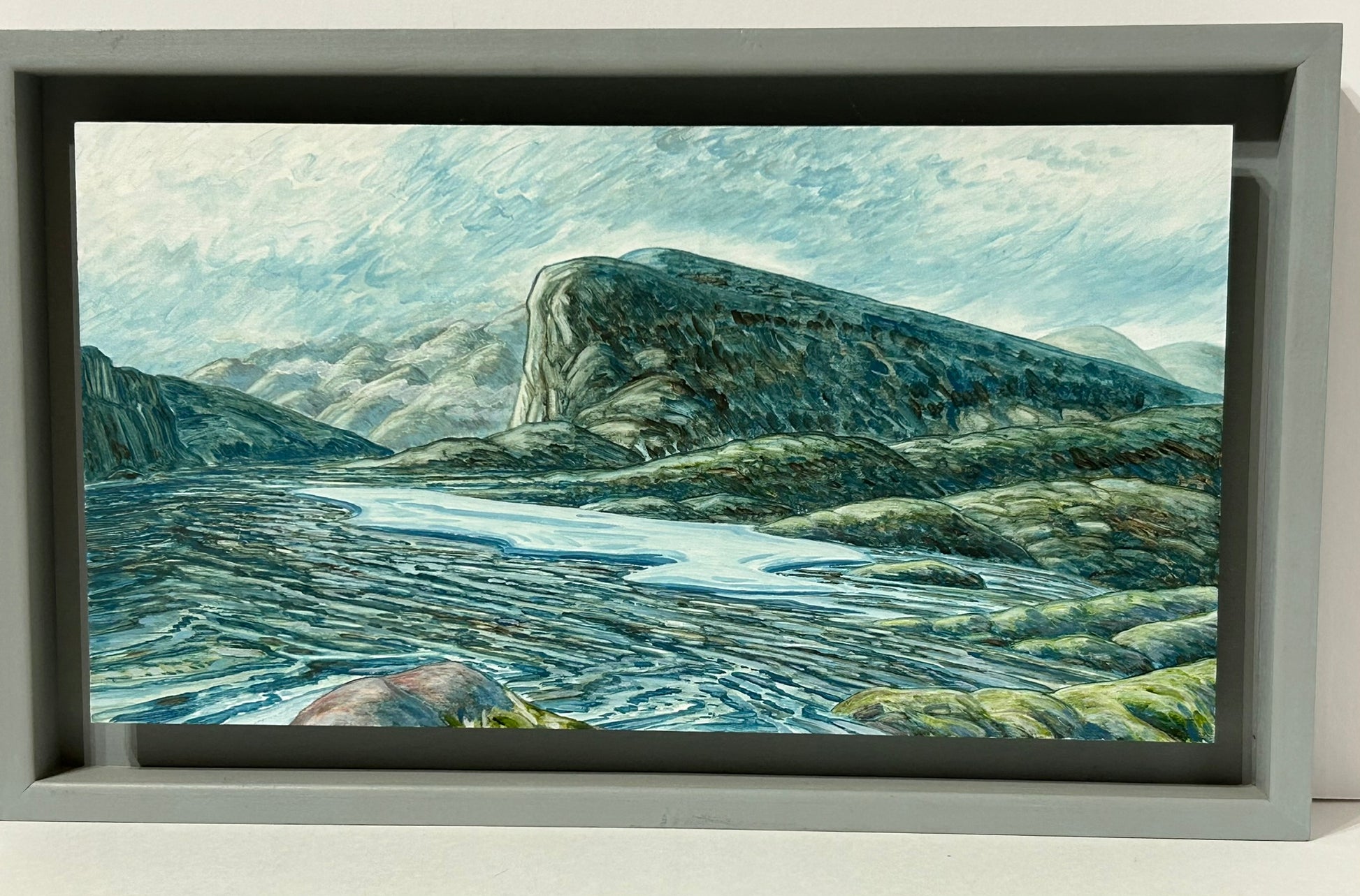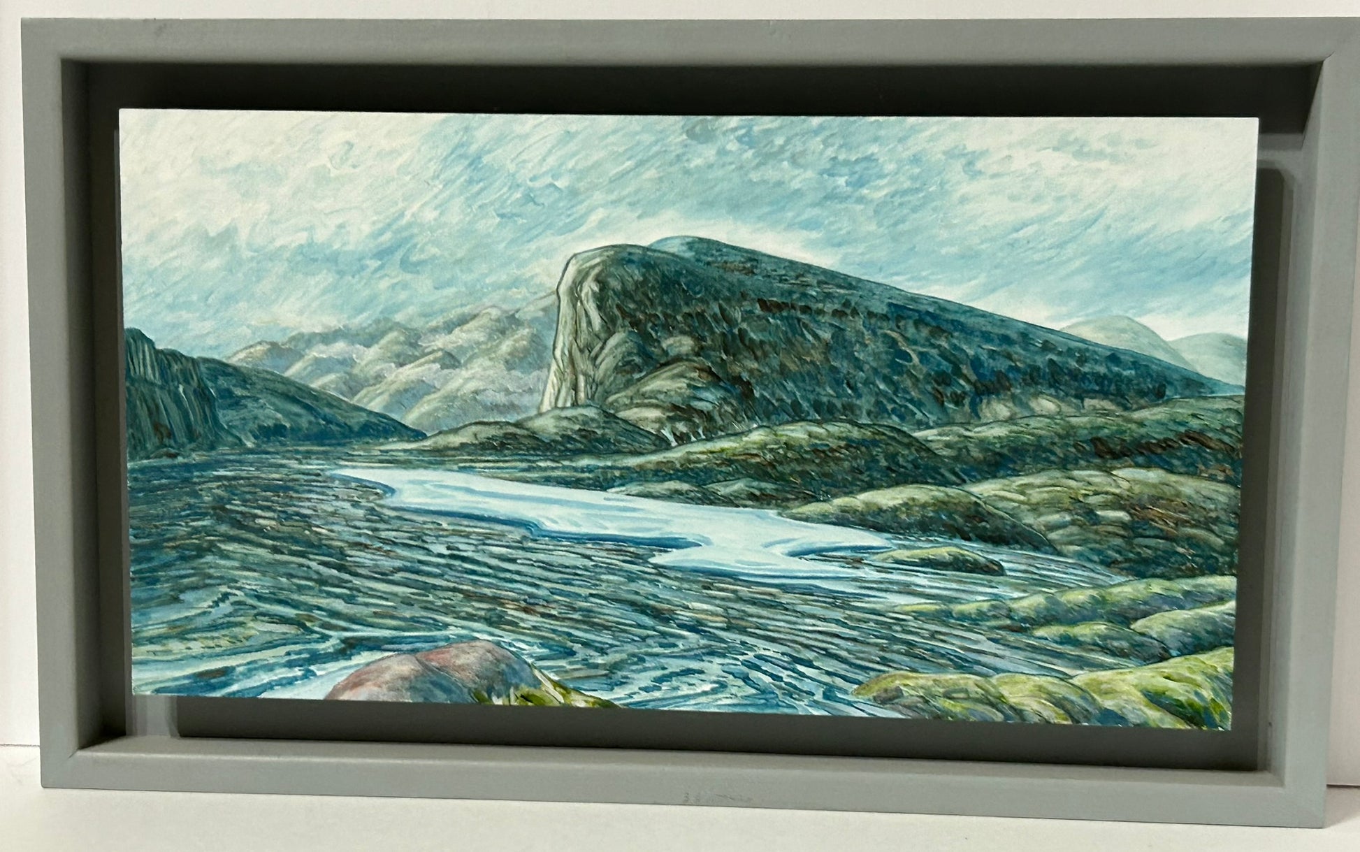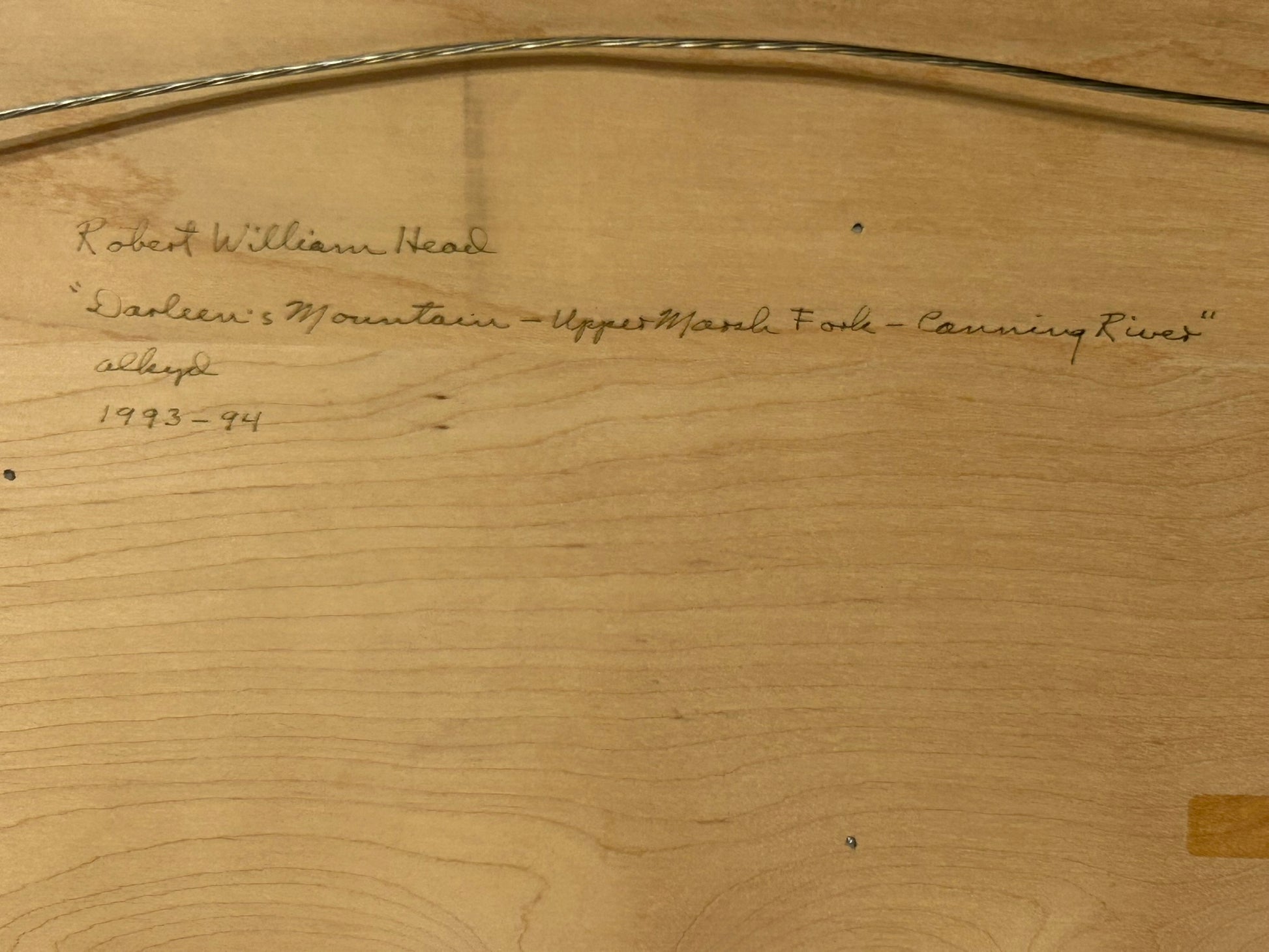 ROBERT WILLIAM HEAD PAINTING OF ALASKA SCENE OF DARLEEN"S MOUNTAIN UPPER MARSH FORK CANNING RIVER, ALKYD ON BIRCH PANEL 8" X 15" PLUS PANEL. 1993 1994. CALL OR TEXT FOR MORE INFORMATION