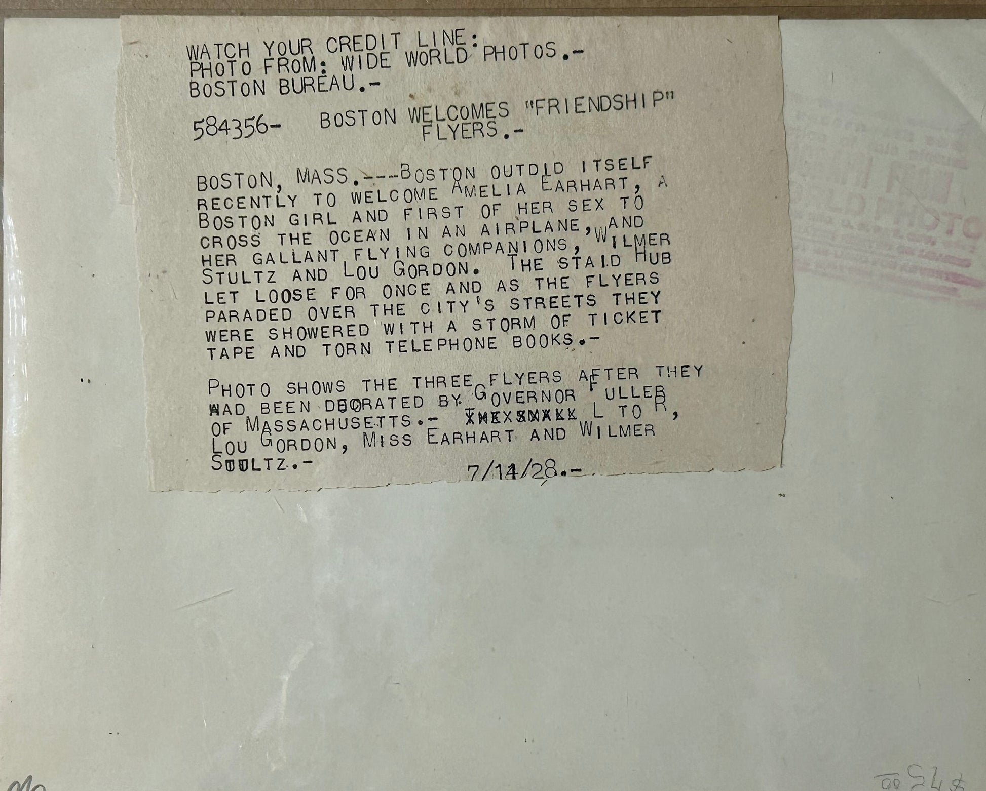 # E5 AMELIA EARHART, LOU GORDON, AND WILMER STULTZ FAMOUS AVIATORS GROUP NEWS SERVICE 1928 PHOTOGRAPH 8" X 10". CALL OR TEXT FOR MORE INFORMATION