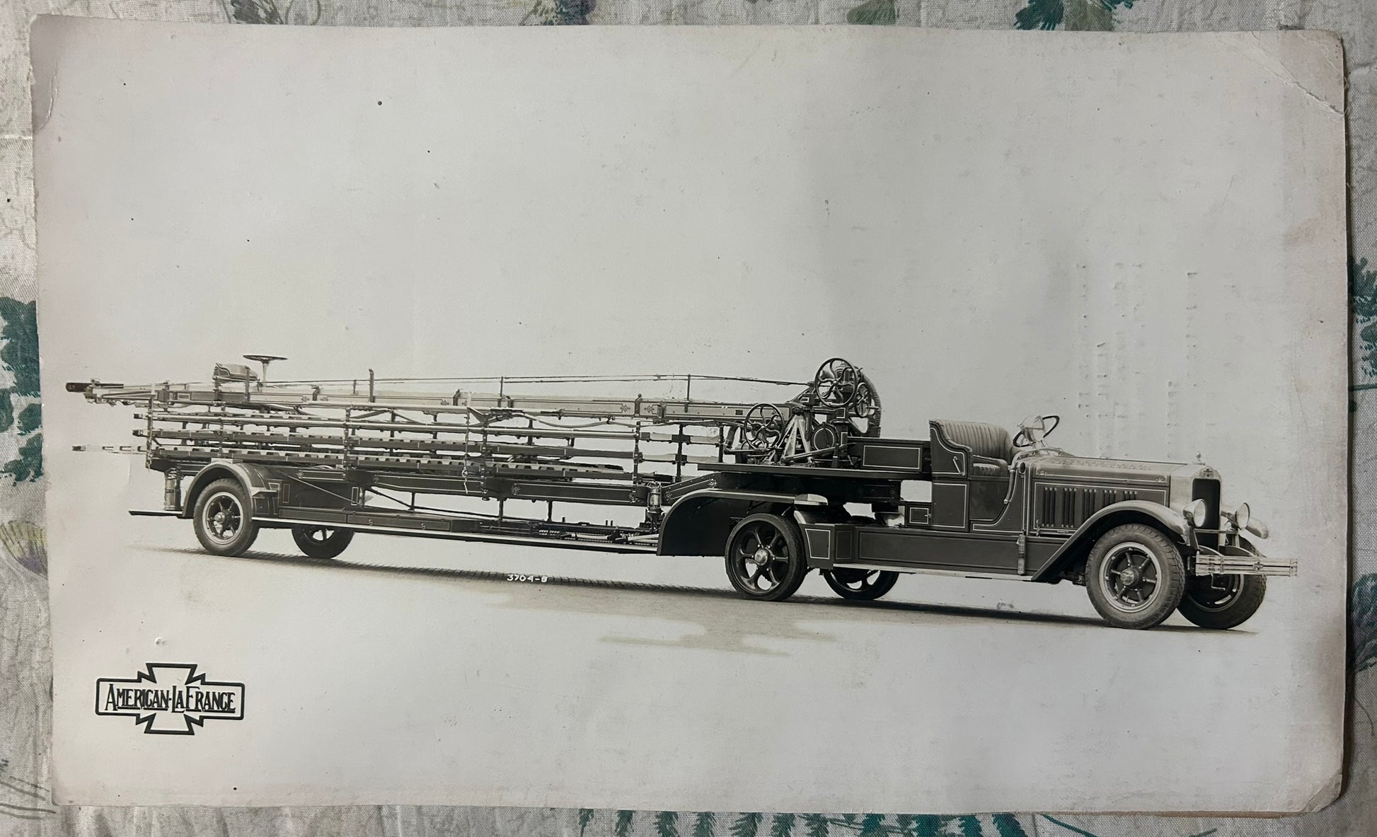 AMERICAN LA FRANCE EARLY 8" X 13' AERIAL TRUCK ADVERTISING PHOTOGRAPH