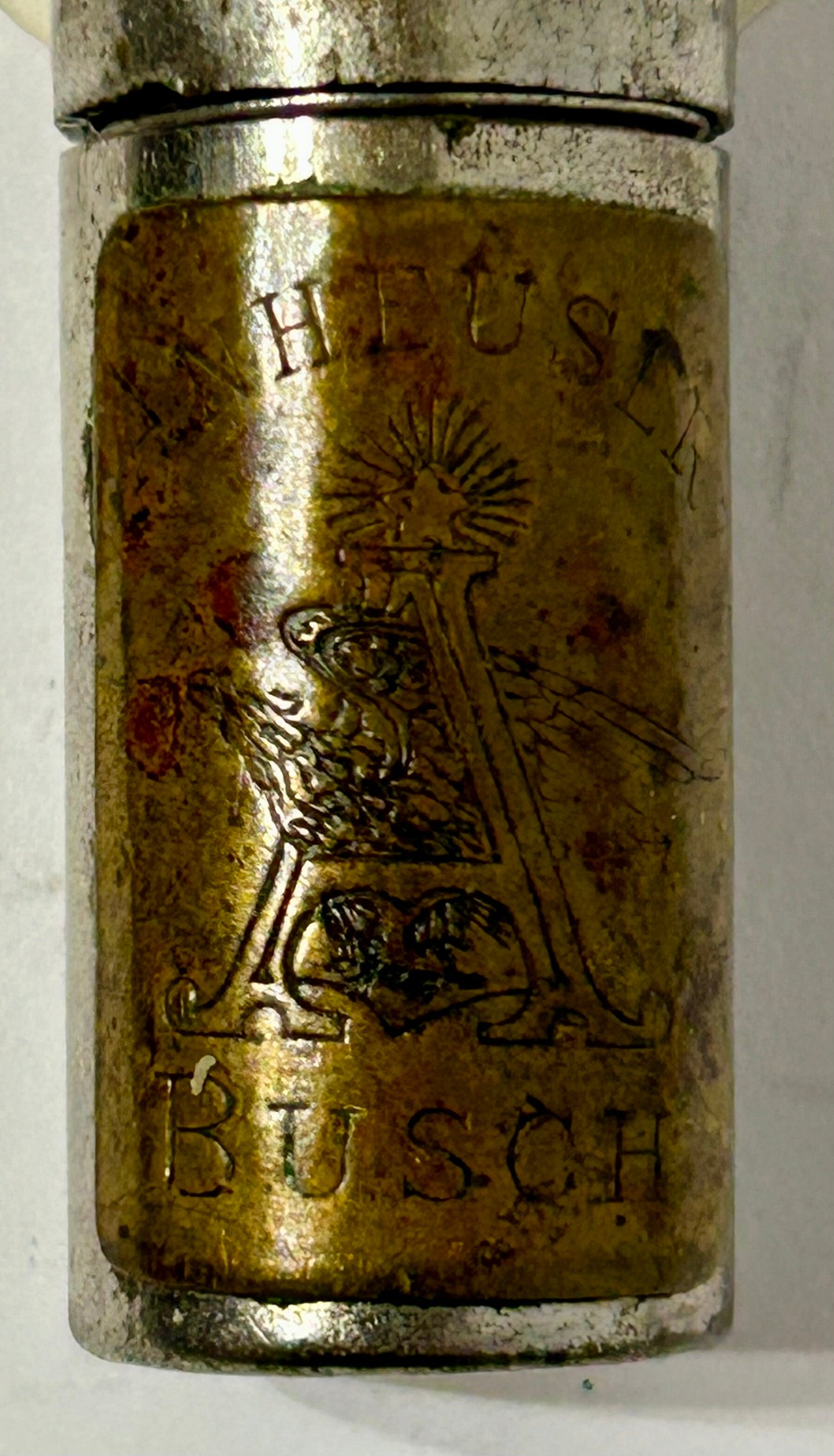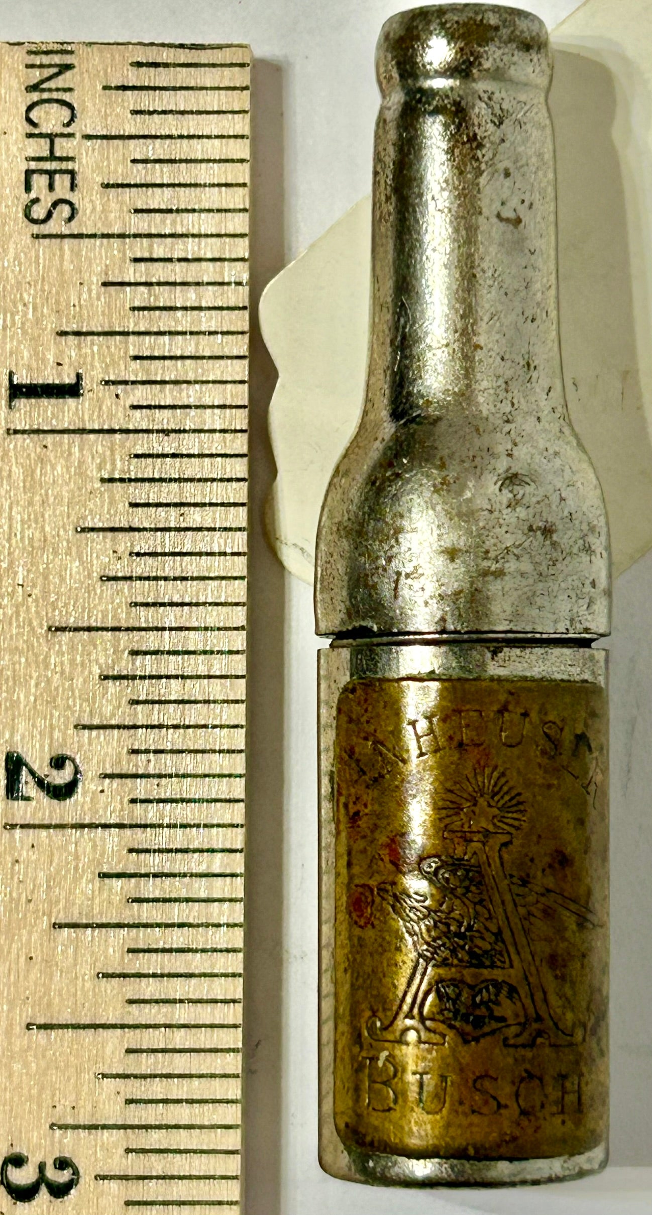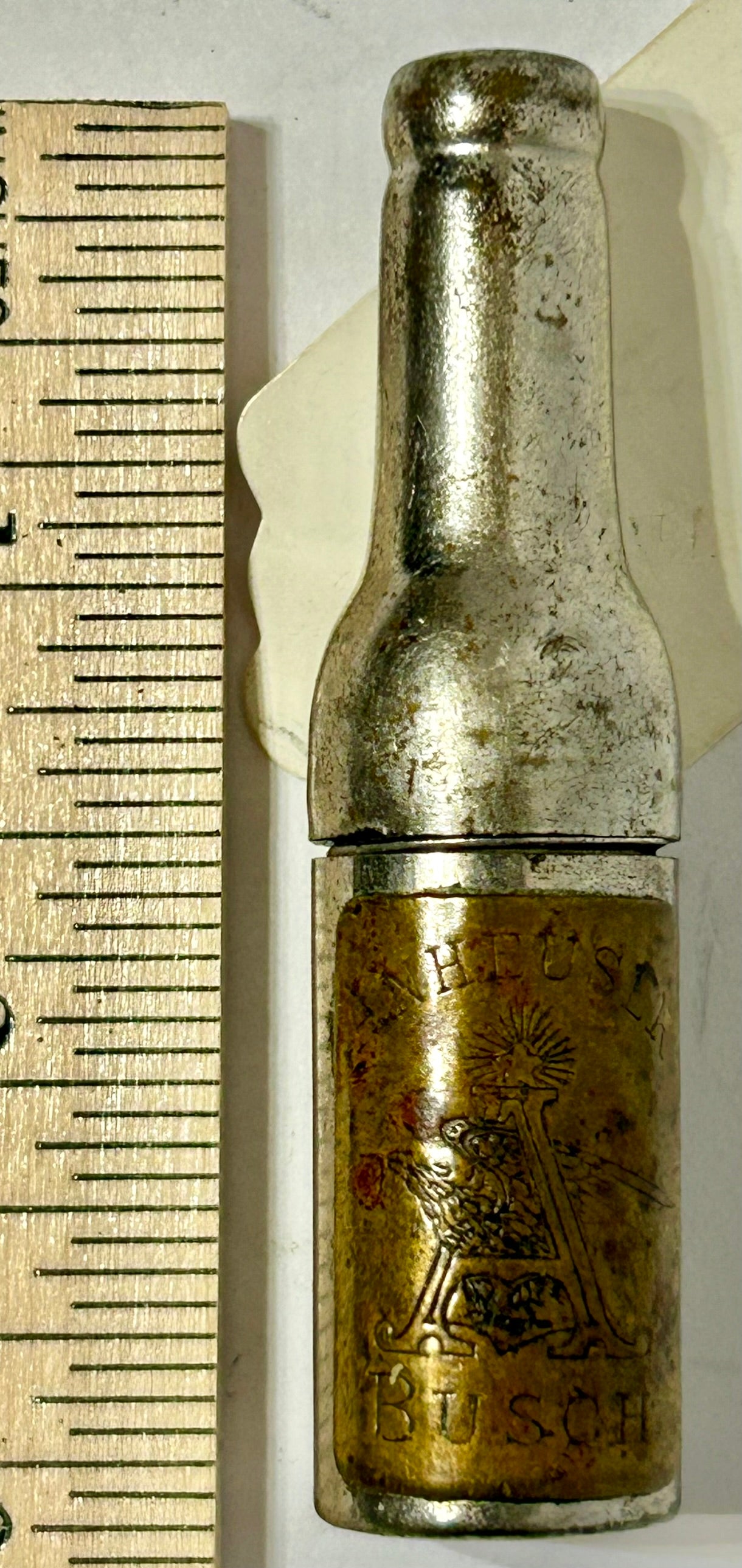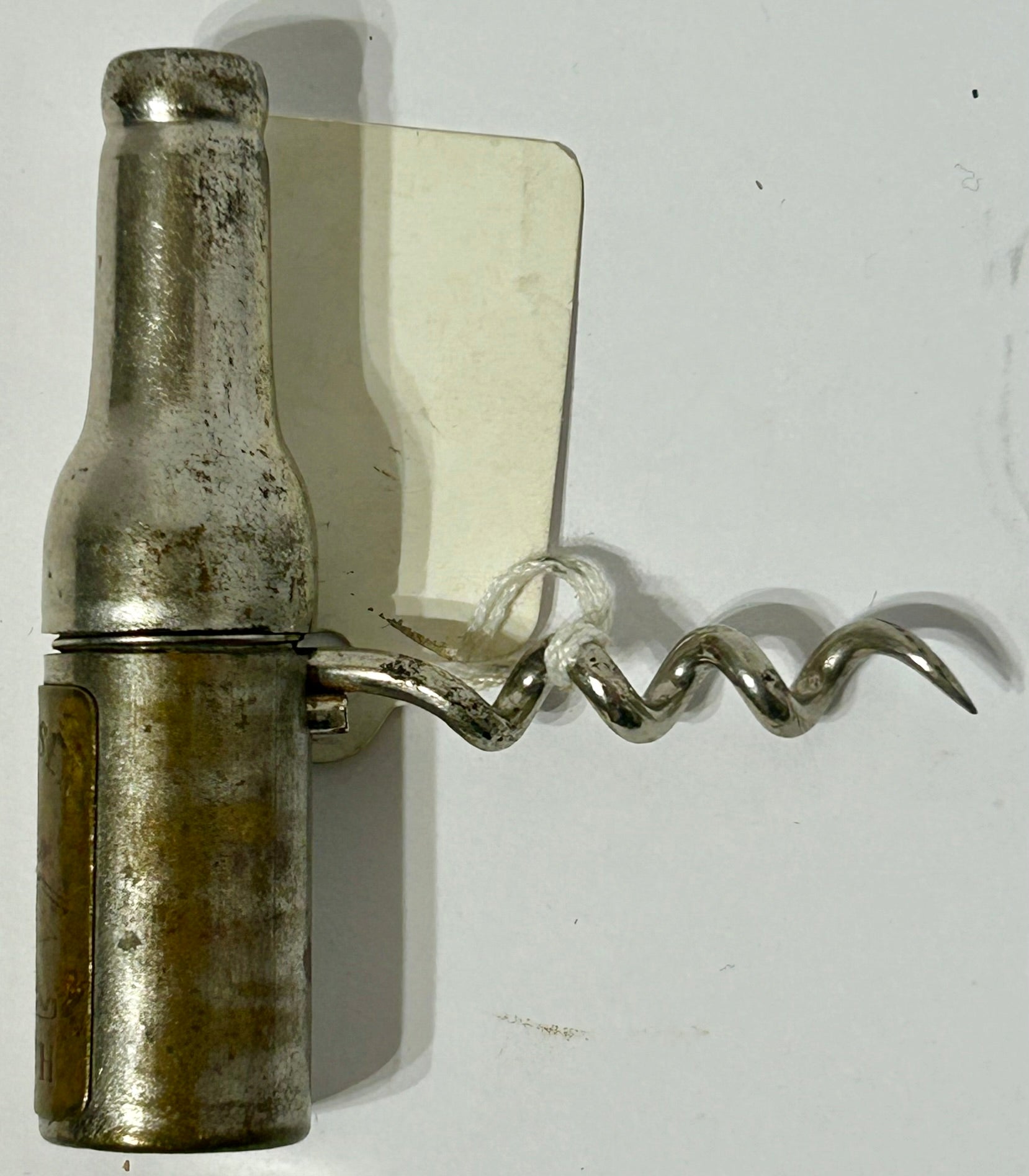 ANHEUSER BUSCH 1897 FIGURAL BOTTLE CORKSCREW 3" TALL. CALL OR TEXT FOR MORE INFORMATION