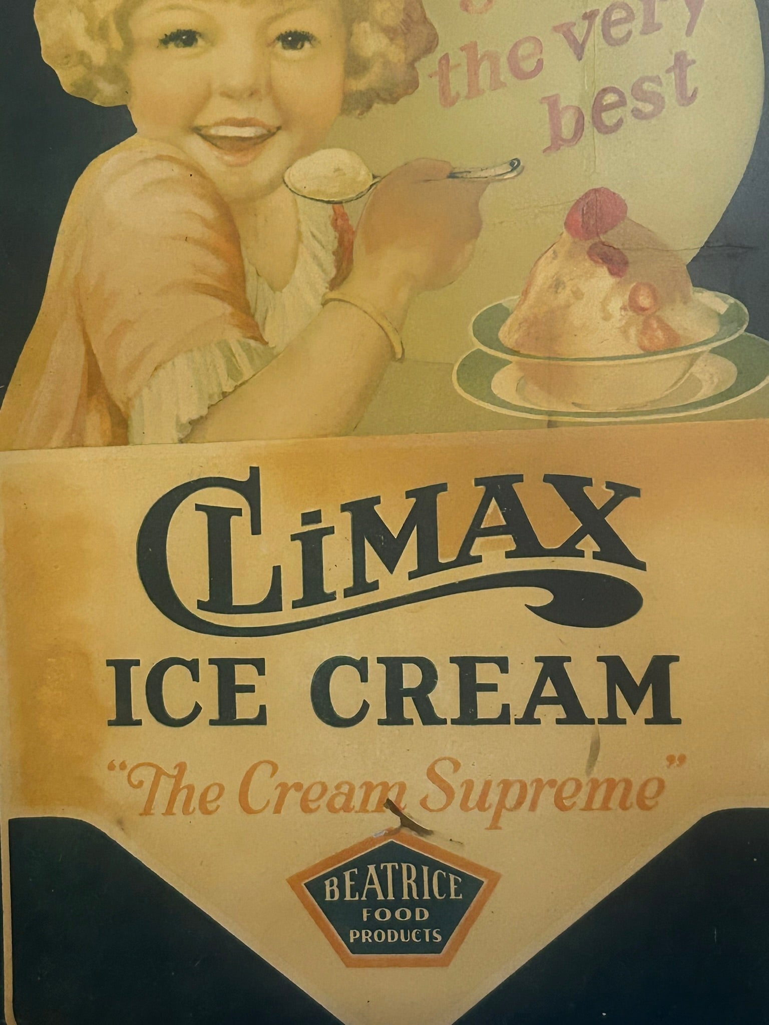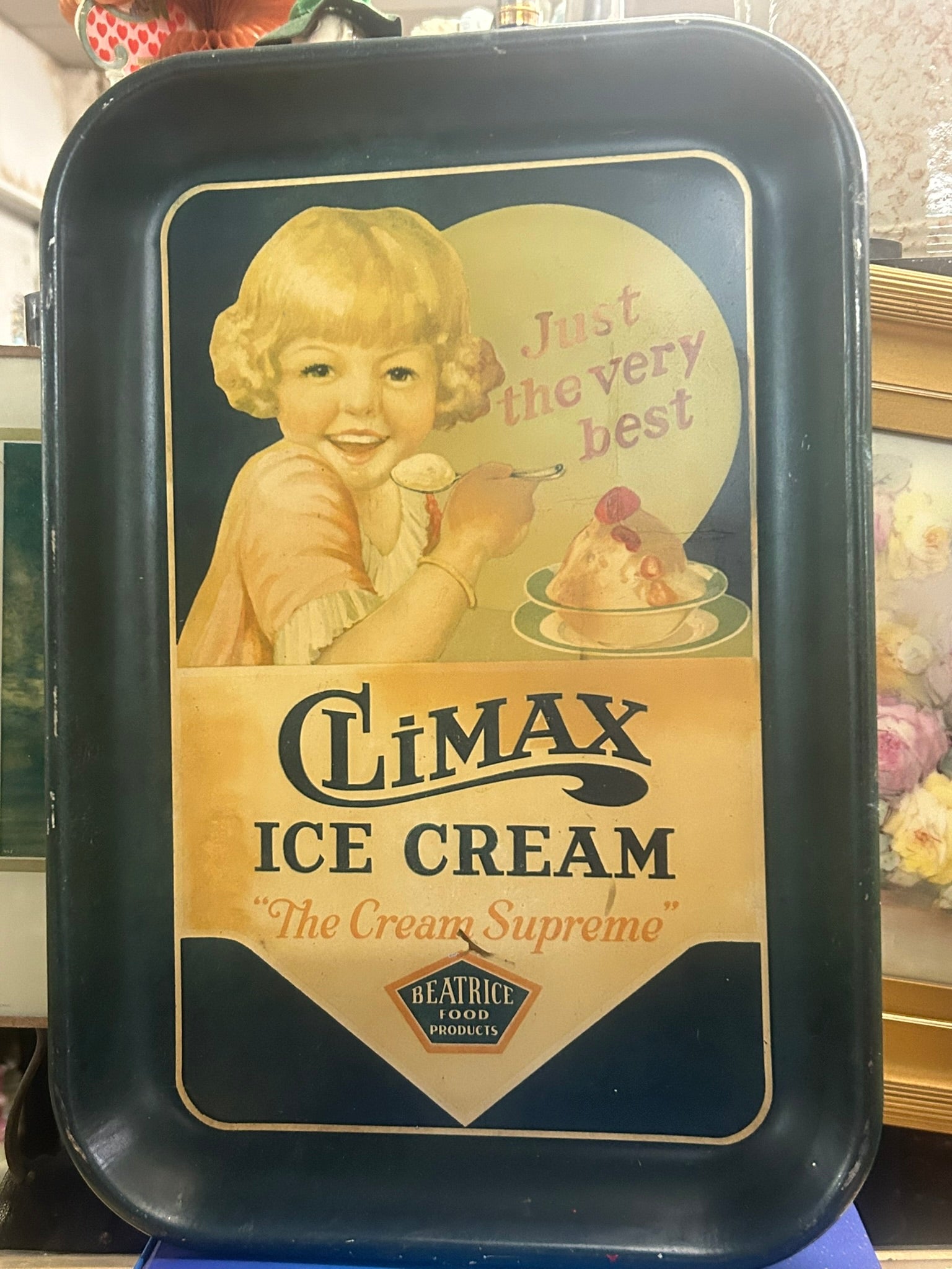 ANTIQUE ADVERTISING TRAY FOR CLIMAX ICE CREAM-BEATRICE FOOD PRODUCTS