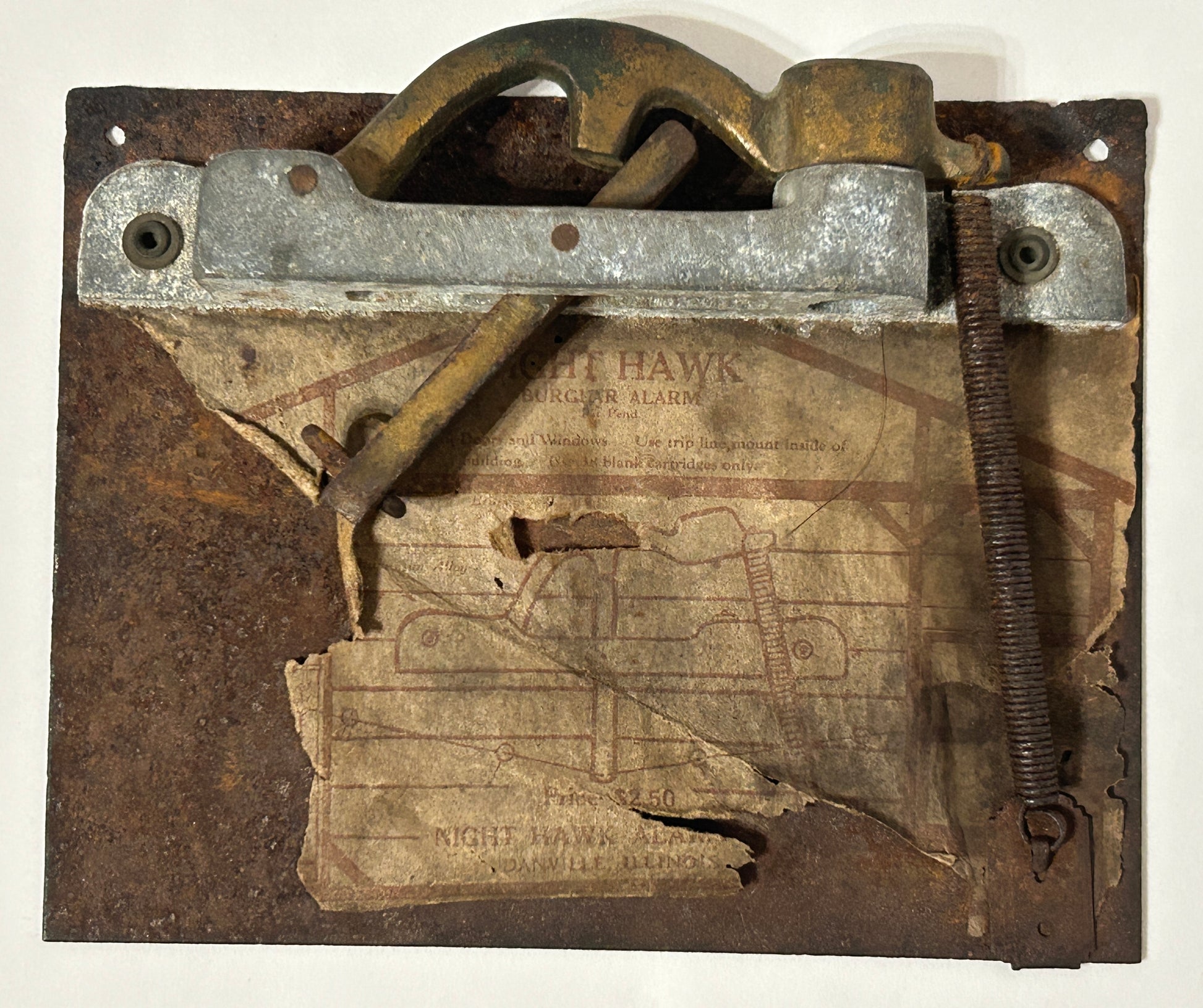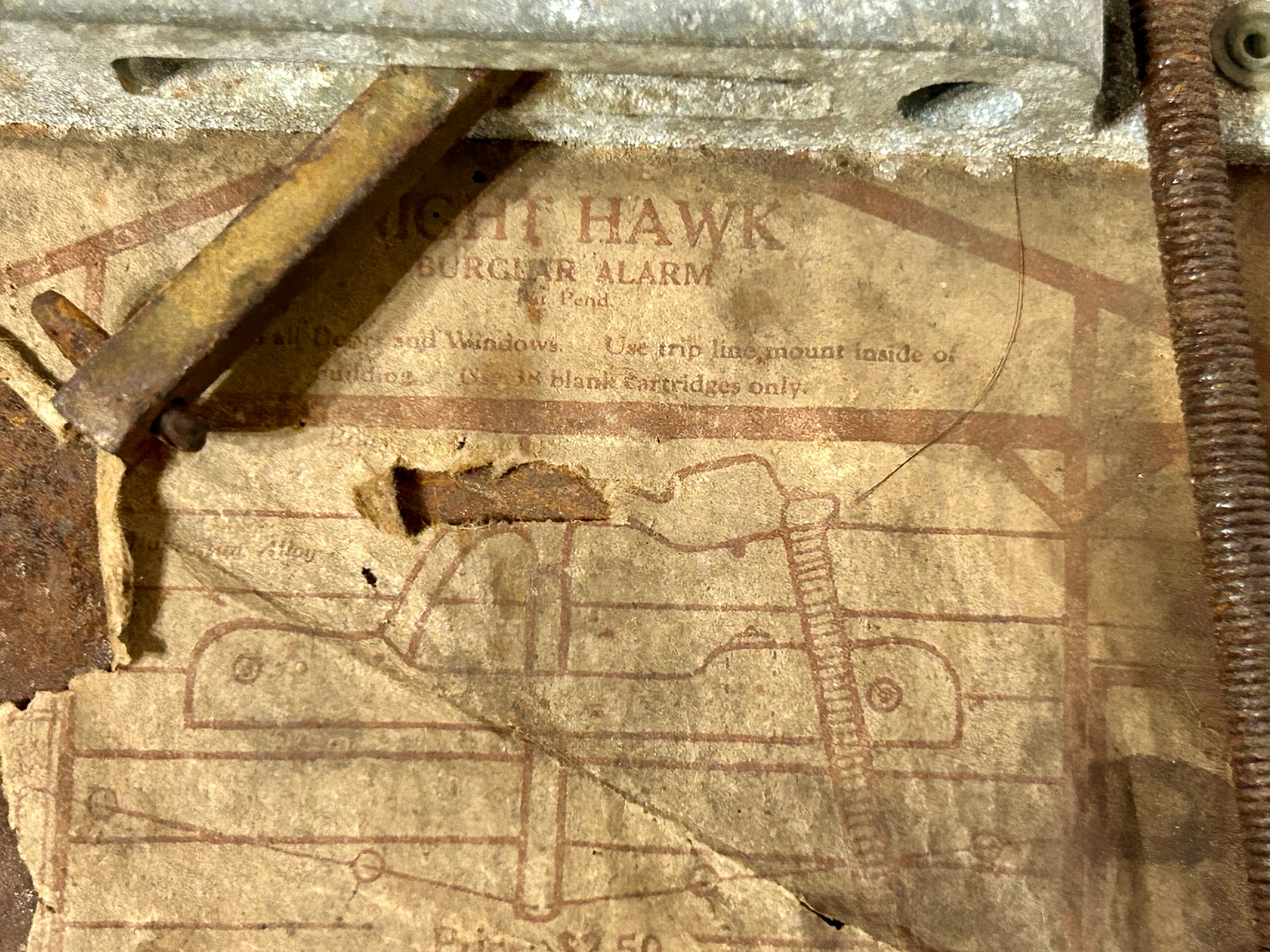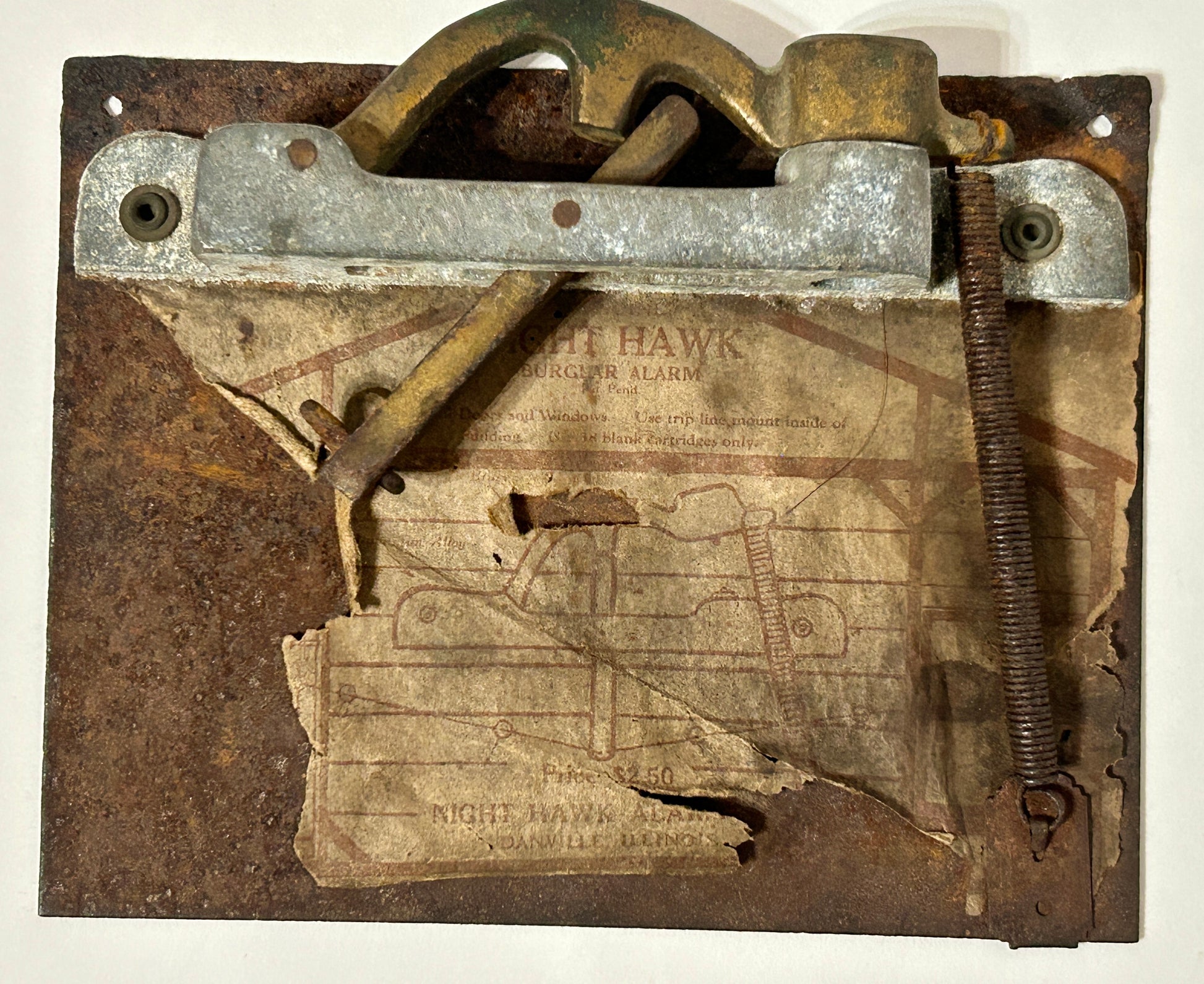 ANTIQUE ALARM GUN "NIGHT HAWK" FOR DOORS AND WINDOWS 6" X 5". CALL OR TEXT FOR MORE INFORMATION