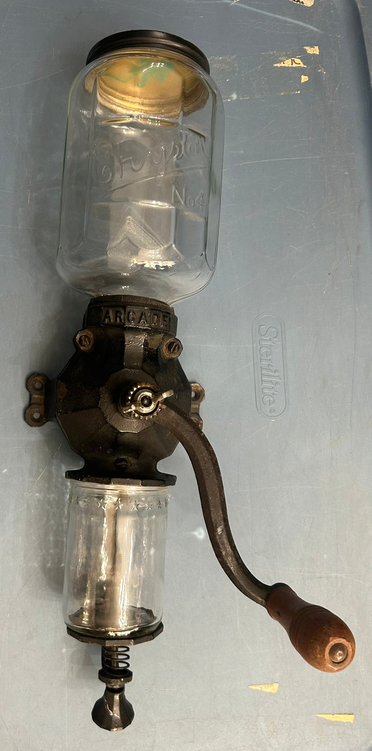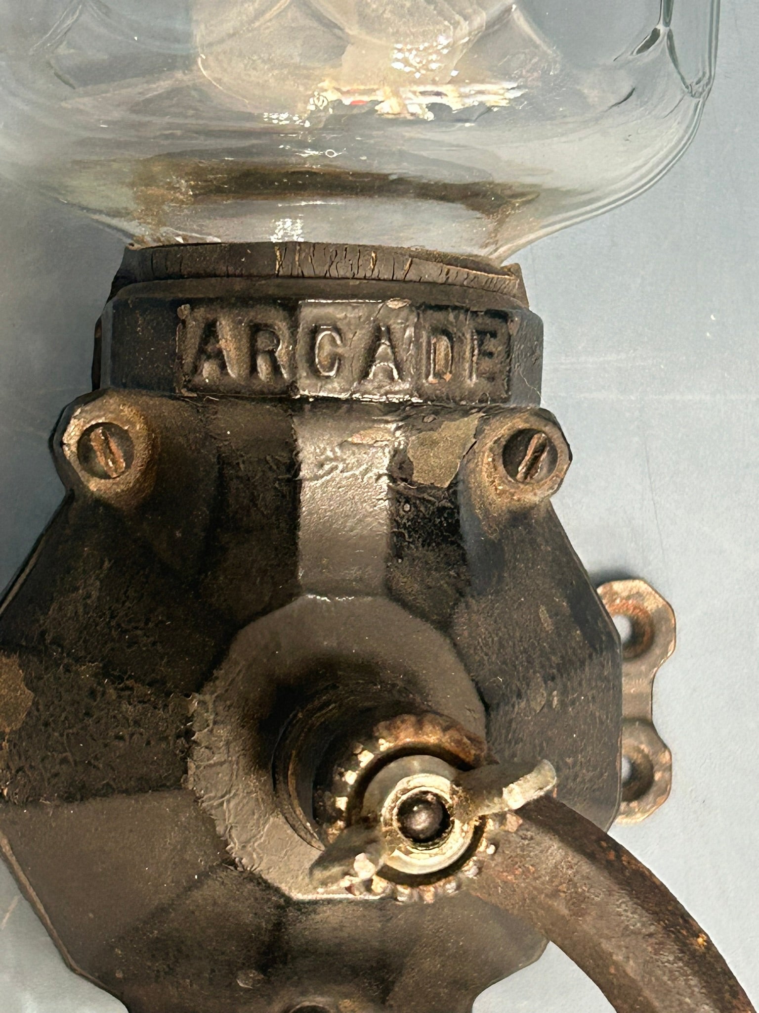 ANTIQUE ARCADE CRYSTAL WALL COFFEE GRINDER