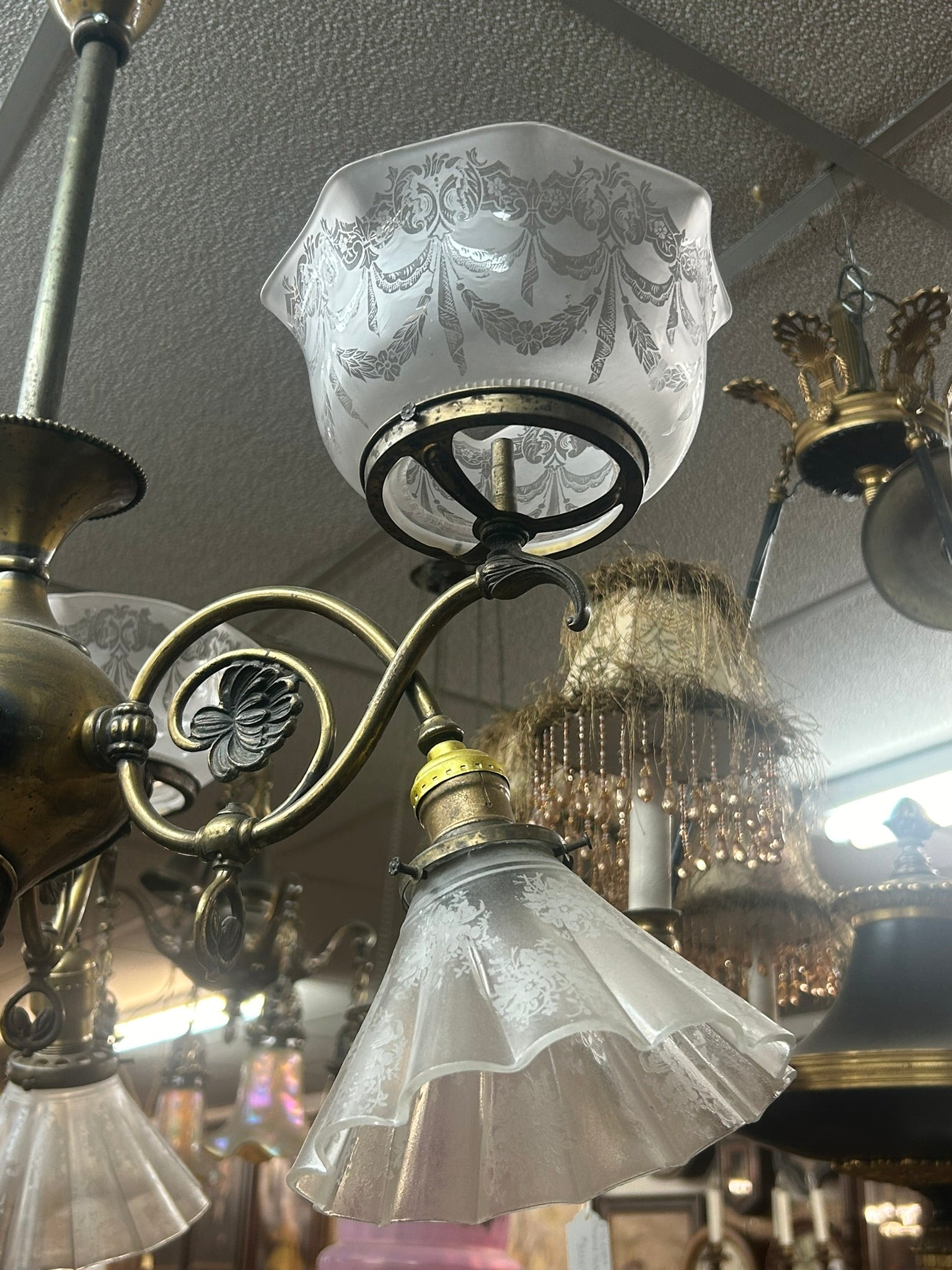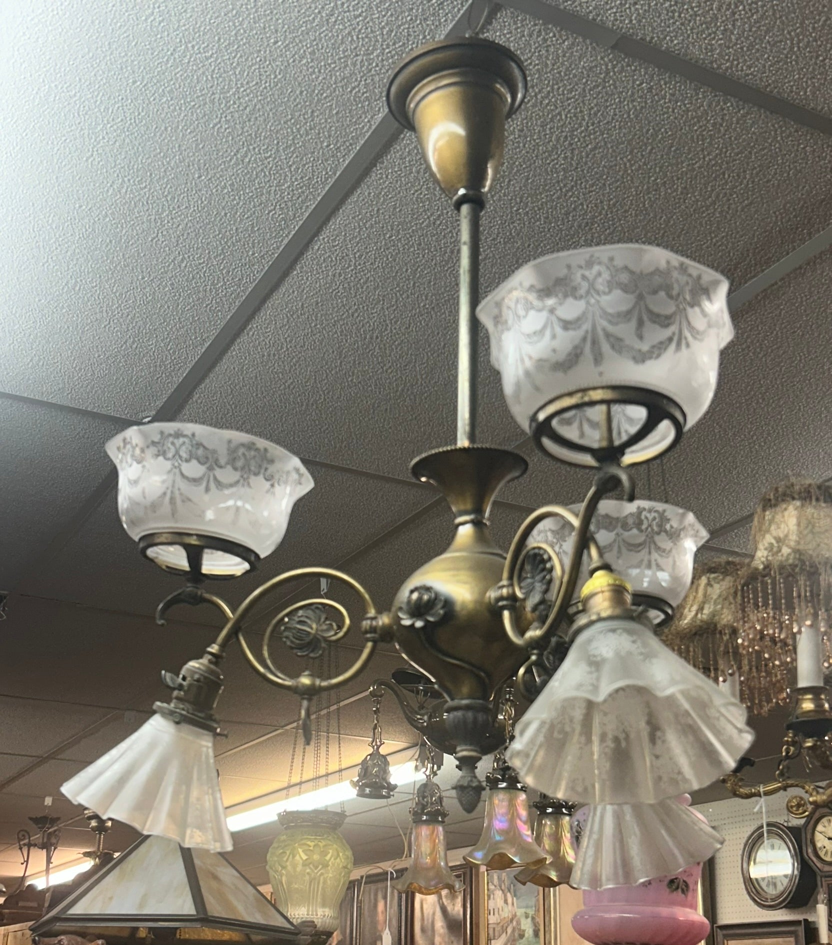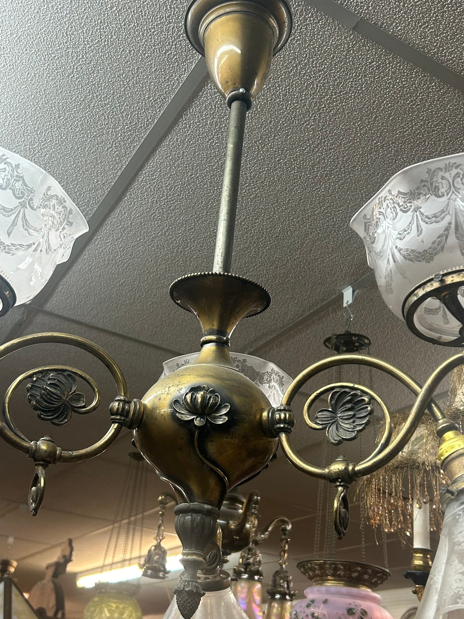 ANTIQUE ART NOUVEAU CEILING LIGHT FIXTURE