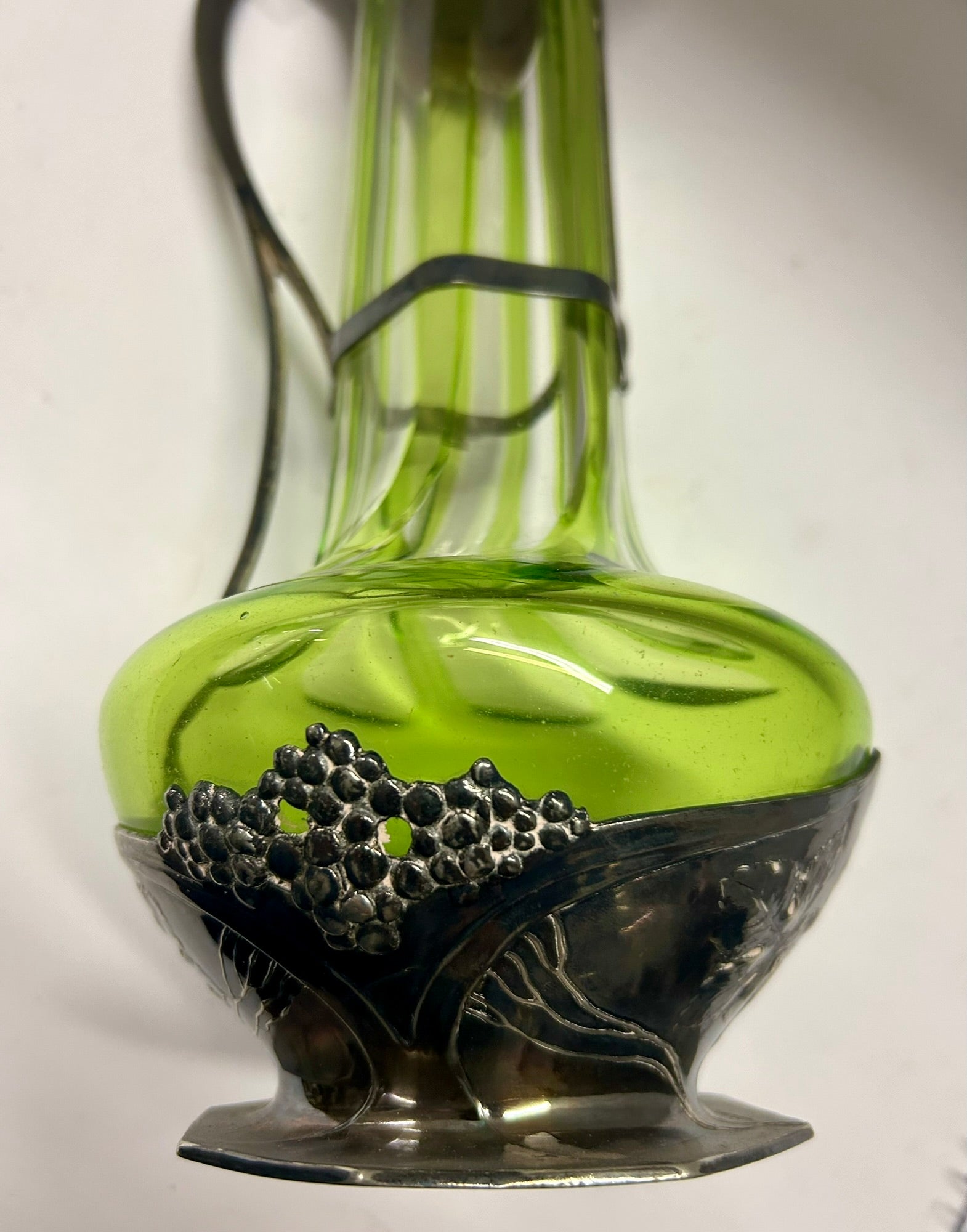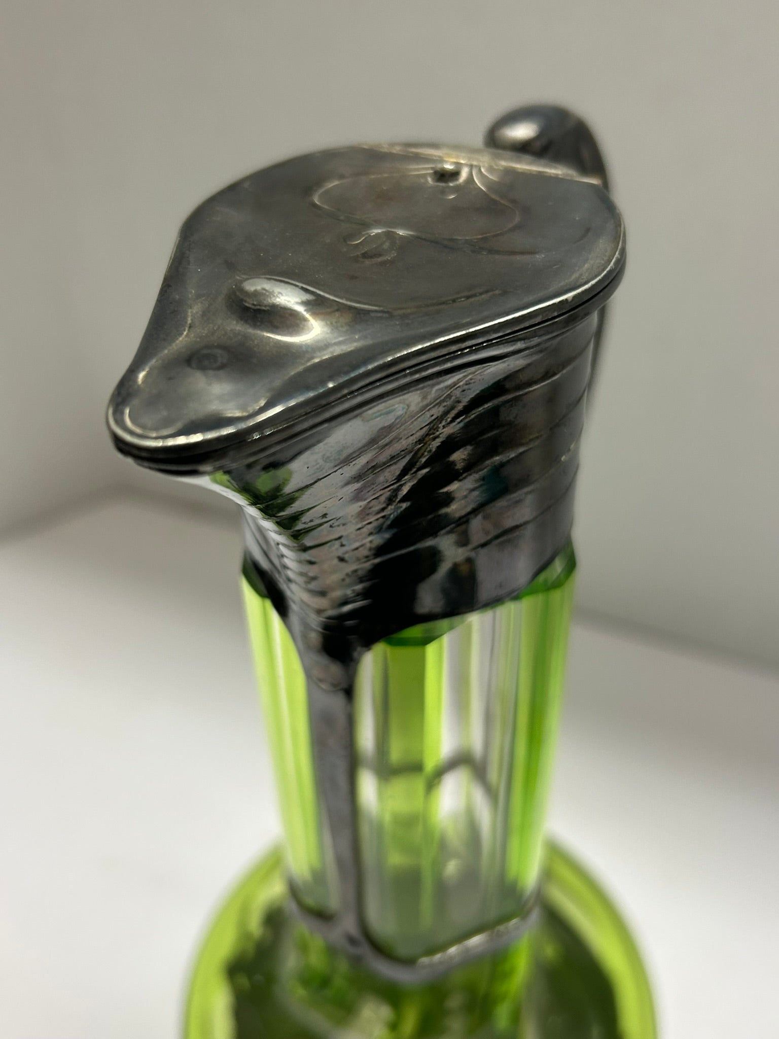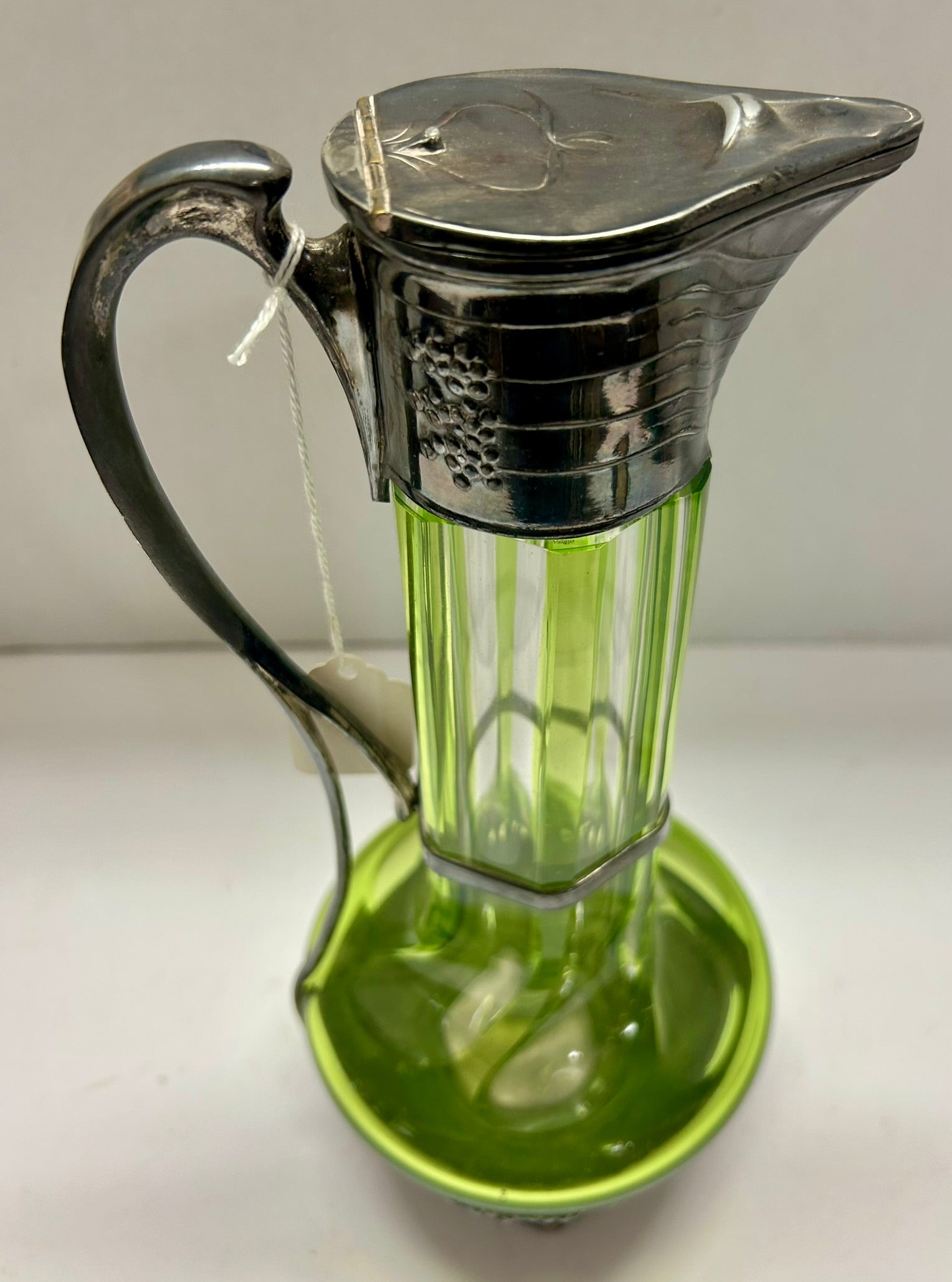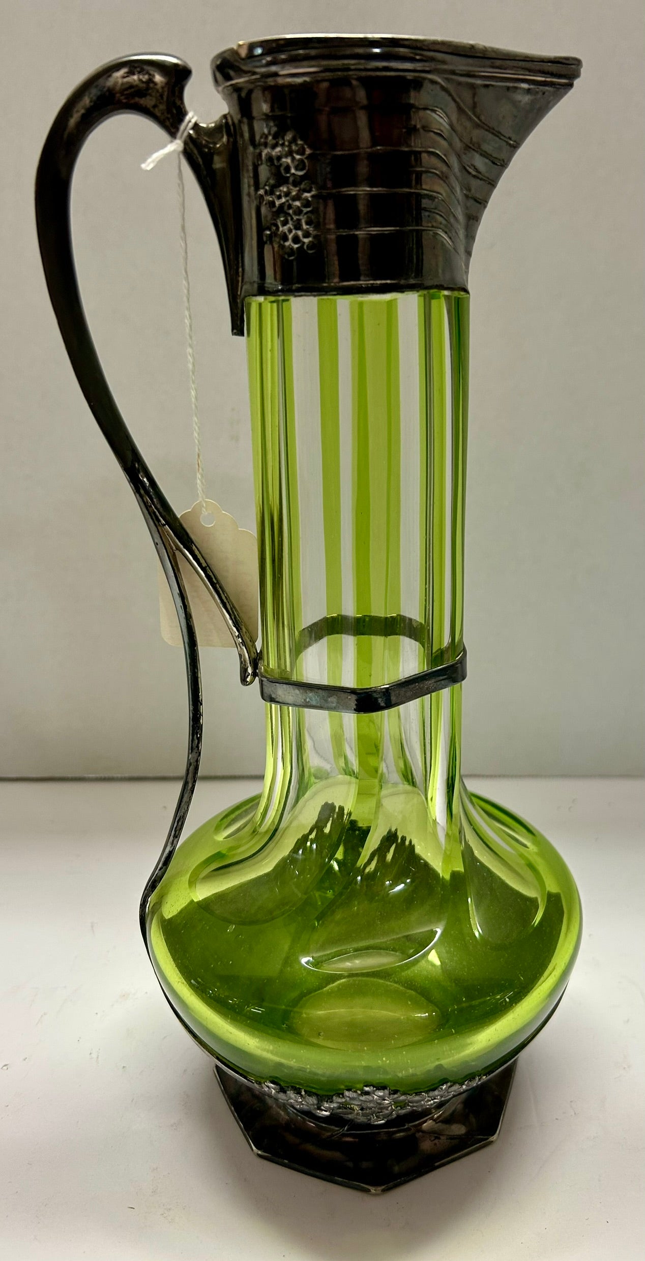 ANTIQUE AUSTRIAN GREEN GLASS EWER CUT TO CLEAR GLASS