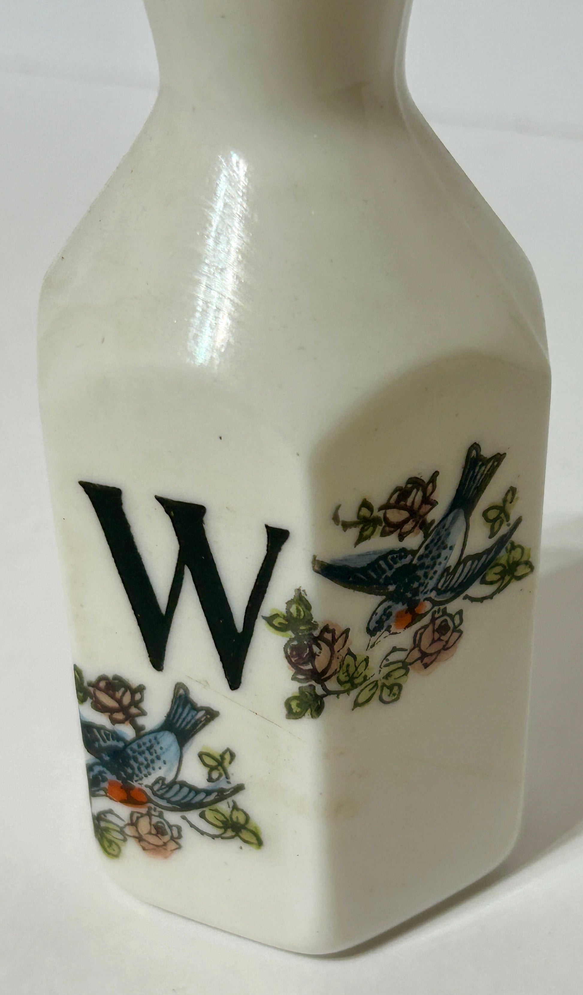 ANTIQUE DECORATED MILK GLASS TOILET WATER BARBER BOTTLE 8" TALL. SHIPPING IS EXTRA CHARGE SO CALL OR TEXT TO FIND OUT WHAT THIS EXTRA CHARGE WILL BE TO YOUR LOCATION