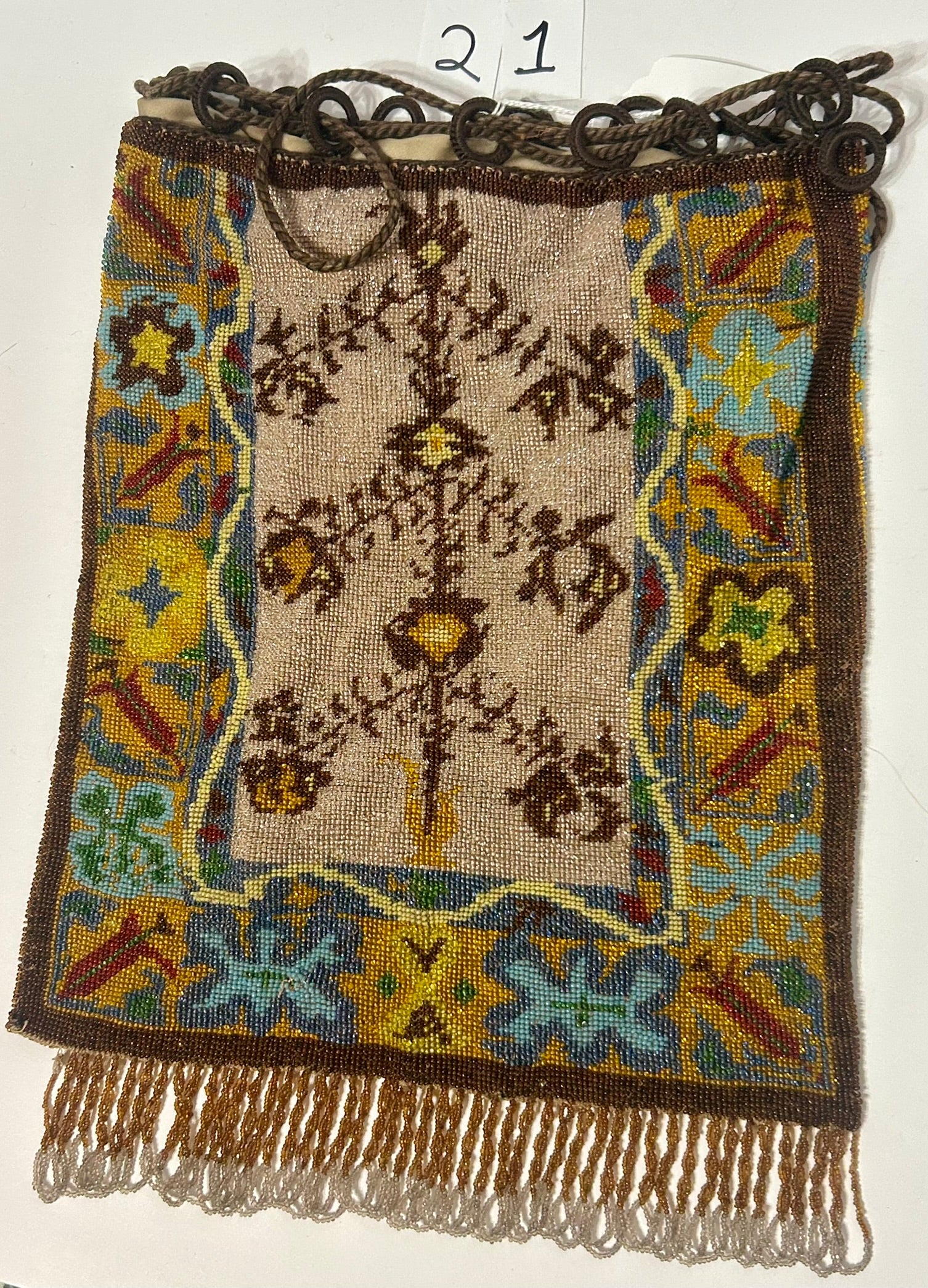 ANTIQUE BEADED LARGE DRAWSTRING PURSE