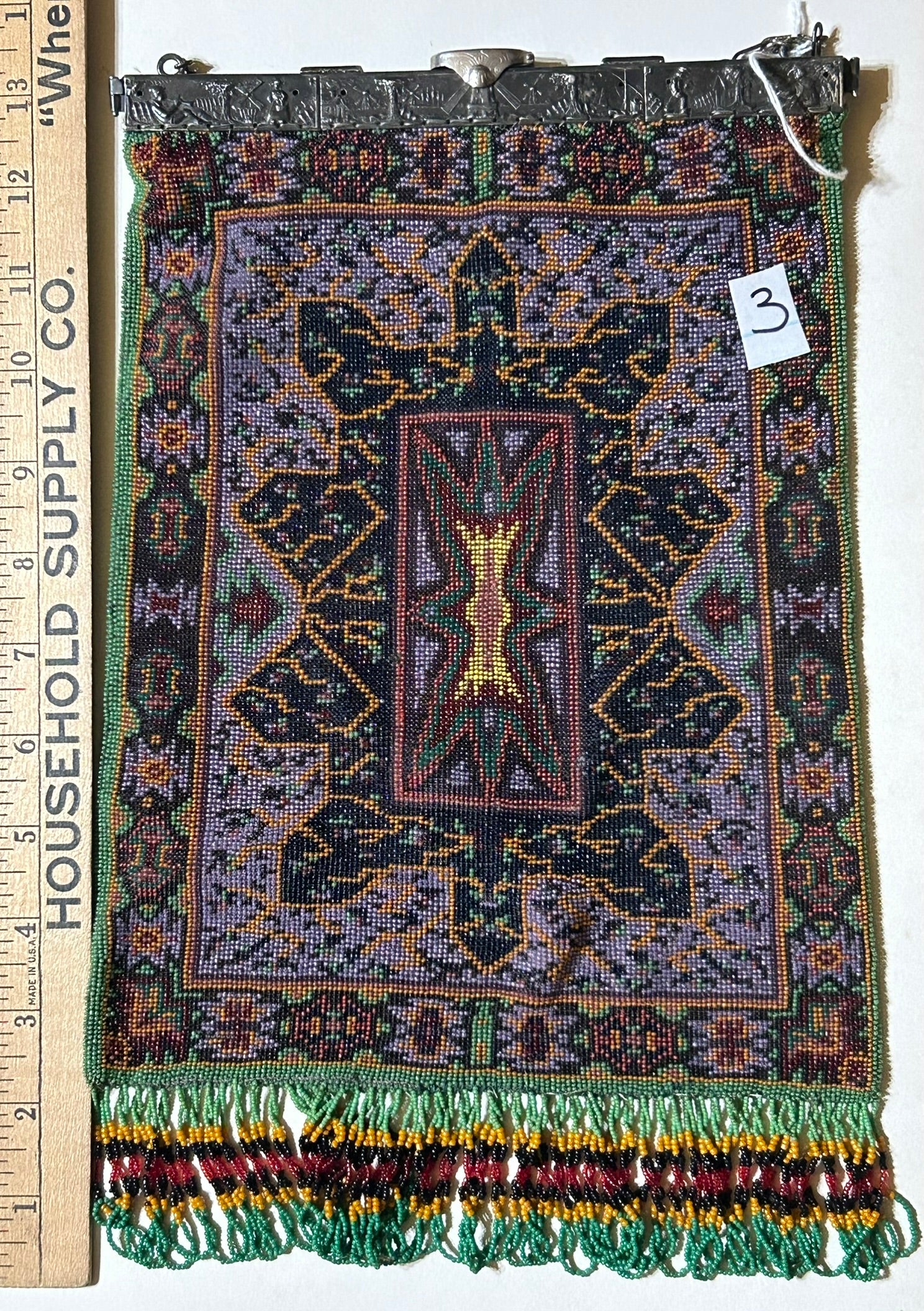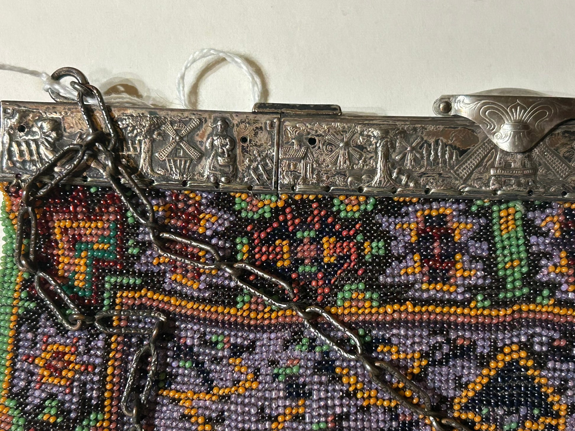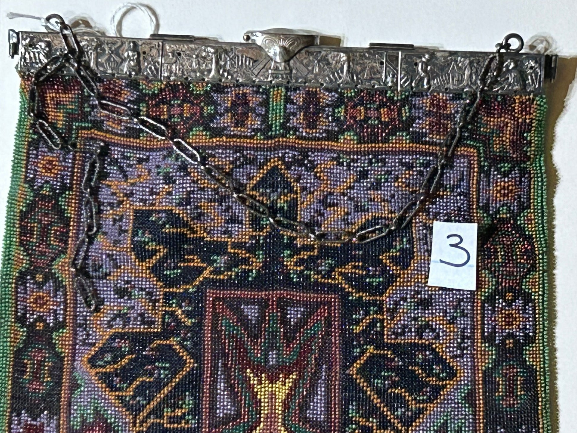 ANTIQUE BEADED LARGE PURSE WITH DETAILED FRAME SCENE