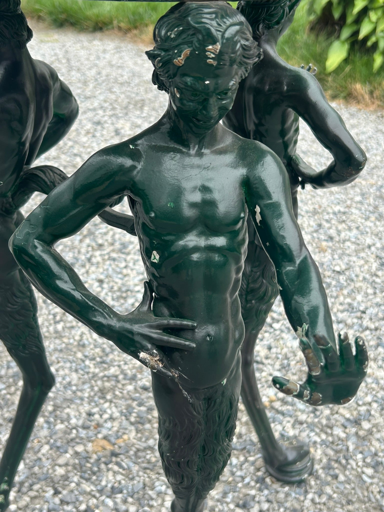 ANTIQUE BRONZE BRAZIER, TORCHERE WITH PAN SATYR FIGURAL LEGS