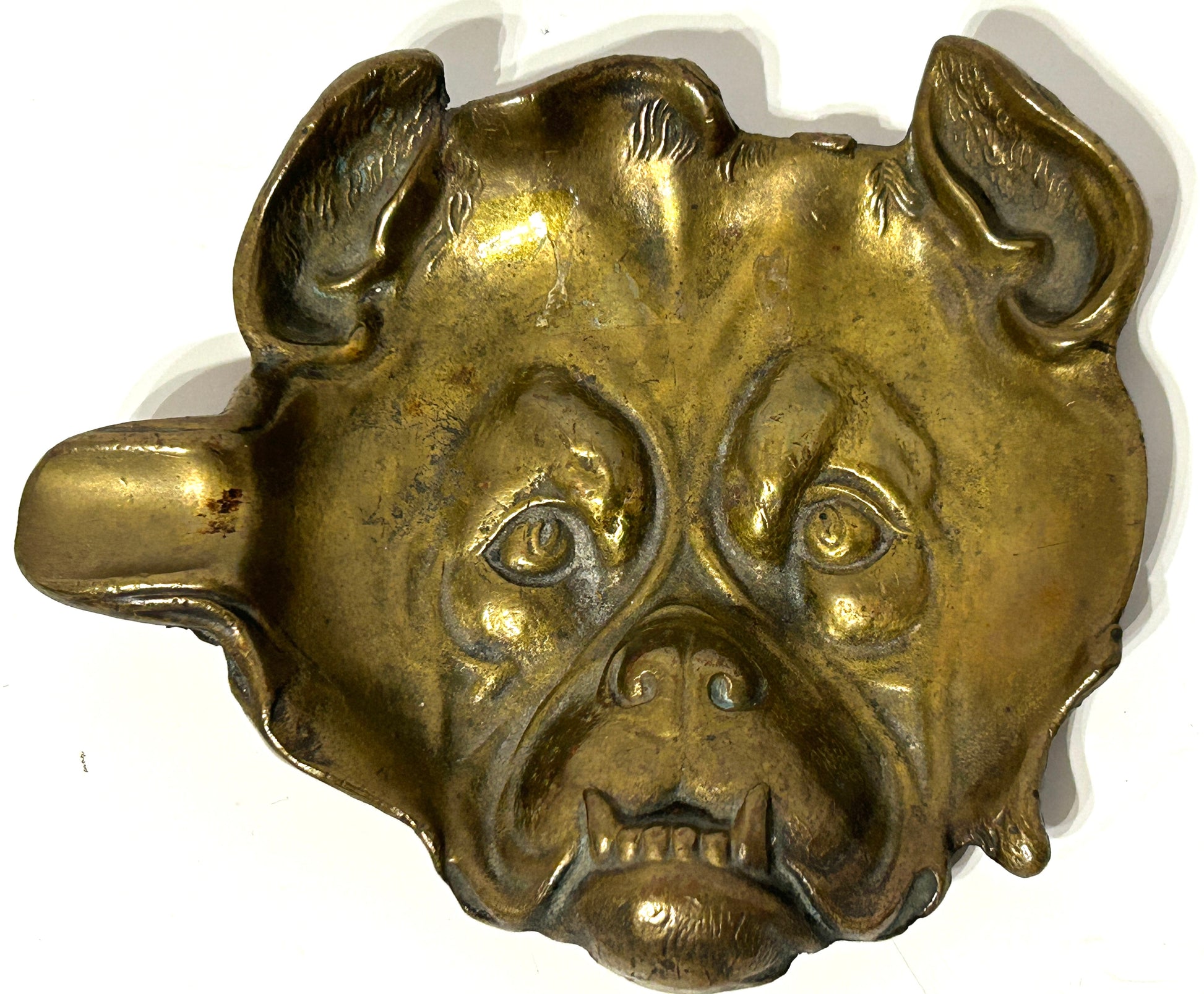 ANTIQUE BRONZE BULL DOG FIGURAL ASHTRAY 5 1/2" X 4 3/4". SHIPPING COSTS ARE EXTRA SO CALL OR TEXT US TO FIND OUT WHAT WE HAVE TO PAY TO SHIP