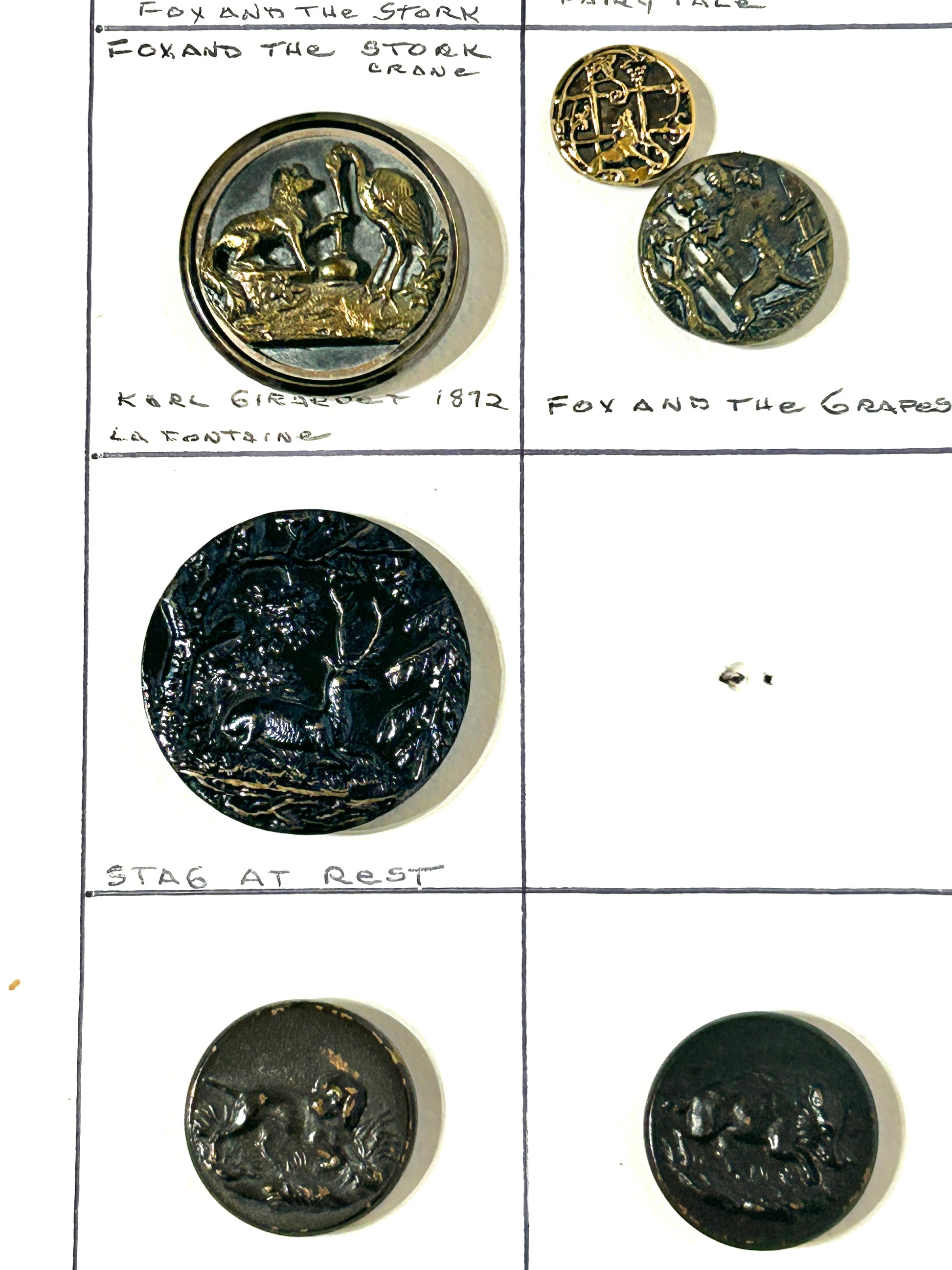 TWENTY ANTIQUE BUTTONS WITH ANIMAL THEMES WITH LARGEST BUTTONS BEING 1 1/2" DIA. SHIPPING IS EXTRA CHARGE SO CALL OR TEXT TO FIND OUT WHAT IT WILL COST TO SHIP TO YOUR ADDRESS