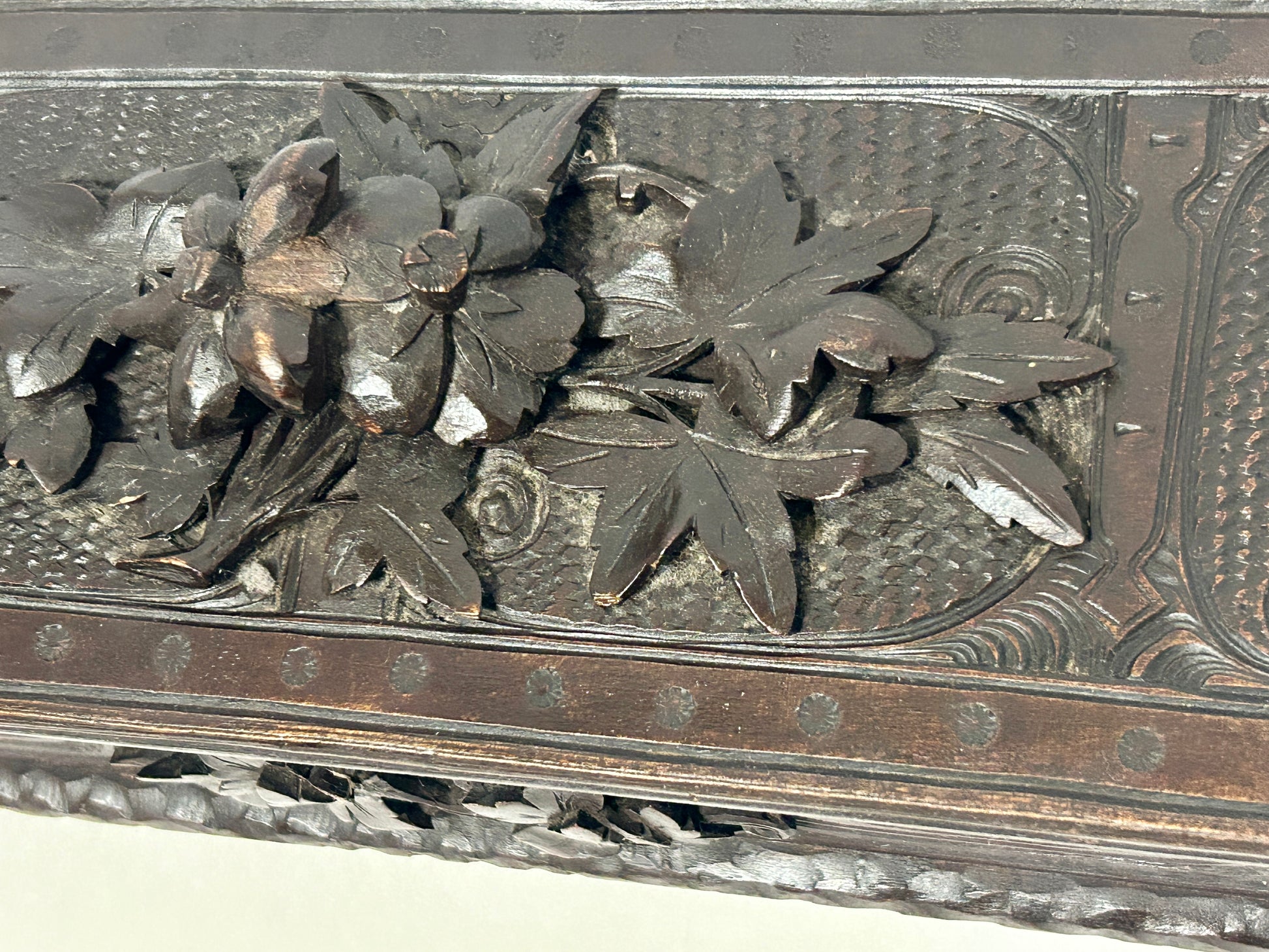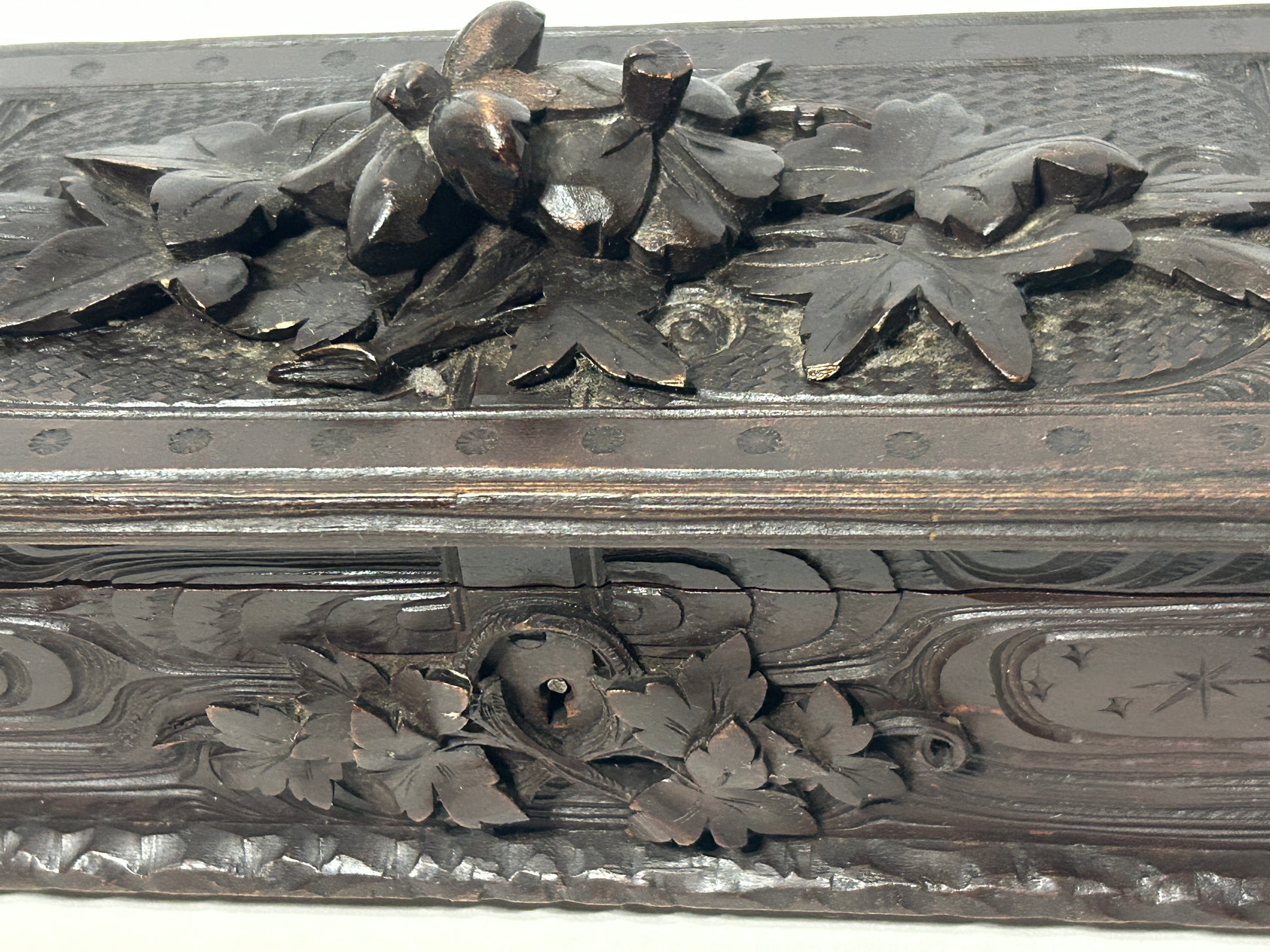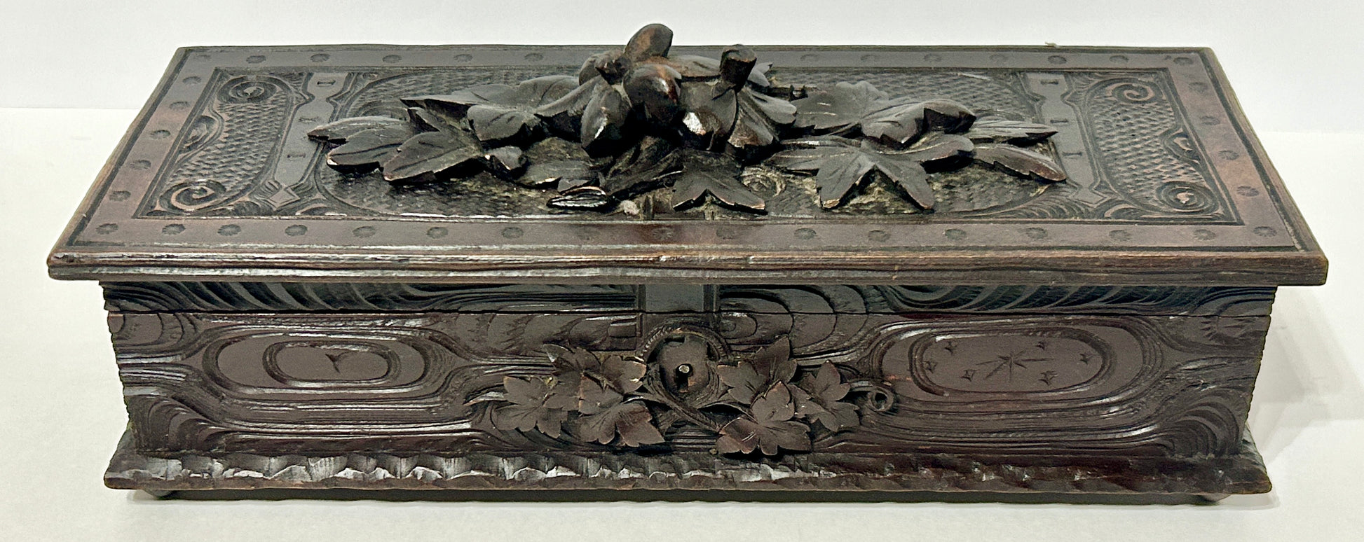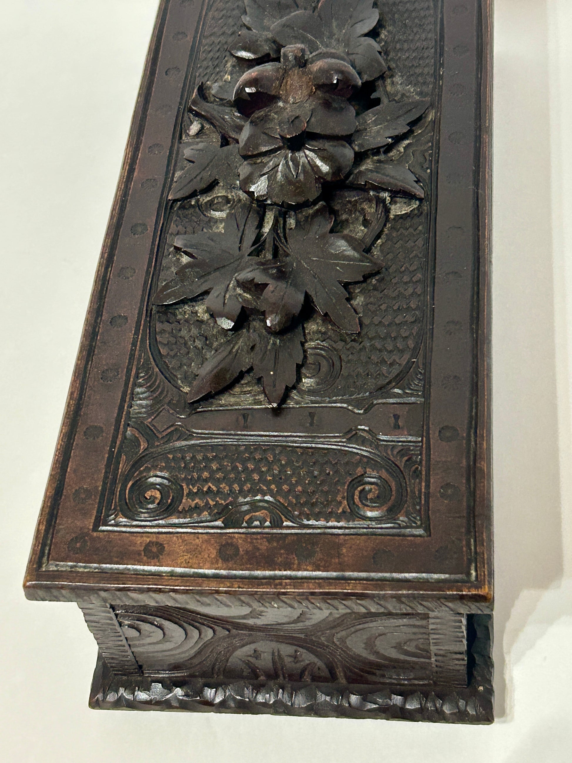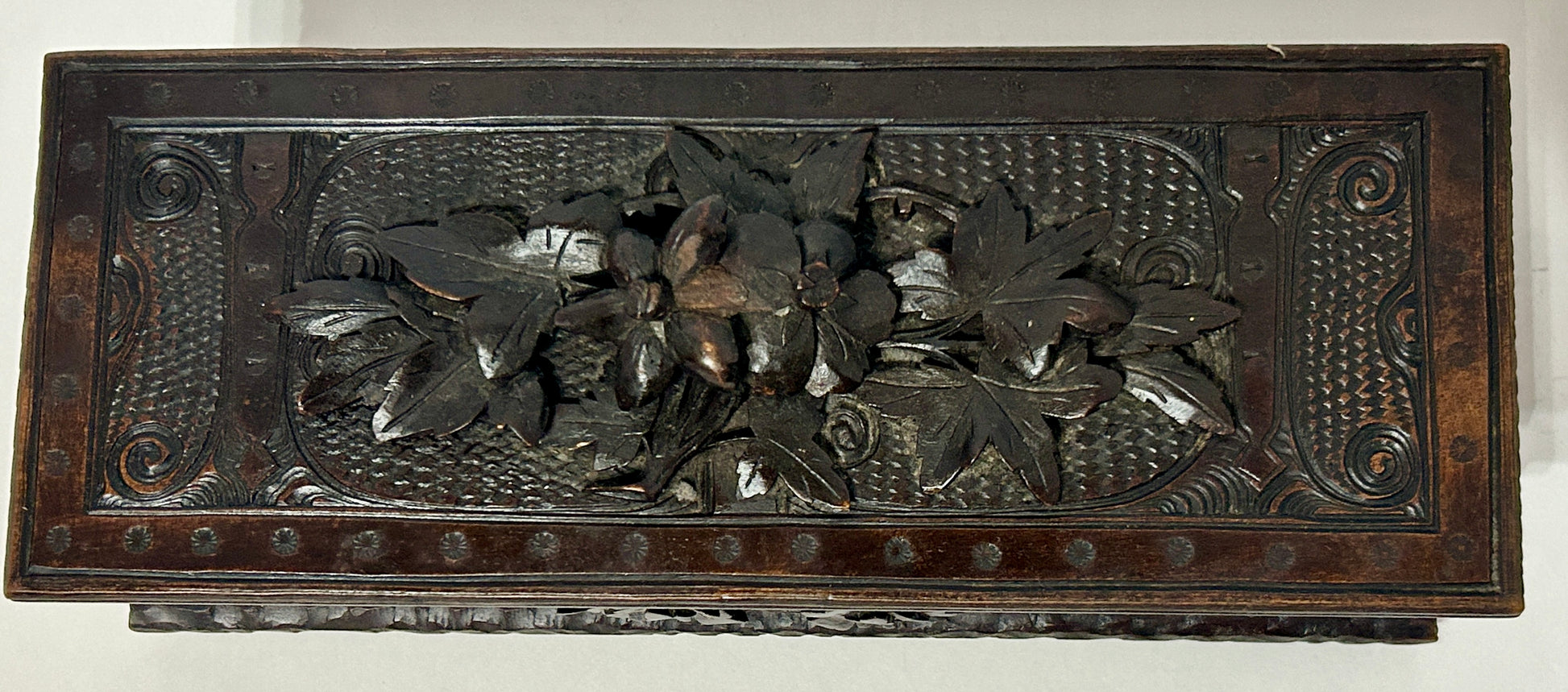 ANTIQUE CARVED WITH LEAVES LATE 1800'S BOX