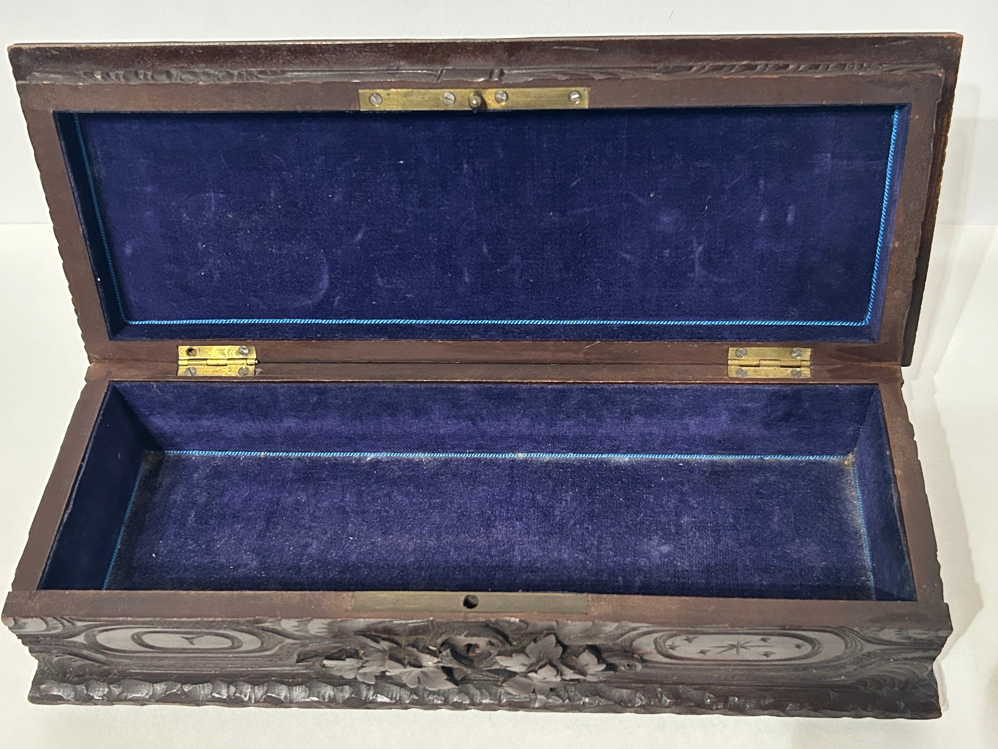 ANTIQUE CARVED WOOD BOX WITH LEAVES AND FRUIT 11 1/2" WIDE X 4" TALL X 4 1/2" DEEP. CALL OR TEXT FOR MORE INFORMATION