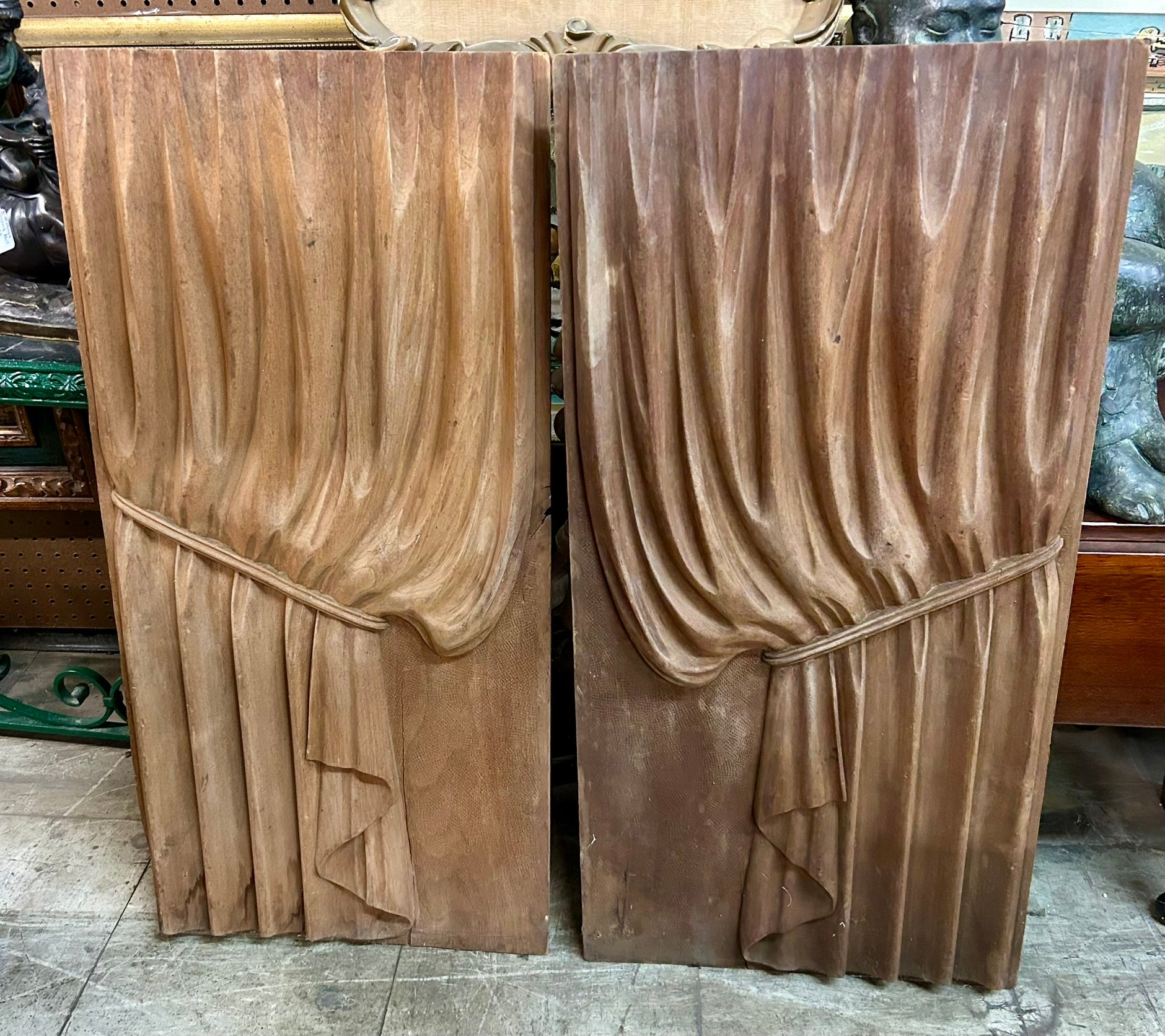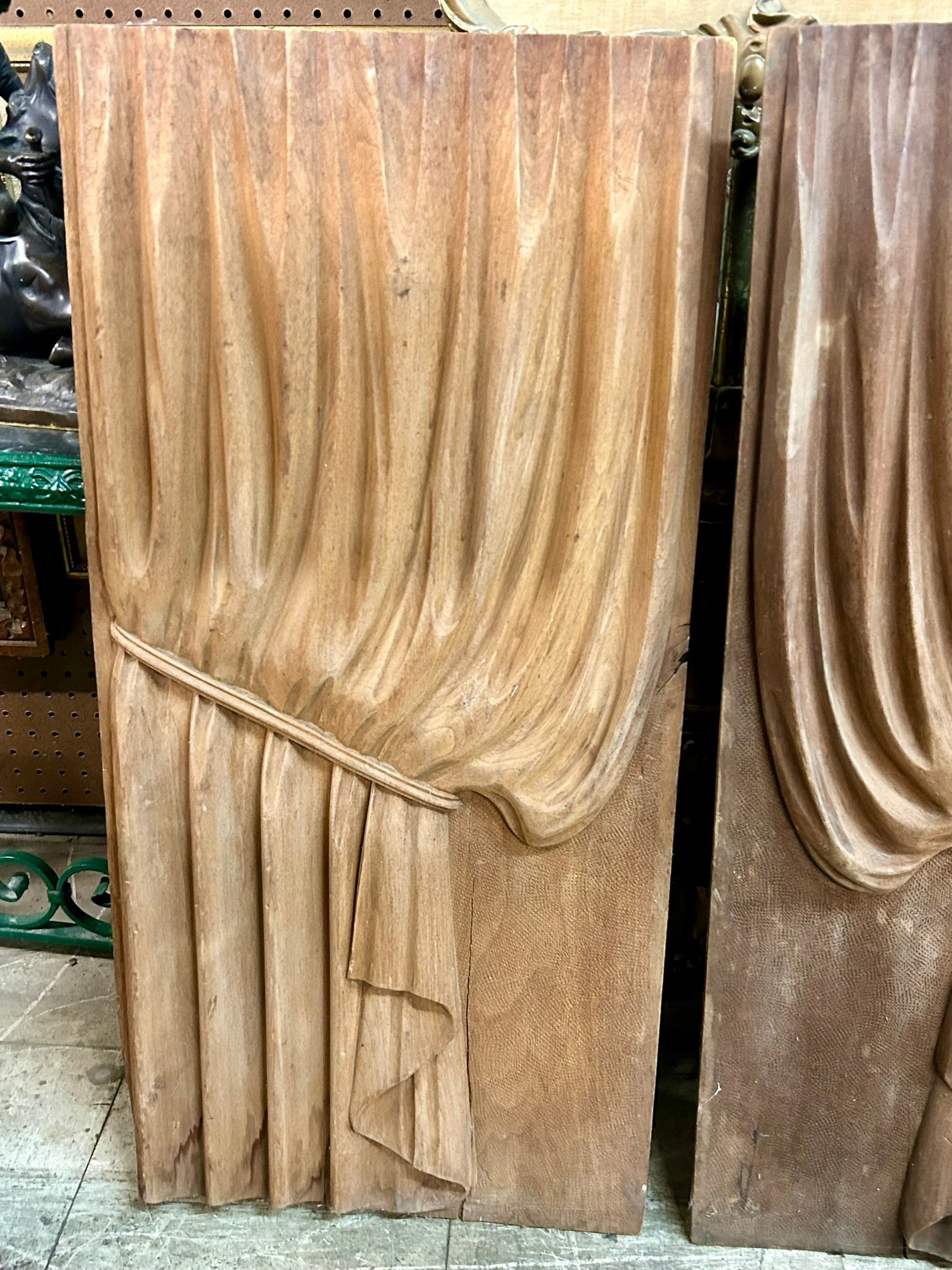 ANTIQUE CARVED WOODEN PAIR OF HEARSE CURTAINS. CALL OR TEXT FOR MORE INFORMATION
