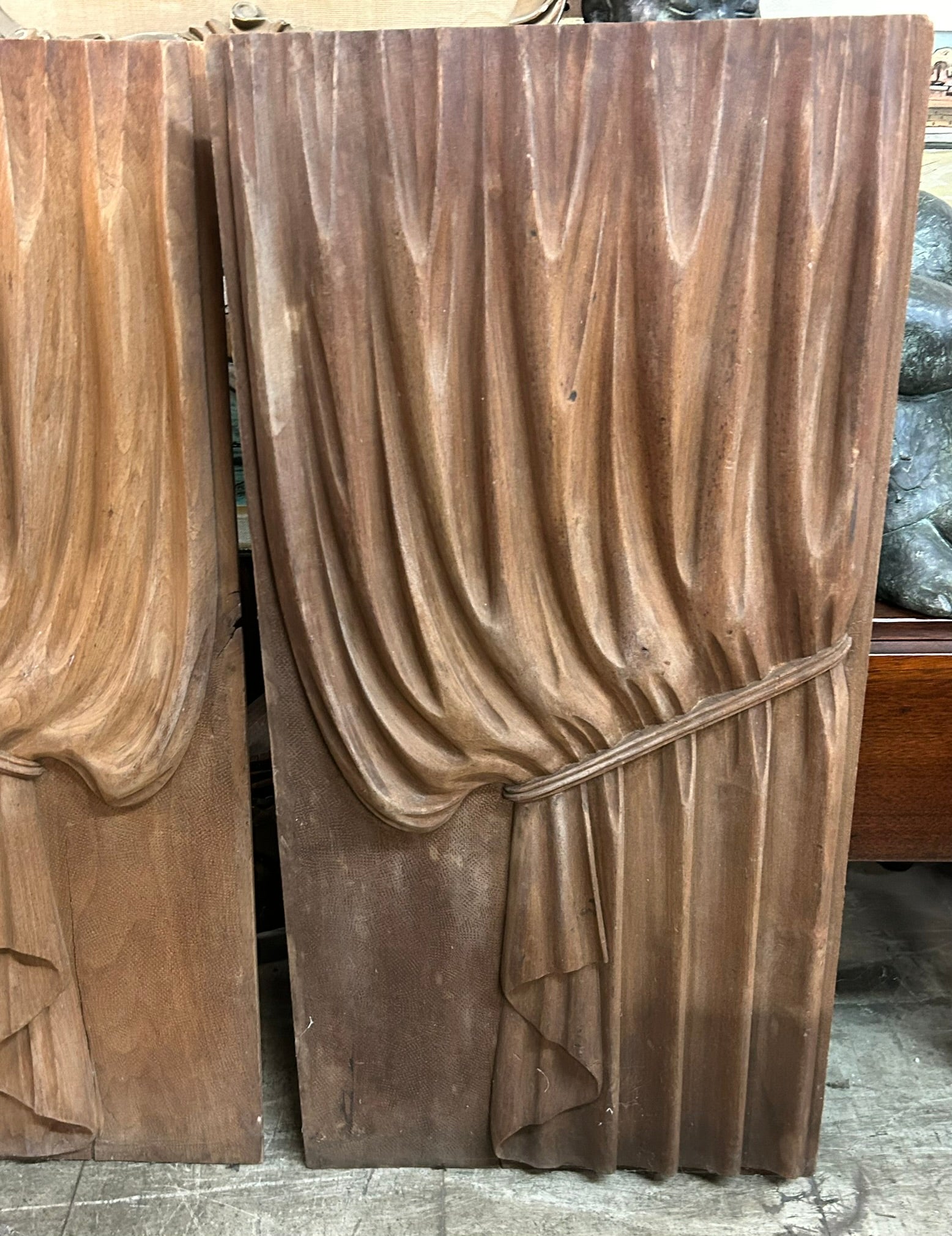 ANTIQUE CARVED WOODEN PAIR OF HEARSE CURTAINS