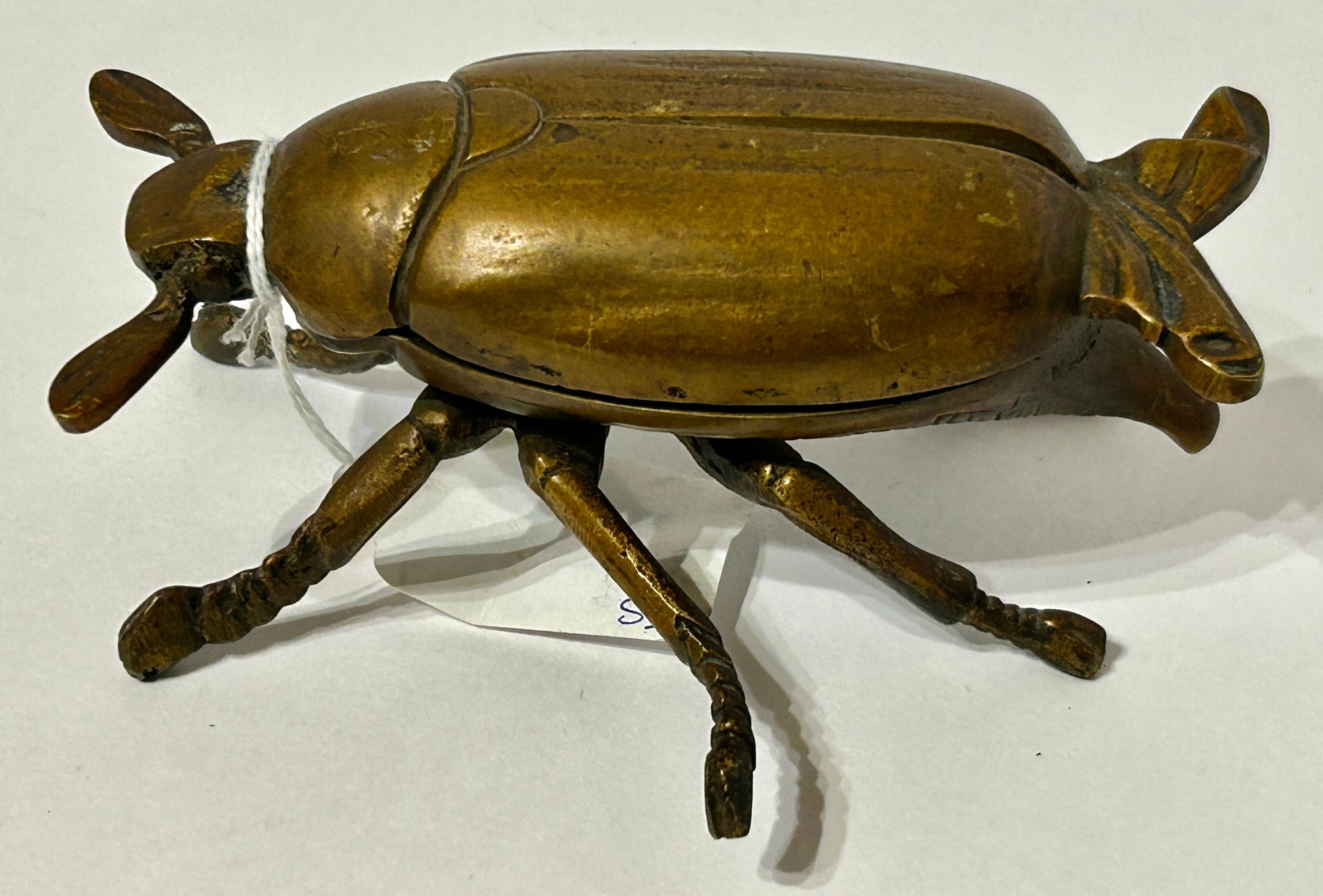 ANTIQUE CAST BRASS BEETLE MATCH HOLDER