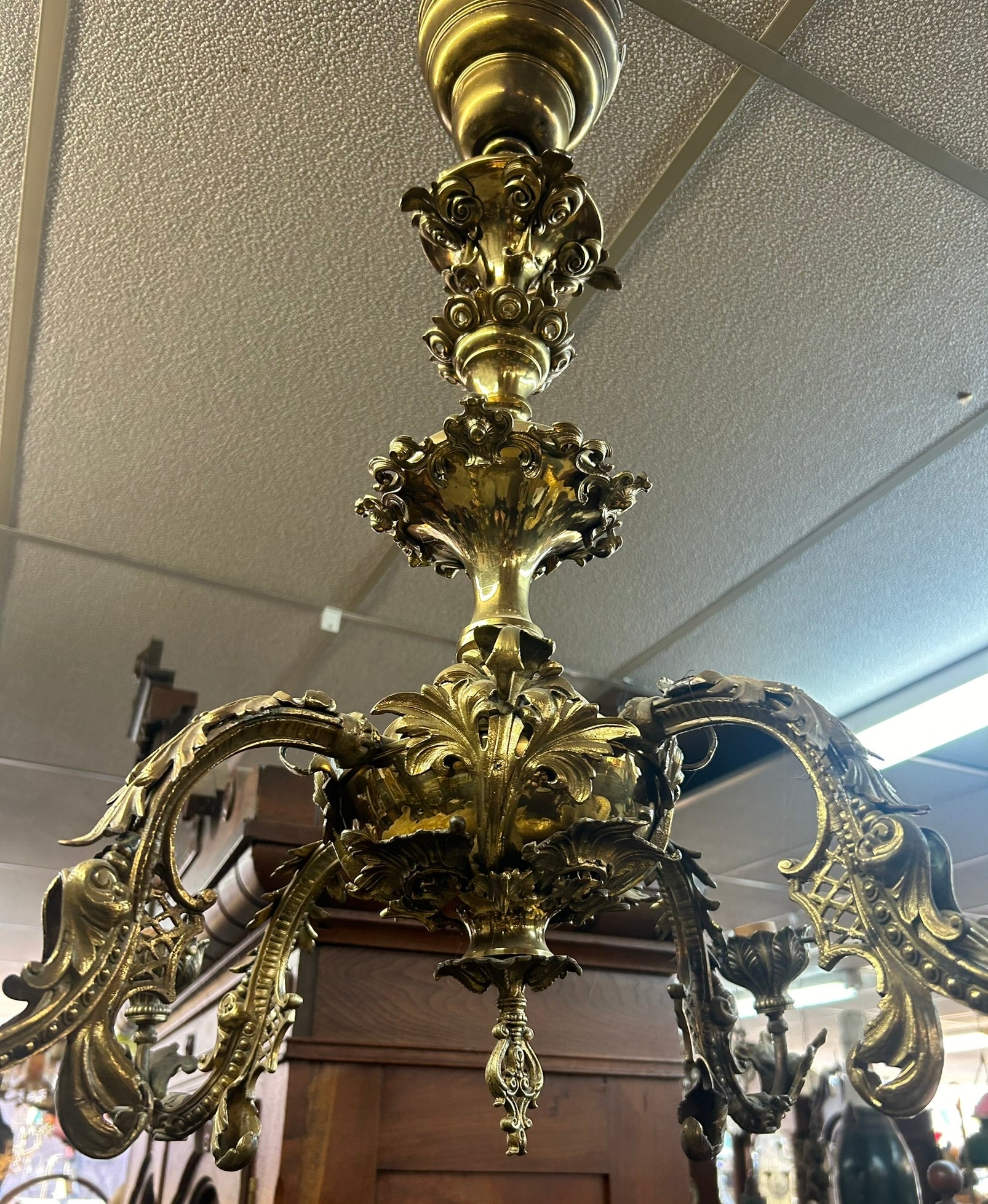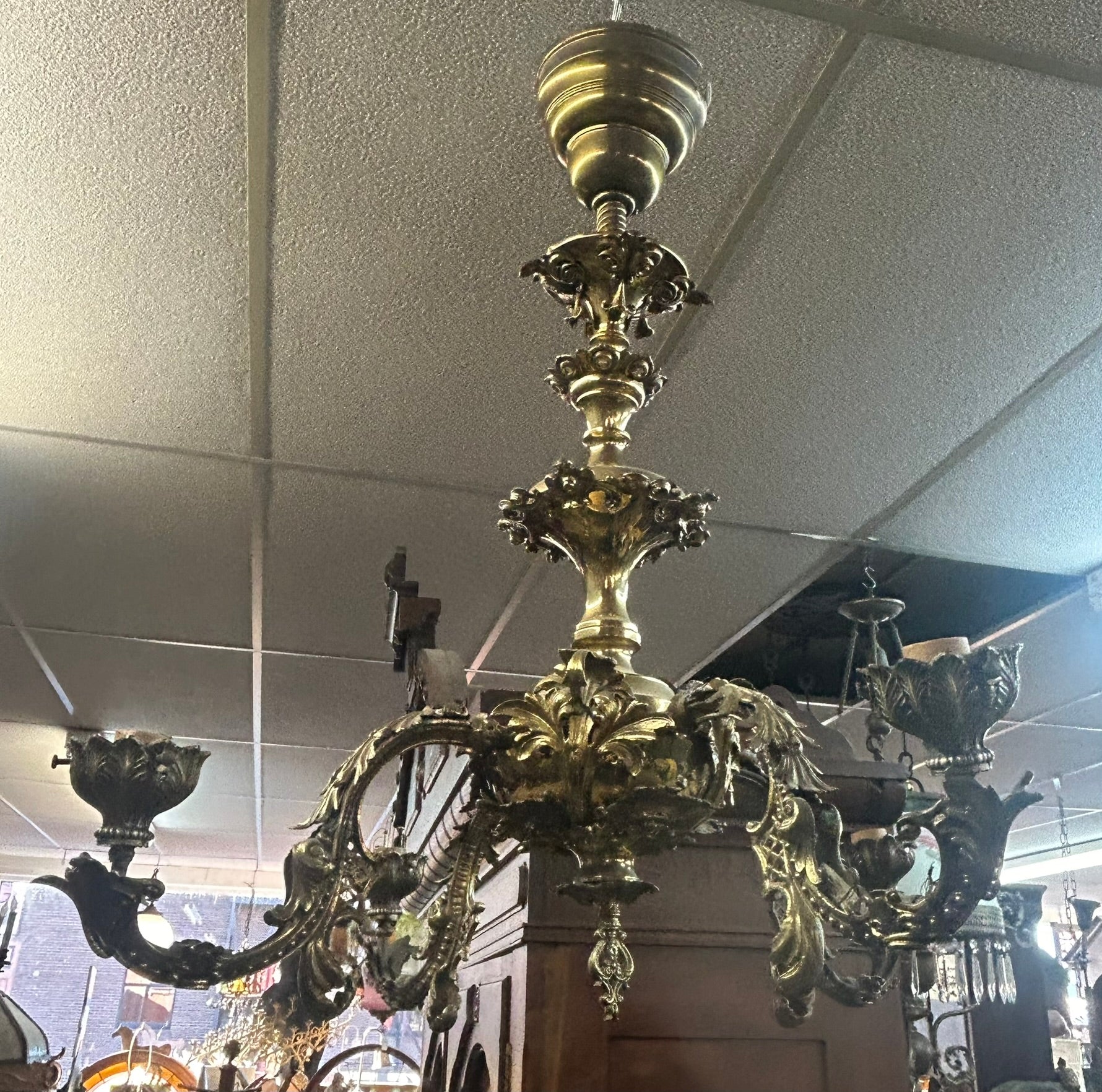ANTIQUE CAST BRONZE CEILING LIGHT FIXTURE 33" TALL X 26" WIDE FOUR ARMS. CALL, TEXT, OR E-MAIL FOR MORE INFORMATION