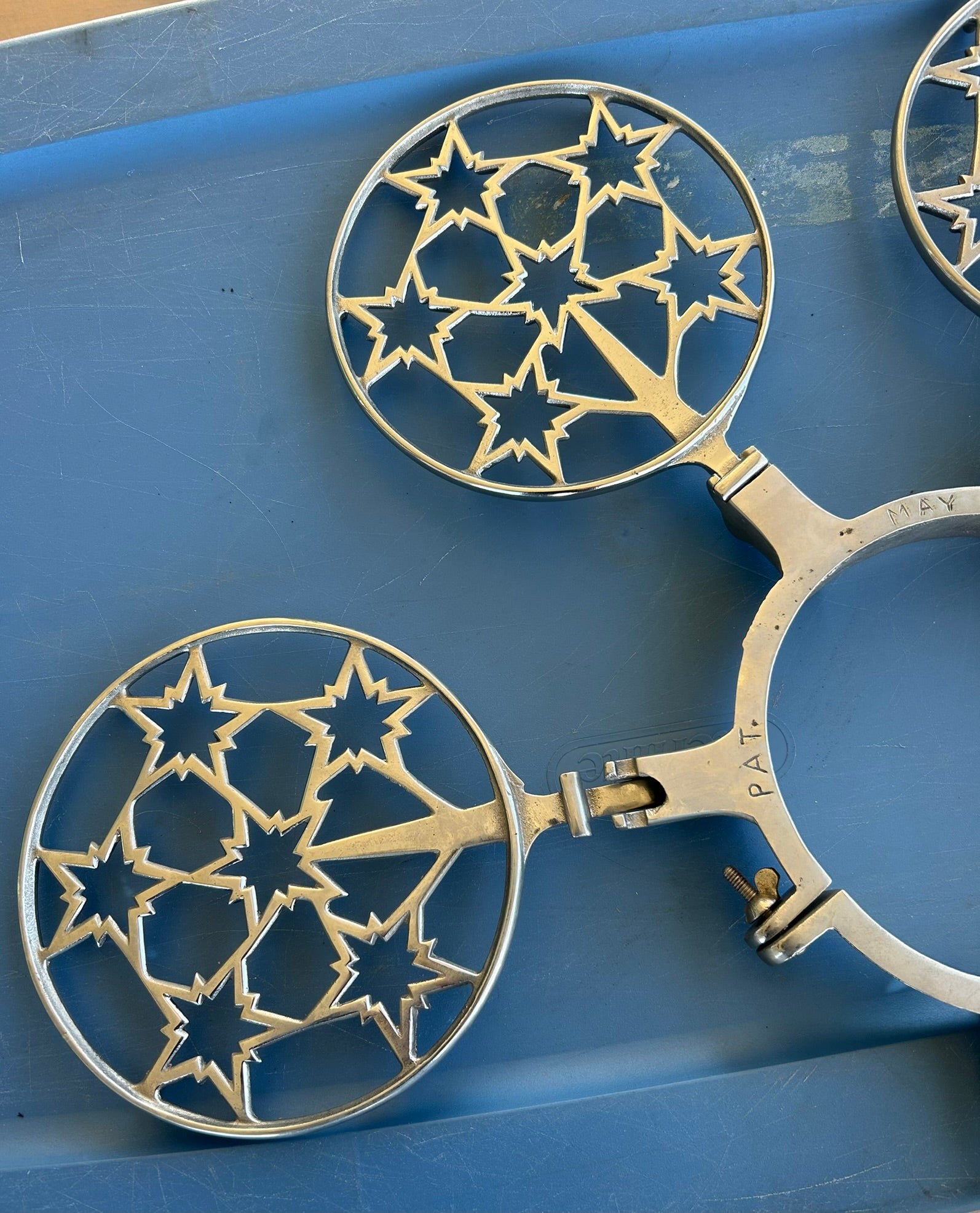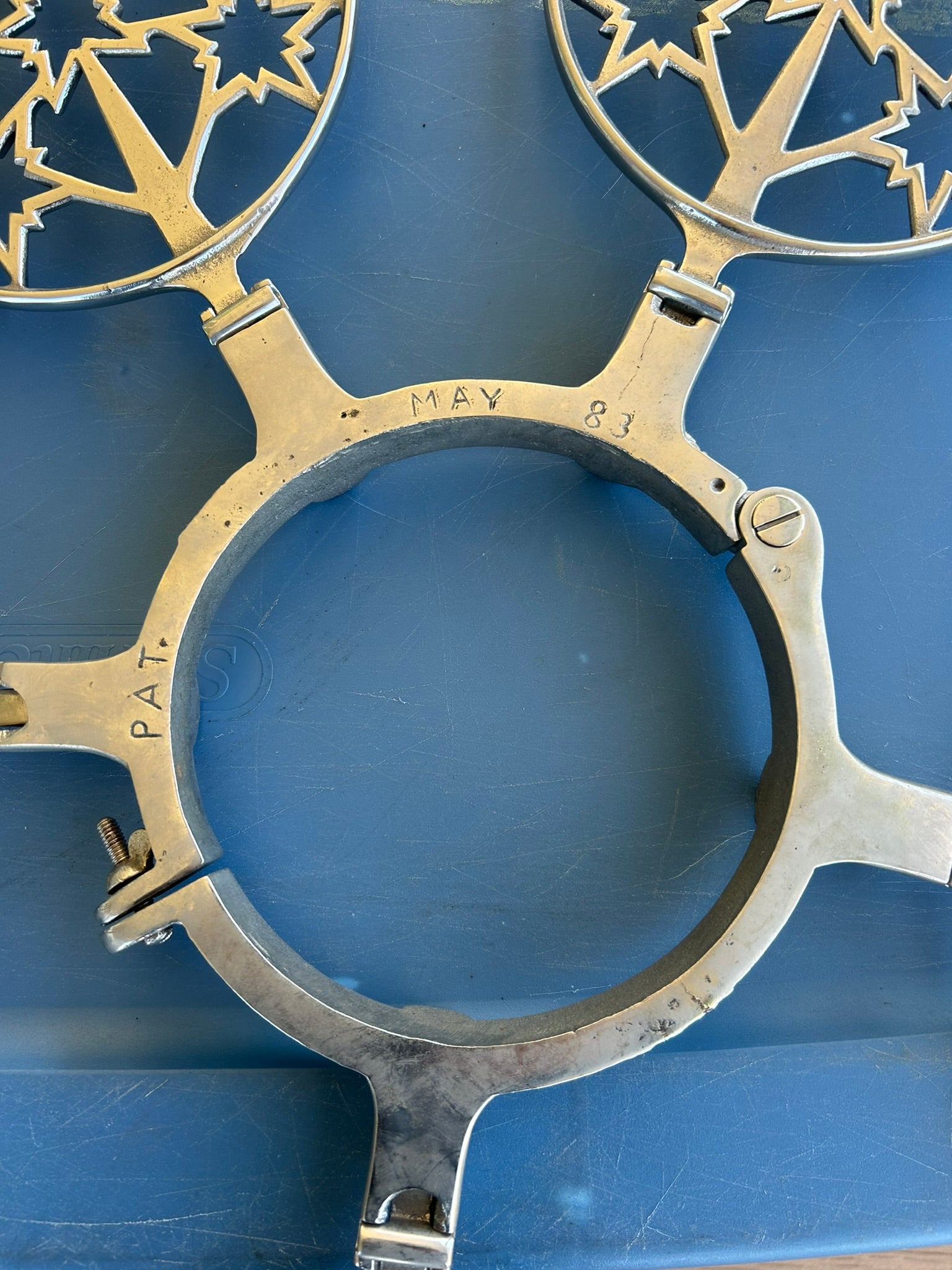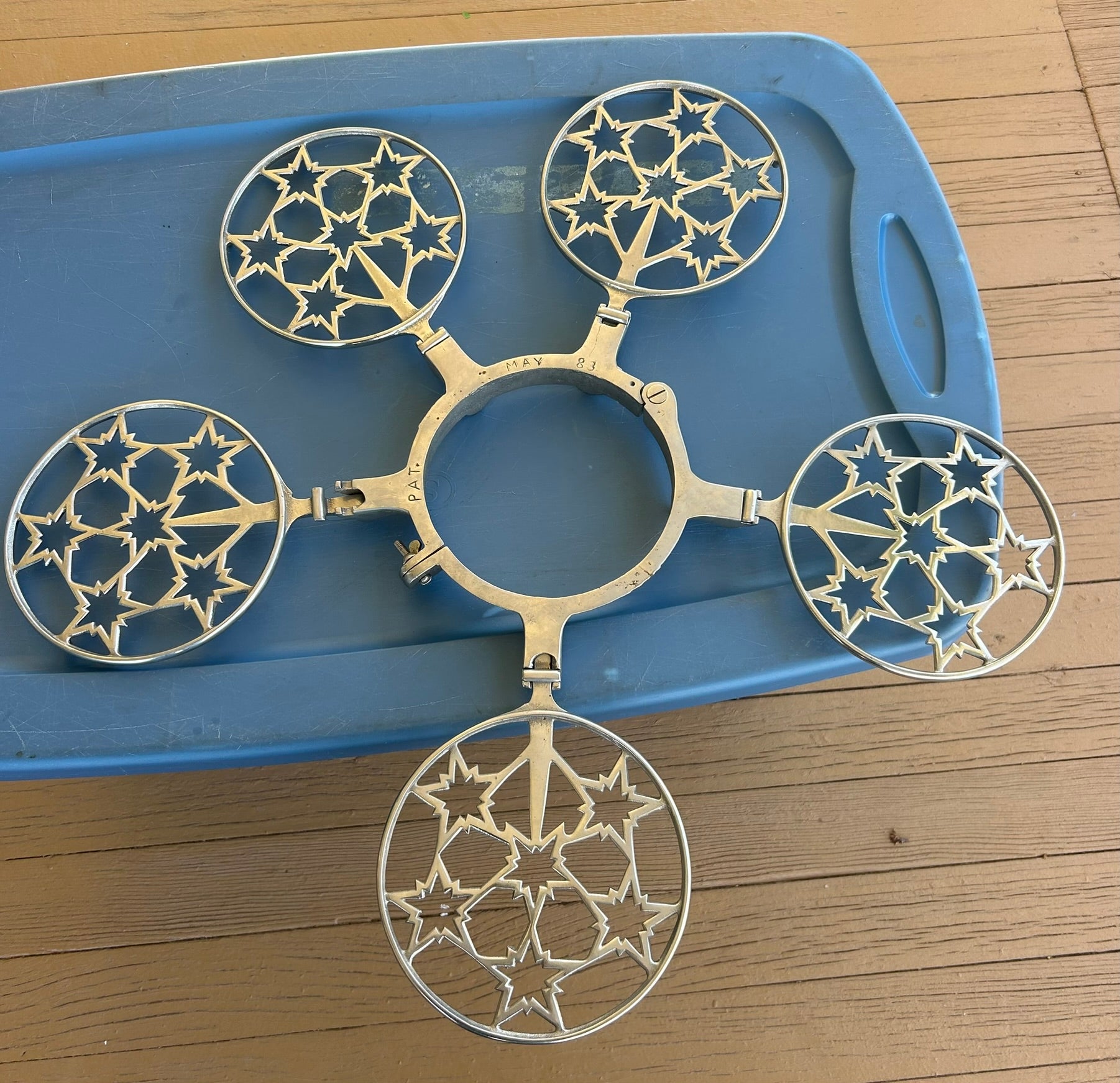 ANTIQUE CAST IRON COOKING STOVE FIVE TRIVET SHELF TO ATTACH TO CHIMNEY PIPE 23" DIAMETER. CALL OR TEXT FOR MORE INFORMATION