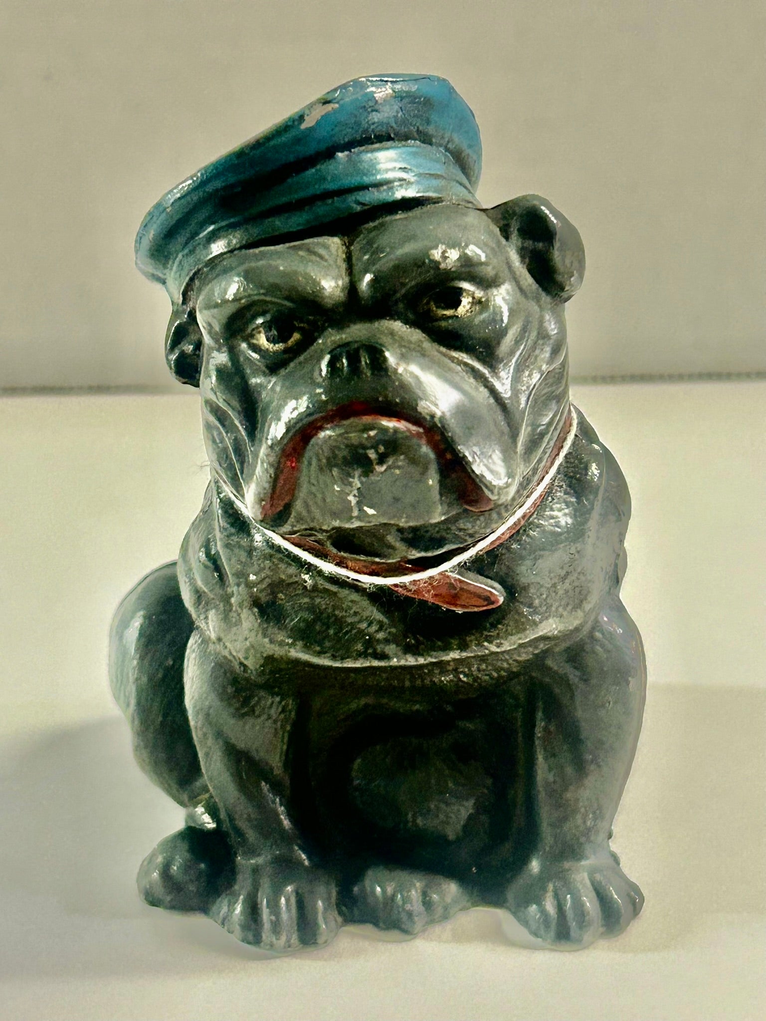 ANTIQUE CAST METAL BULLDOG BANK 4 1/2" TALL. CALL OR TEXT FOR MORE INFORMATION