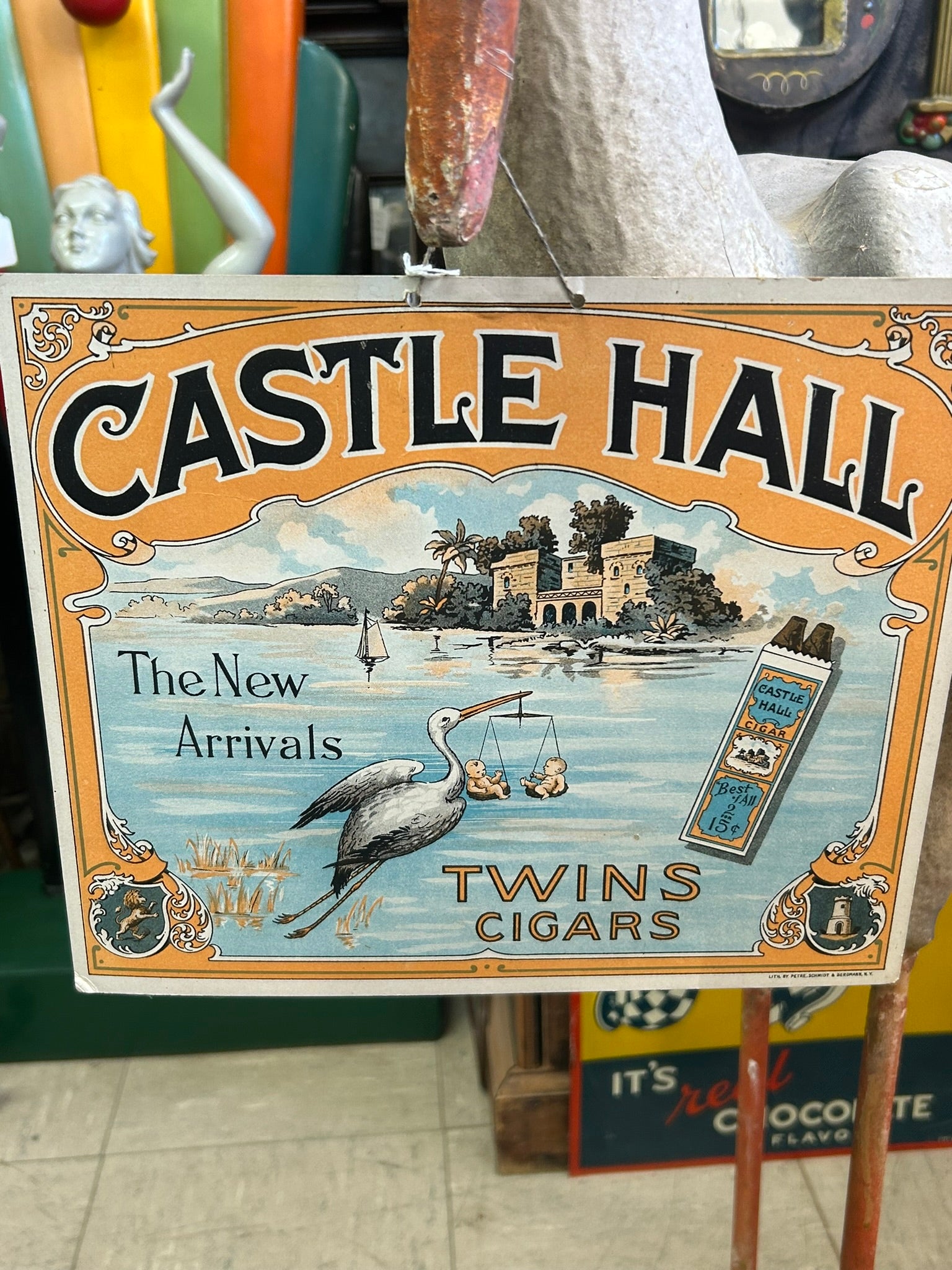 ANTIQUE CASTLE HALL TWINS CIGARS FIGURAL STORK
