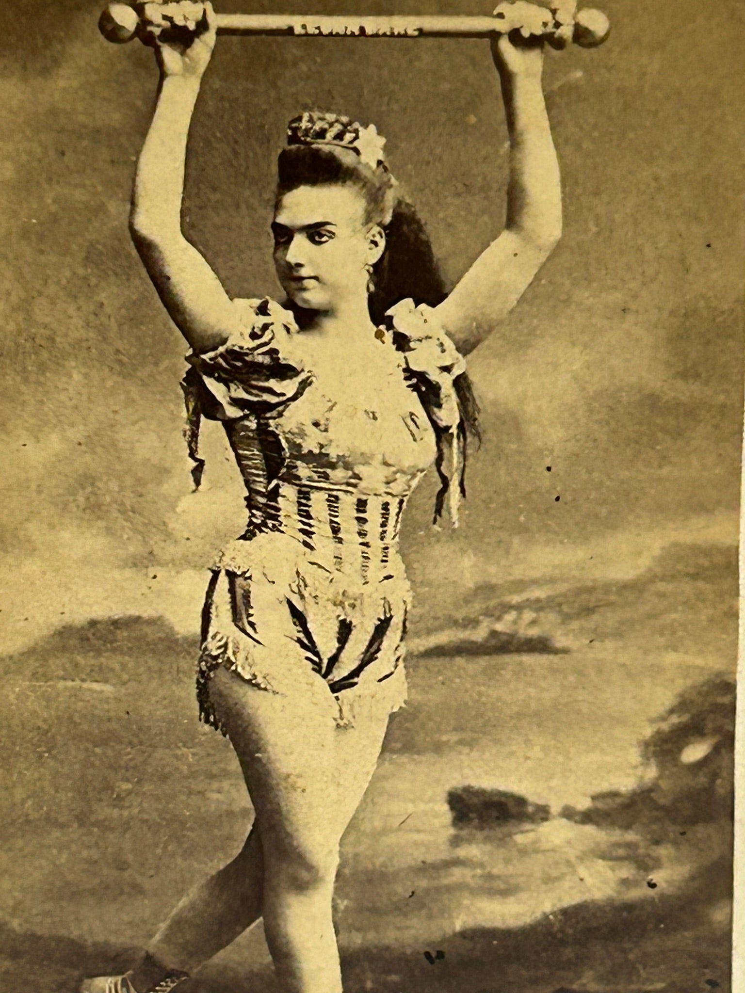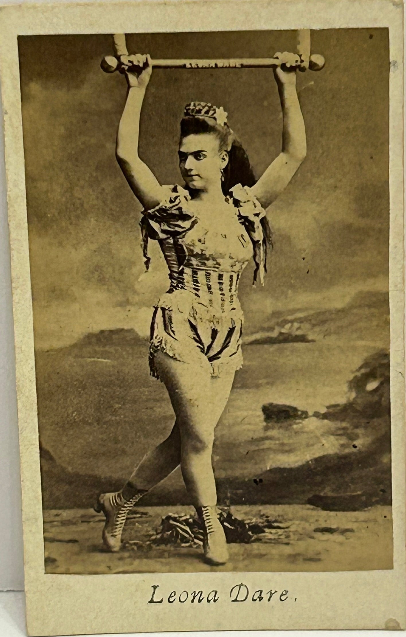 ANTIQUE CDV PHOTOGRAPH OF EARLY TRAPEZE ARTIST LEONA DARE. CALL OR TEXT FOR MORE INFORMATION