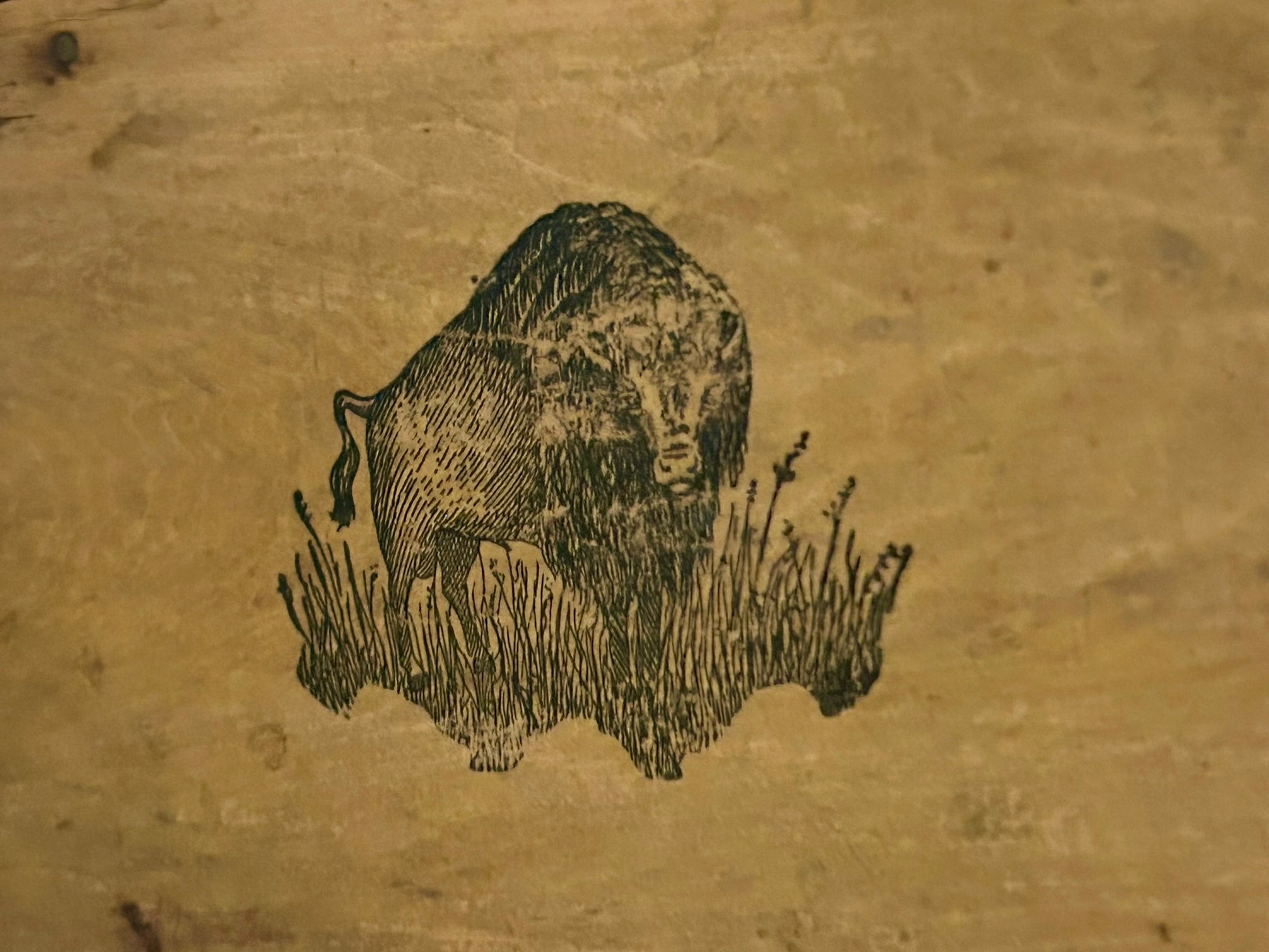 ANTIQUE CHILDS WOOD SLED WITH IMAGE OF BUFFALO