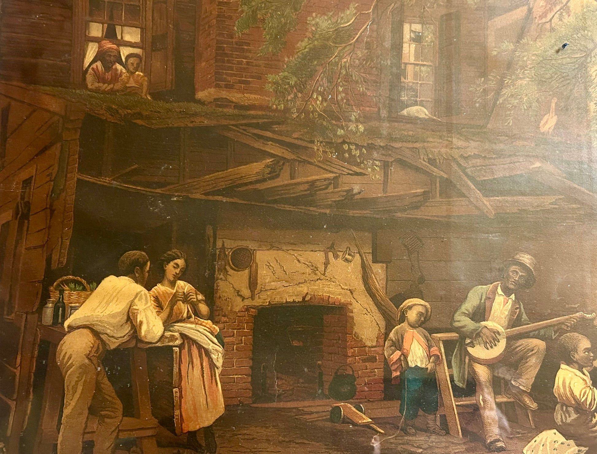 ANTIQUE CHROMO LITHO FROM EASTMAN JOHNSON PAINTING OF BLACK AMERICANS "THE OLD KENTUCKY HOME"