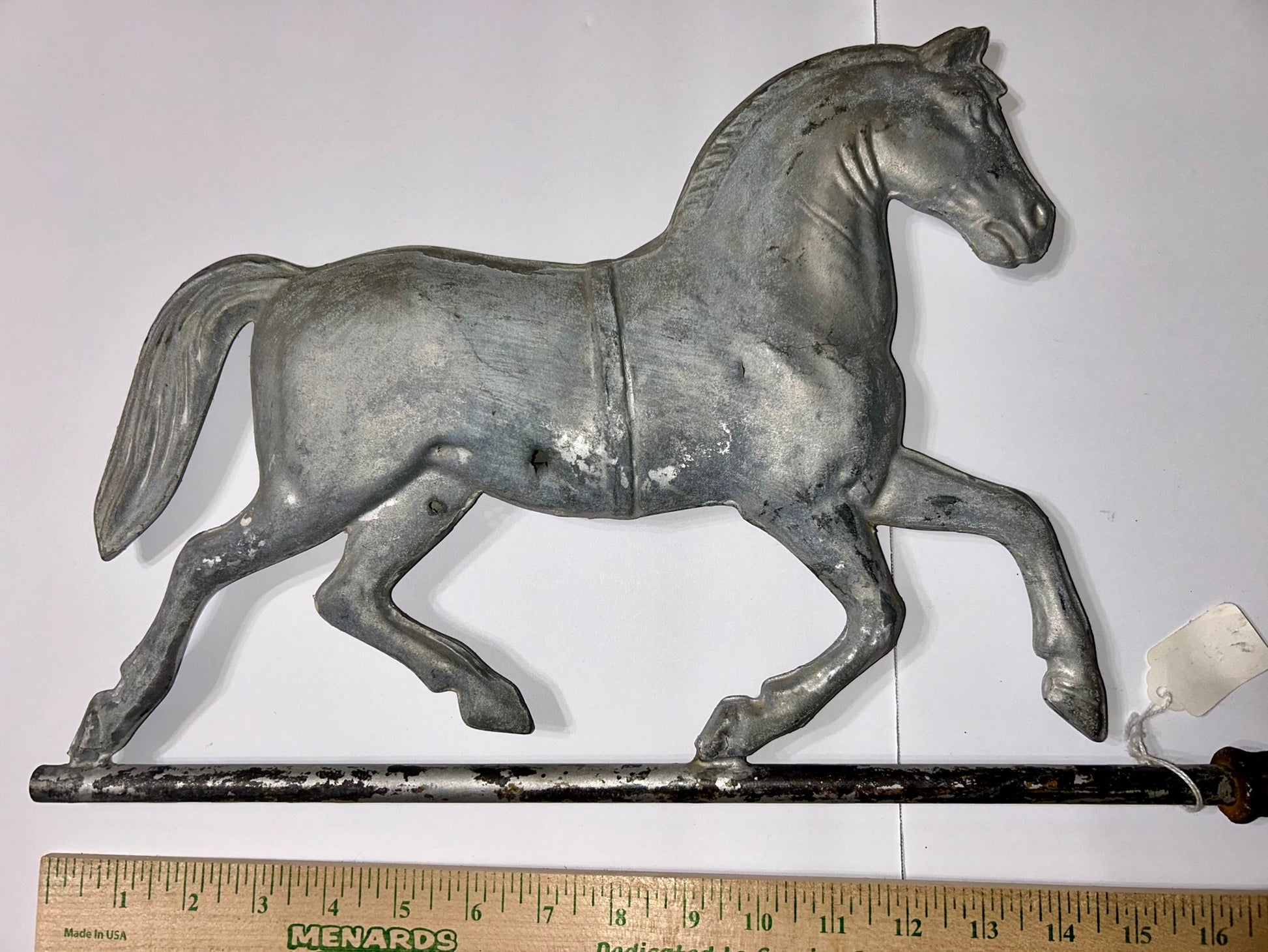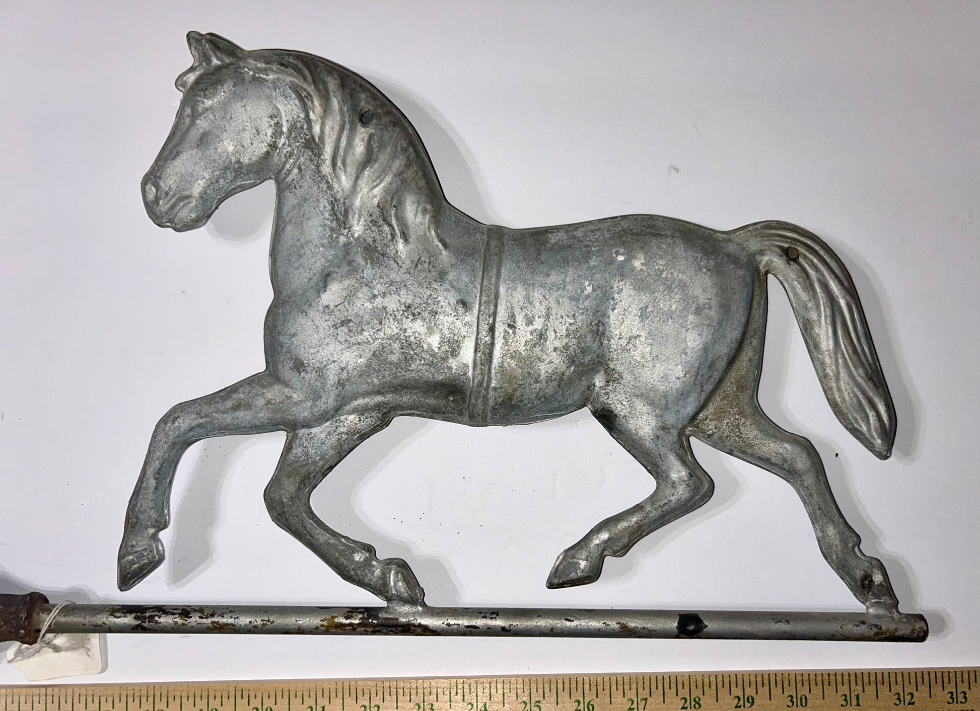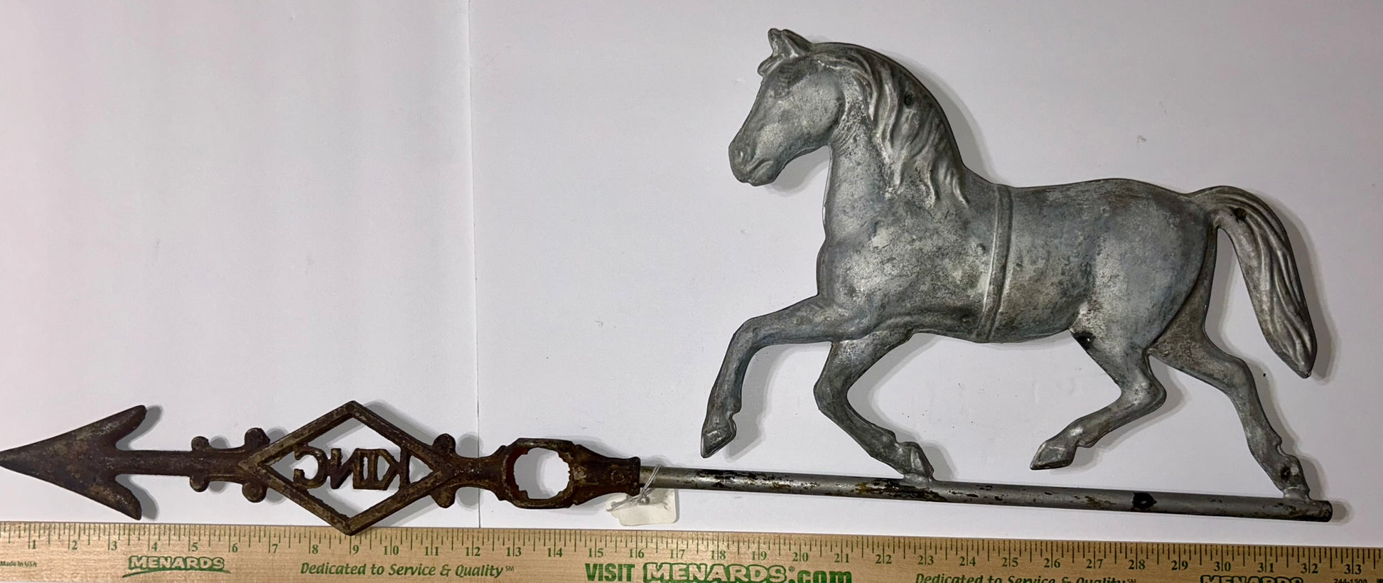 ANTIQUE LARGE CIRCUS HORSE WEATHERVANE ARROW, HOLES ON BOTH SIDES 32" LONG. CALL OR TEXT FOR MORE INFORMATION AND MENTION VANE # 5