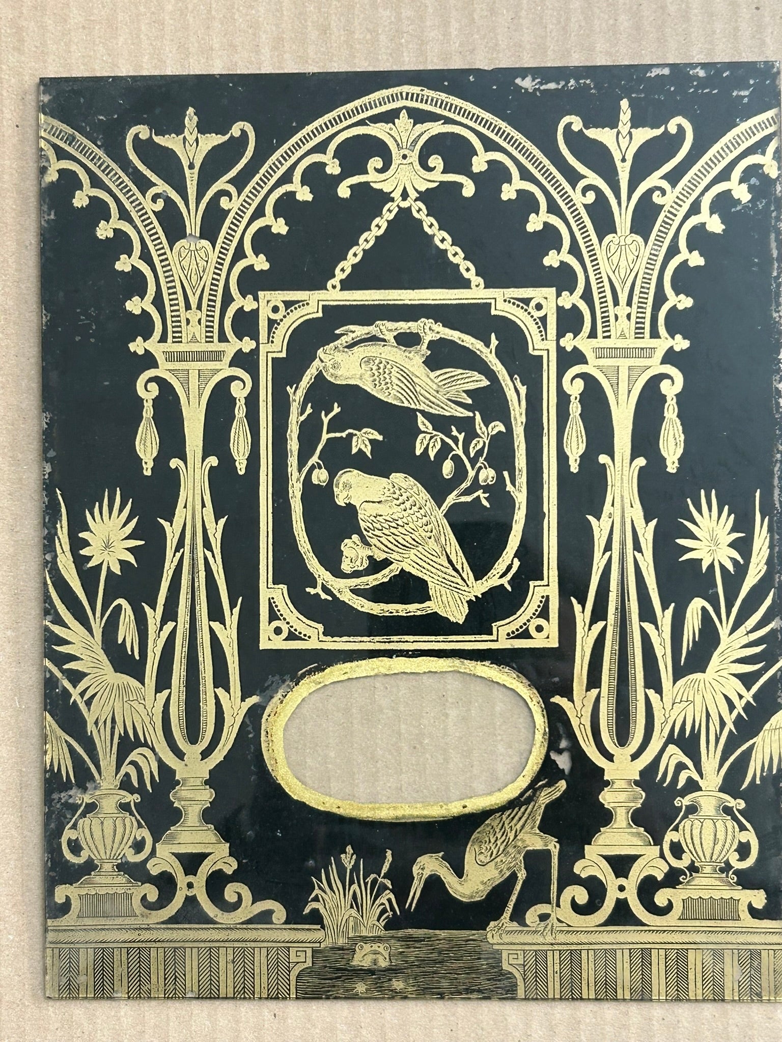 ANTIQUE CLOCK DOOR GLASS WITH BIRDS