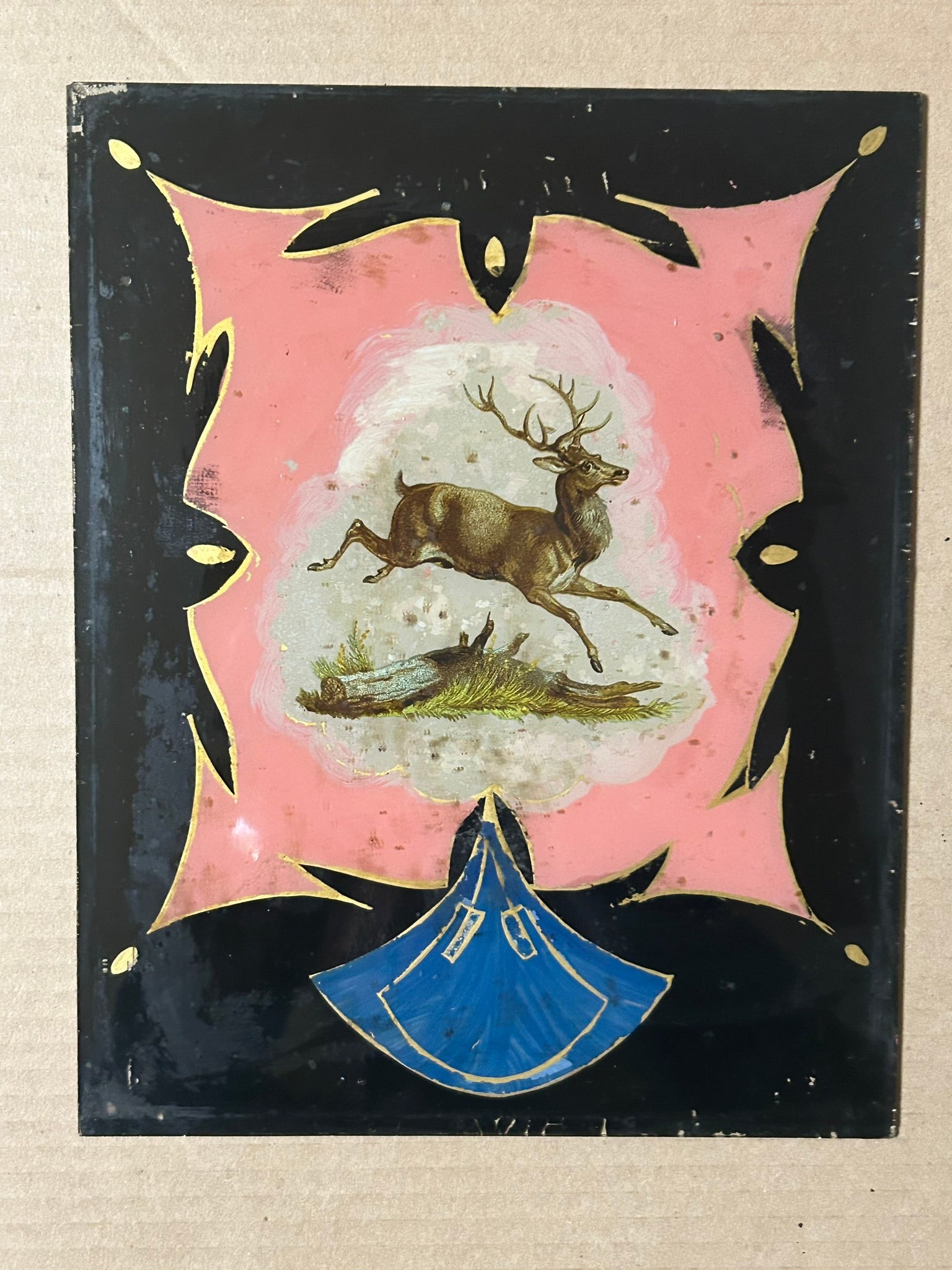 ANTIQUE CLOCK DOOR GLASS WITH DEER SCENE