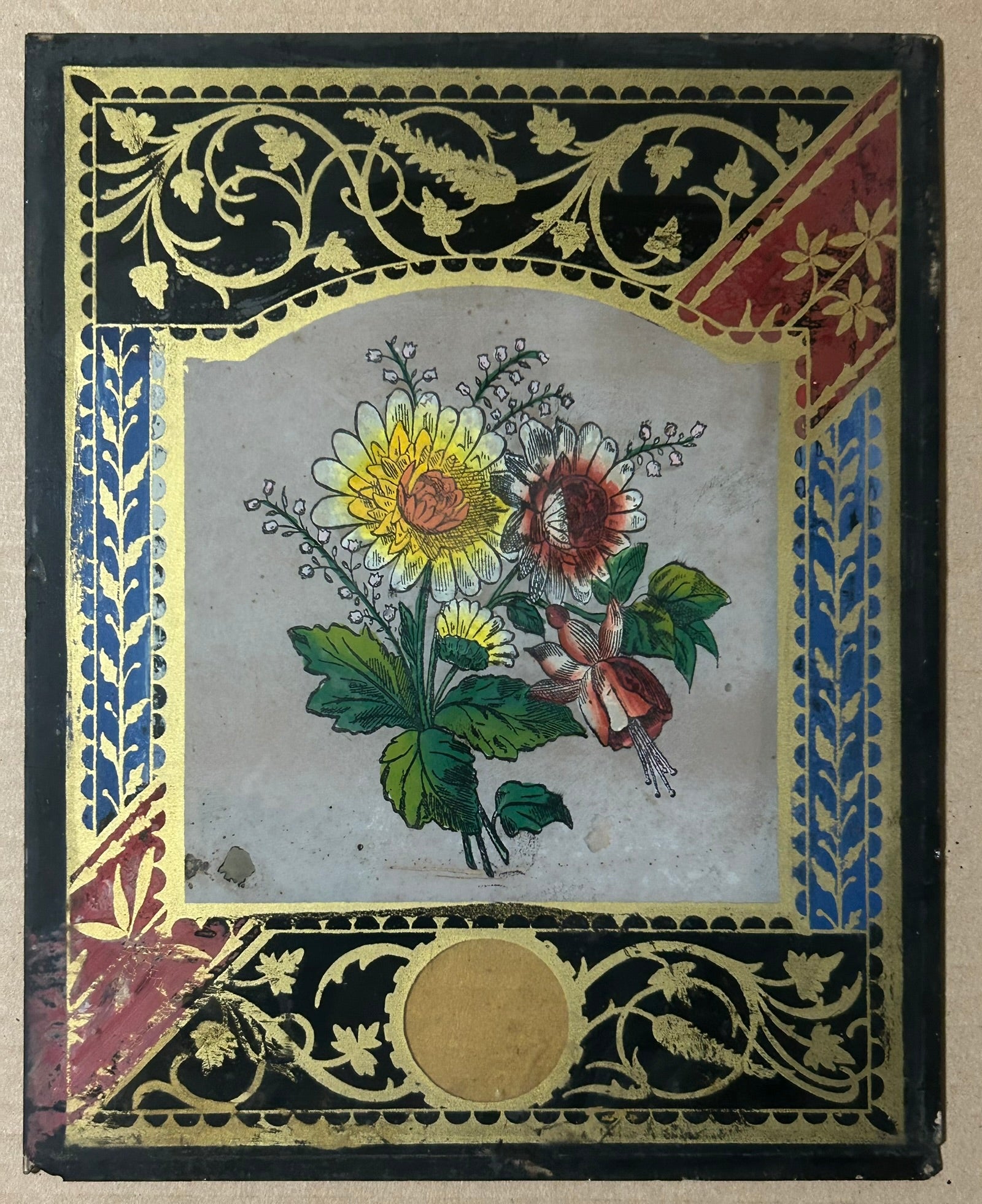 ANTIQUE CLOCK DOOR GLASS WITH FLORAL SCENE
