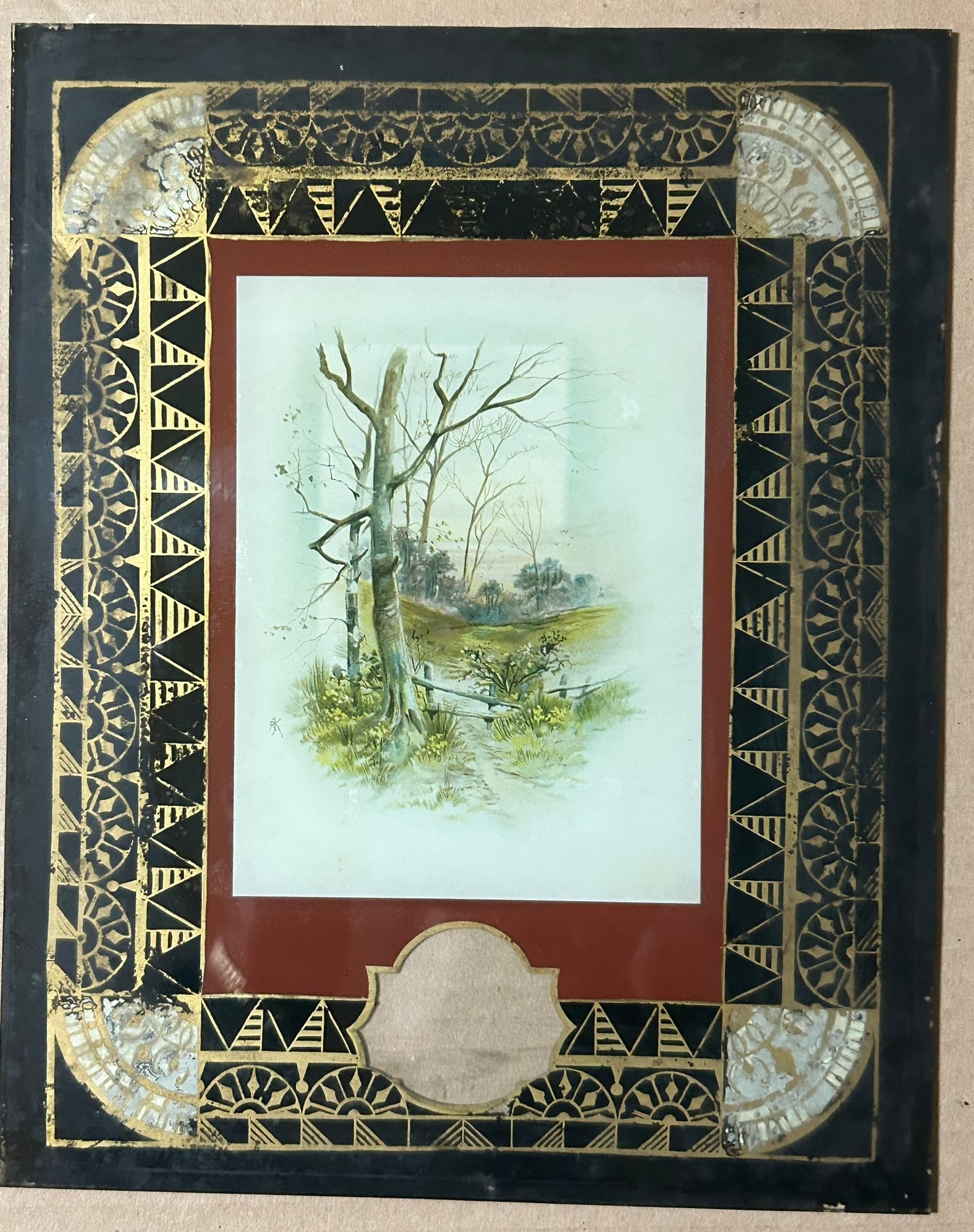 ANTIQUE CLOCK DOOR GLASS WITH TREE SCENIC LANDSCAPE GLASS 10" X 8". CALL OR TEXT FOR MORE INFORMATION